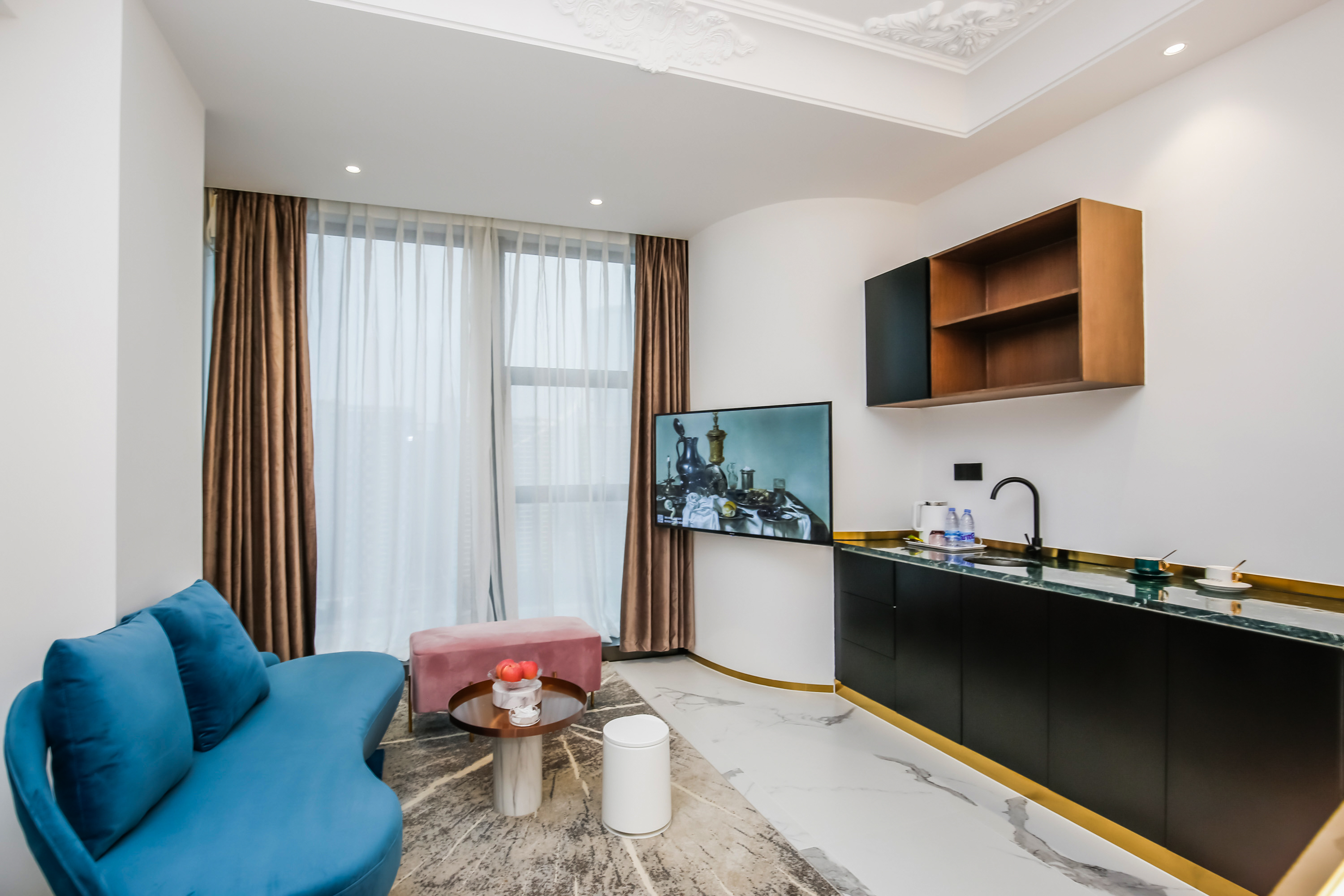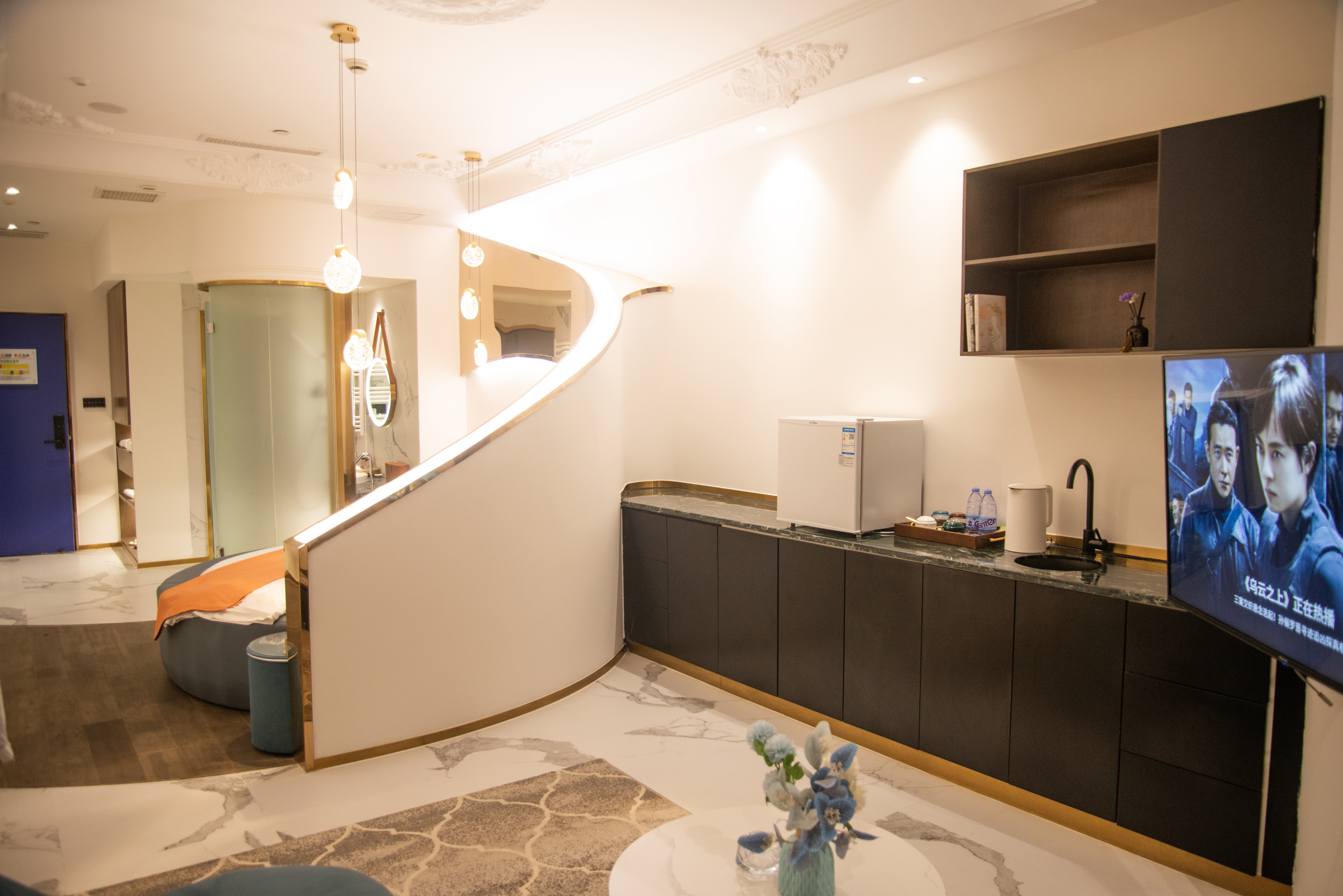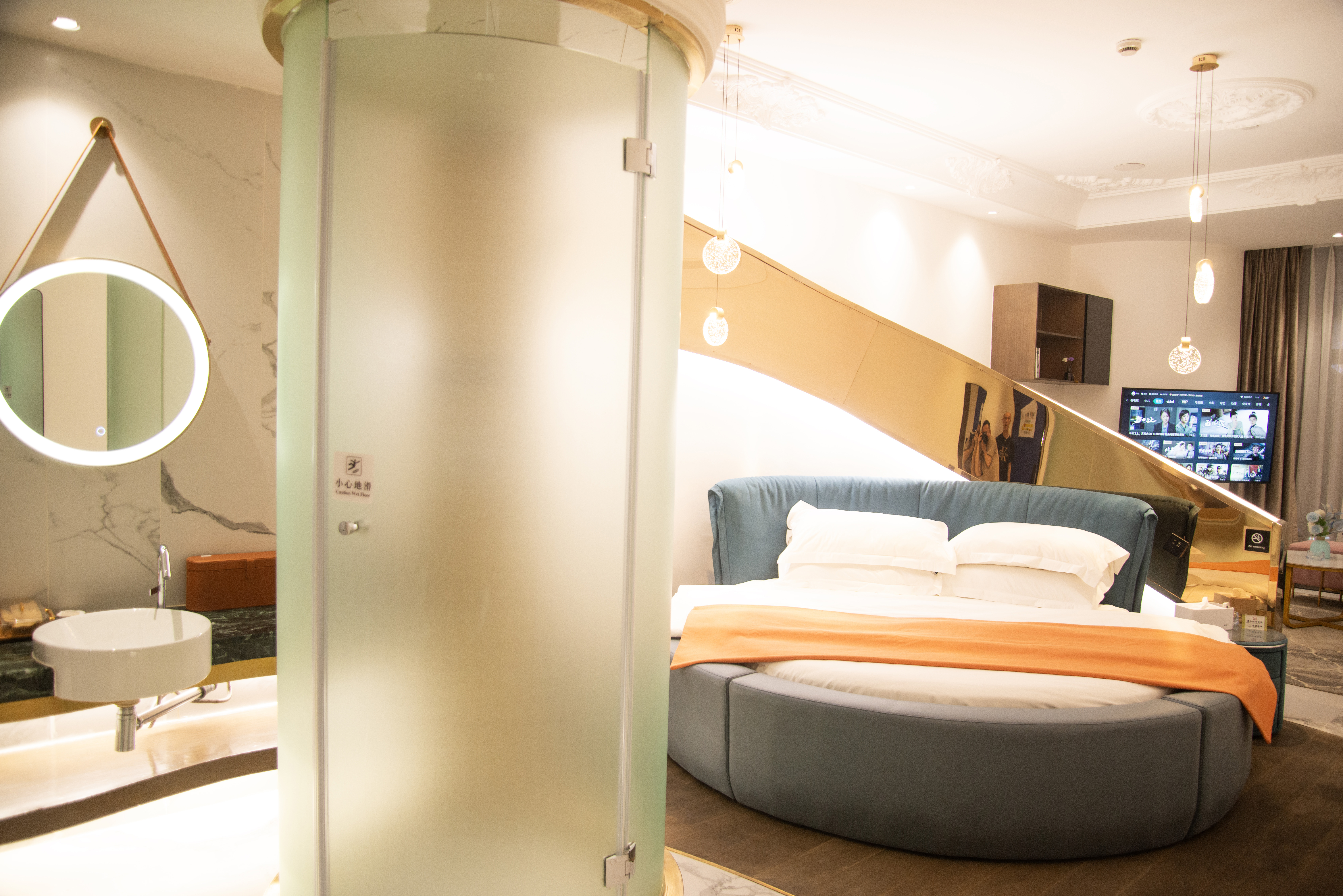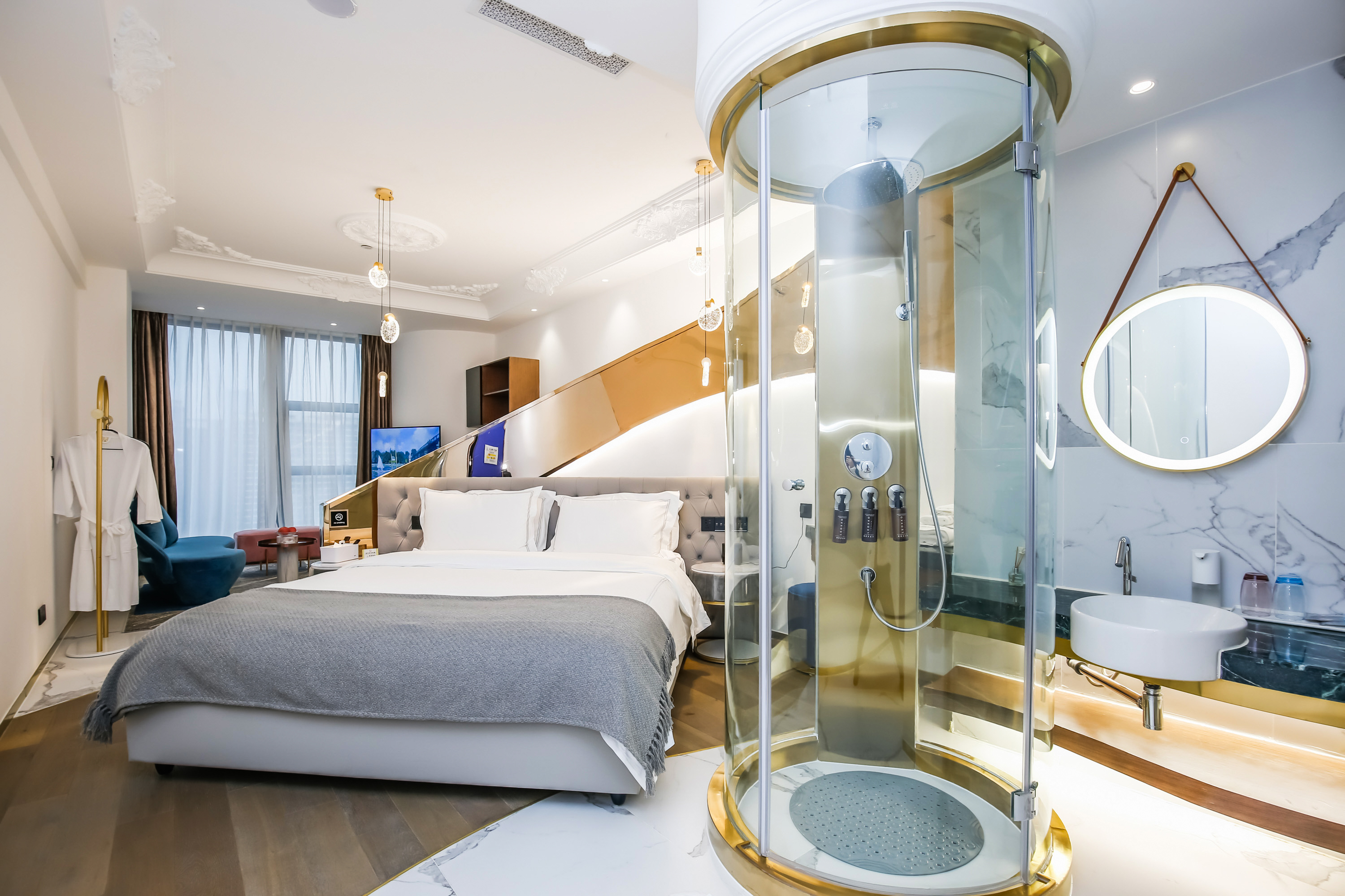 艺术圆床房(落地窗+雅兰床垫+智能马桶+蓝牙音箱)