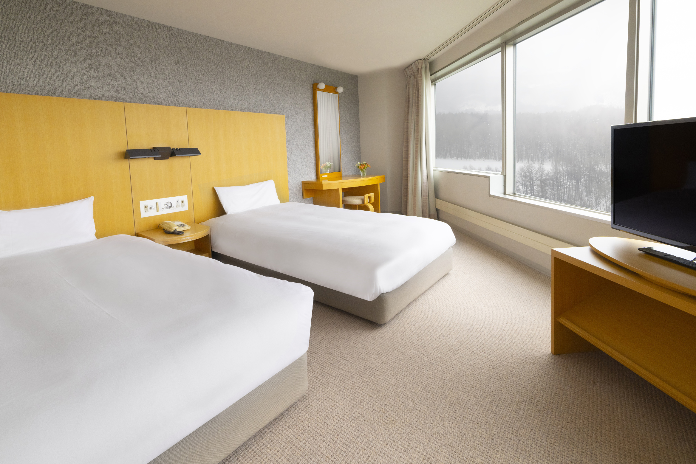 酒店的四周被自然美景围绕, 是整个安比高原度假村视野最佳的酒店, 特别是塔馆的每间客房都可将安比高原的美景尽收眼底。冬天时节, 可以在酒店房间欣赏到全山雪景和众多滑雪道。酒店紧邻雪道缆车站, Ski in-ski out可以方便喜爱滑雪玩雪的客人, 并且设有滑雪用品租赁中心和独立滑雪用品储存柜。酒店内开设近十家不同口味的餐厅, 日料、铁板烧、日本烤肉、中餐、法餐、自助餐等;酒店内设有免税商店, 可以一站式买到岩手县各类特产, 南部铁器, 盛冈冷麪荞麦麪, 地区限定的清酒啤酒, 安比高原地产地销的当日新鲜牛奶和酸奶、冰淇淋等纪念品、伴手礼和特产食品。酒店内并设有自动提款机 (方便中国客人用银联卡直接提取日币) , 酒店餐厅商店也可以使用付款宝进行付款。酒店房间房型丰富, 标准间、家庭间、中型套房可以满足家人、朋友、情侣的旅游出行的住宿需求。除了房间内可欣赏到度假村的绝美的自然景色之外在这里还可享受温泉、游泳、健身房等休闲活动, 一年四季无论任何季节来到这里, 都能让你感受不同乐趣的度假酒店。