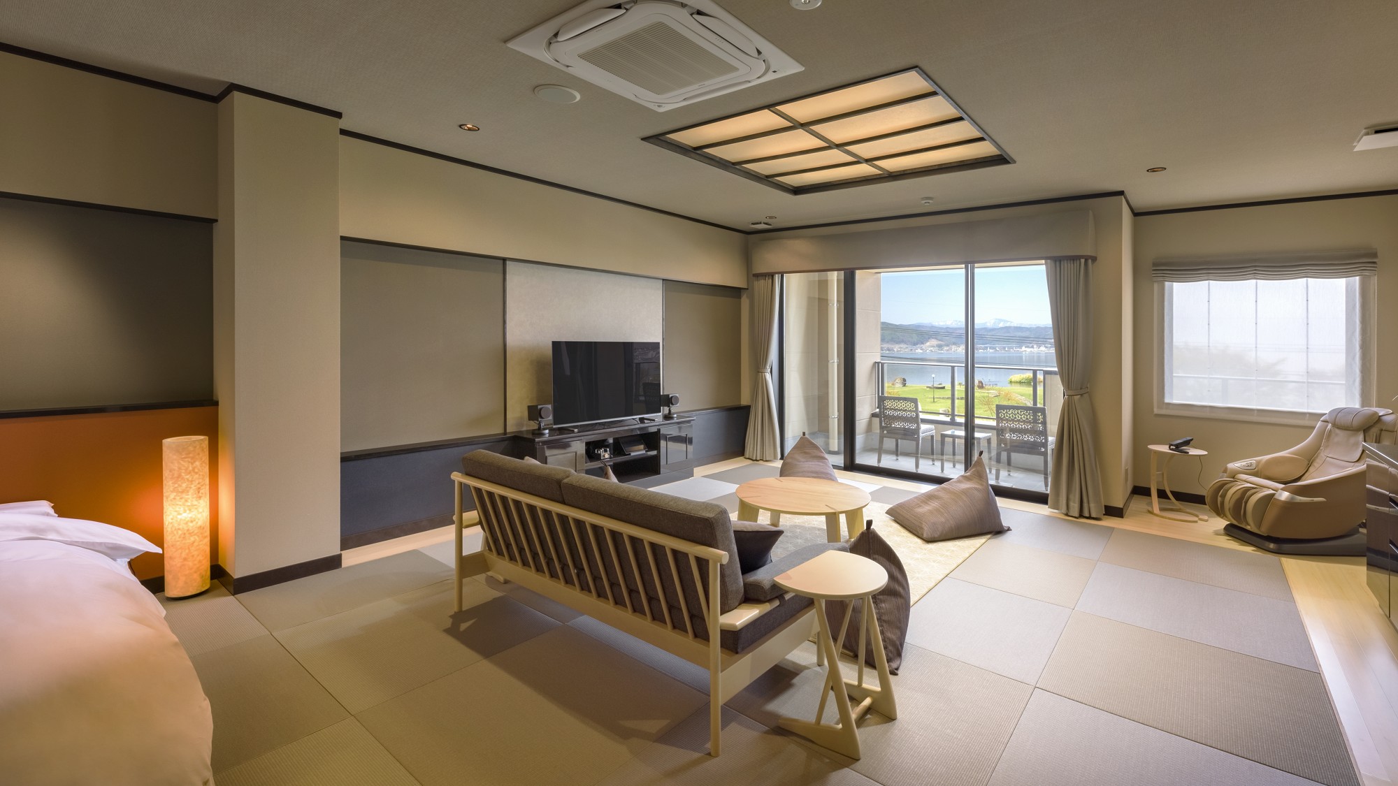 Suite Quad Room, Lake View, Nightlife View, Non-Smoking (206[Rinzu-Silk Satin]Western-Style Room With Open-Air Bath / 100 Square Meters)