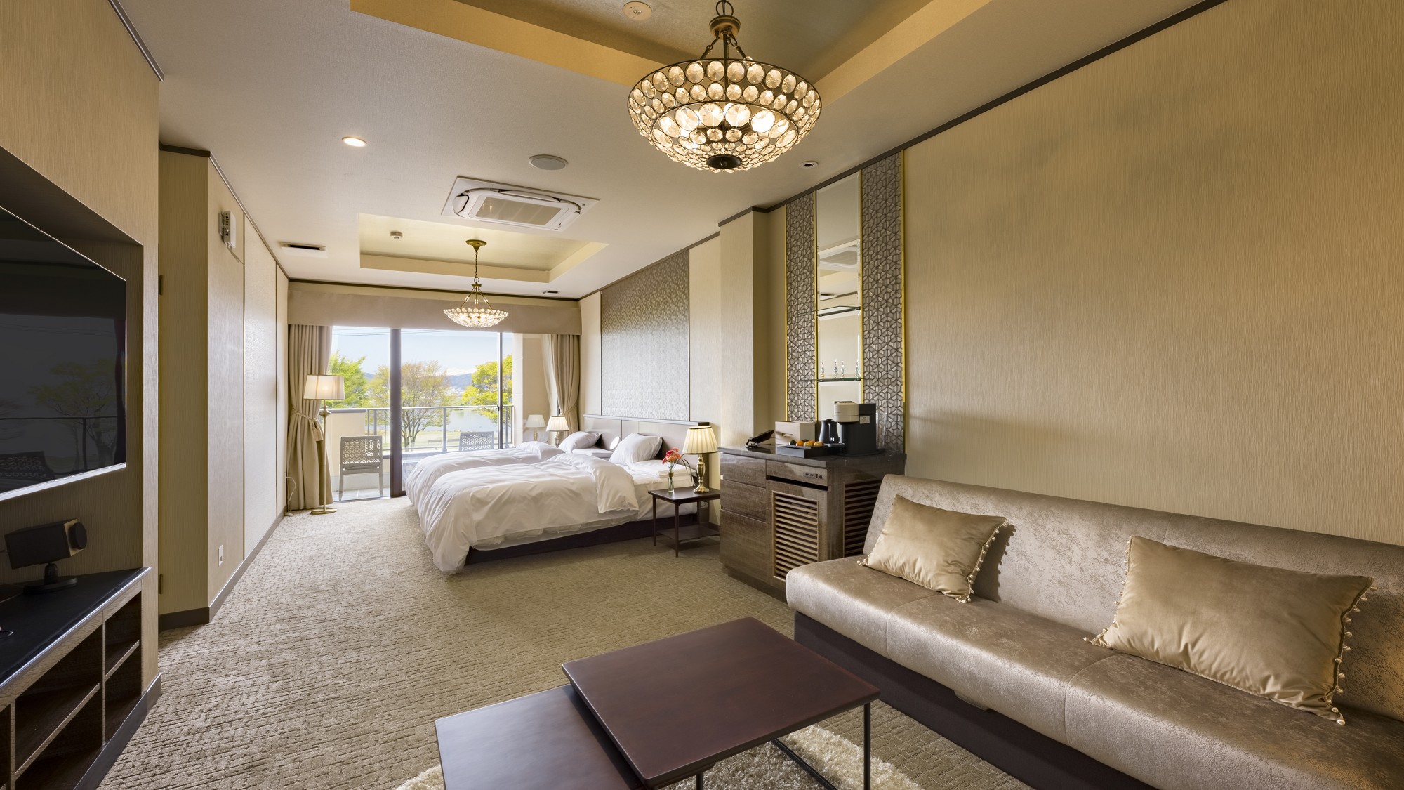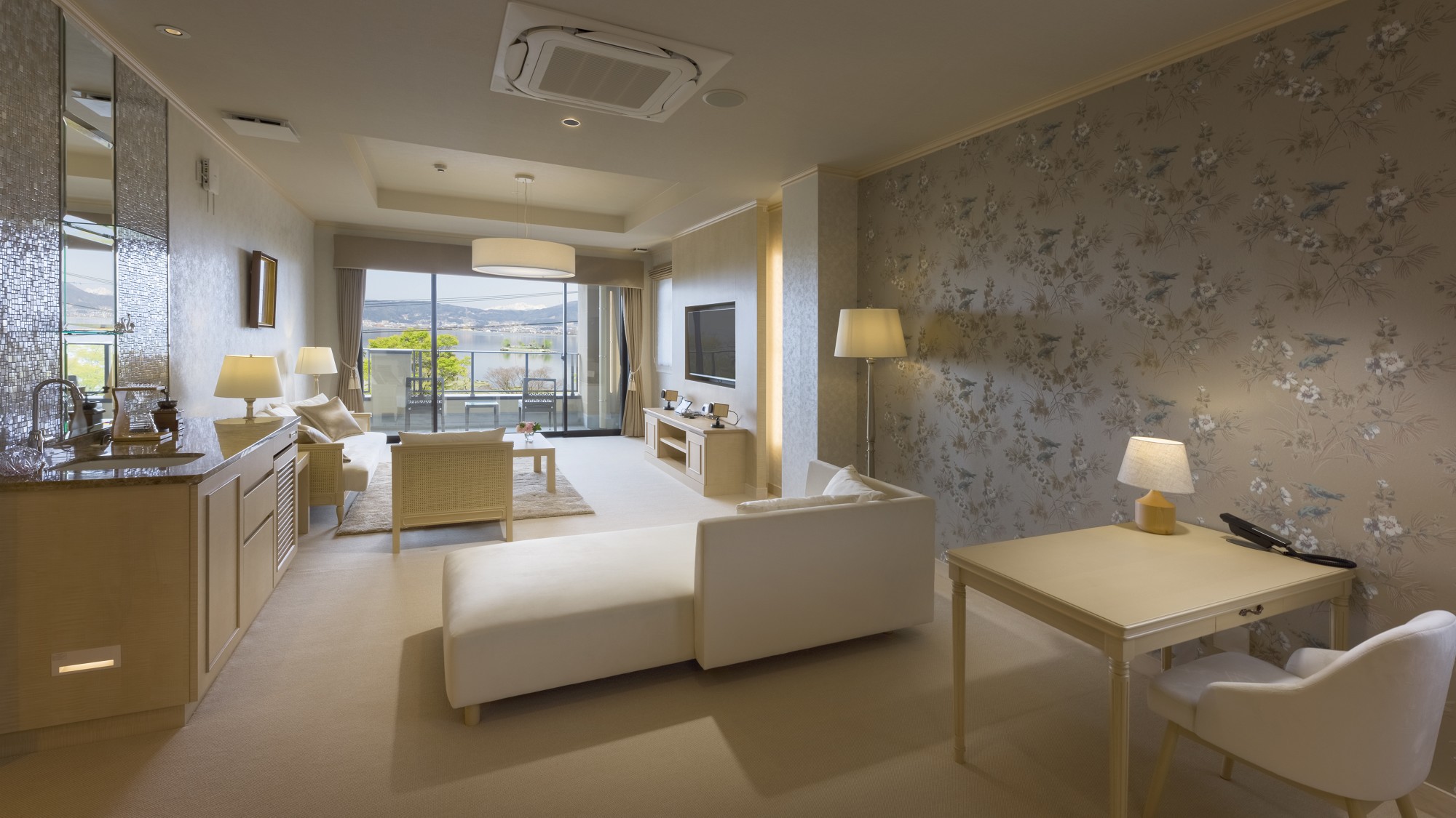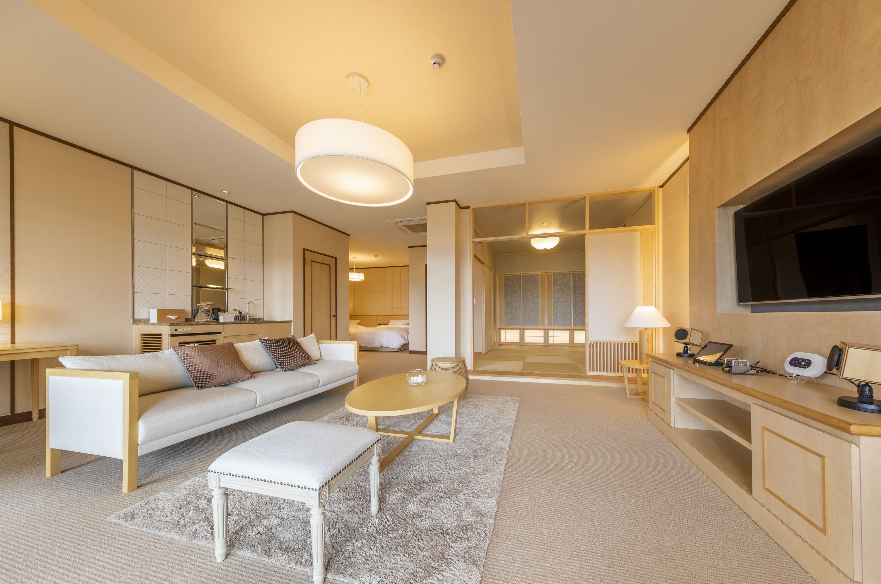 Suite Triple Room, Lake View, Nightlife View, Non-Smoking (202[Shusu-Satin]Western-Style Room With Open-Air Bath / 68 Square Meters)