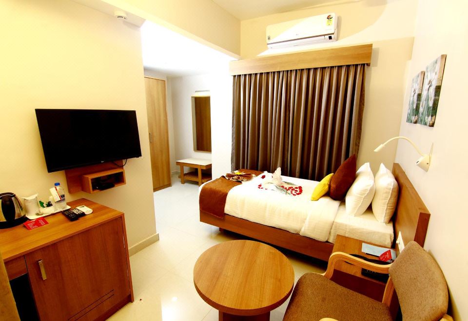 Hotel Panacea Ventures provides flawless service and all the necessary facilities for visitors. Stay connected with your associates, as complimentary Wi-Fi is available during your entire visit.To facilitate your arrival and departure, you can pre-book airport transfer services prior to checking in. The hotel offers taxi and shuttle amenities for your ease in navigating around Punalur. When arriving by car, you'll be grateful for the on-site complimentary parking at hotel.The hotel offers reception amenities including concierge service and luggage storage to ensure a comfortable stay for guests.Whether you're here for an extended stay or simply require fresh garments, the hotel ensures your cherished travel attire remains spotless and accessible with the convenience of laundry service located on the premises. Your stay will be comfortable with the presence of 24-hour room service, room service and daily housekeeping as an in-room amenity for your relaxation and enjoyment.Smoking is permitted solely in the specified smoking zones allocated by hotel. In order to ensure the utmost level of relaxation, the guestrooms feature an inviting design and are equipped with all basic necessities, creating a delightful stay experience.To ensure a pleasant stay, a selection of rooms at hotel come furnished with linen service and air conditioning, all designed with your ease in mind. In select rooms, visitors can enjoy a touch of amusement with the availability of daily newspaper and television for their entertainment needs.Within specific rooms, bottled water and mini bar is conveniently available for your use. Understanding the significance of bathroom facilities in enhancing visitor contentment, hotel offers toiletries and bathrobes within a few chosen chambers. Each day, arise to a delightful complimentary morning meal at Hotel Panacea Ventures. Various excellent meal offerings at hotel ensure that enticing and easily accessible options are constantly available. Upon your arrival, don't miss experiencing bar for enjoyable in-house evening entertainment. Visitors wishing to create their personal culinary delights will appreciate the on-site shared kitchen provided at this establishment.