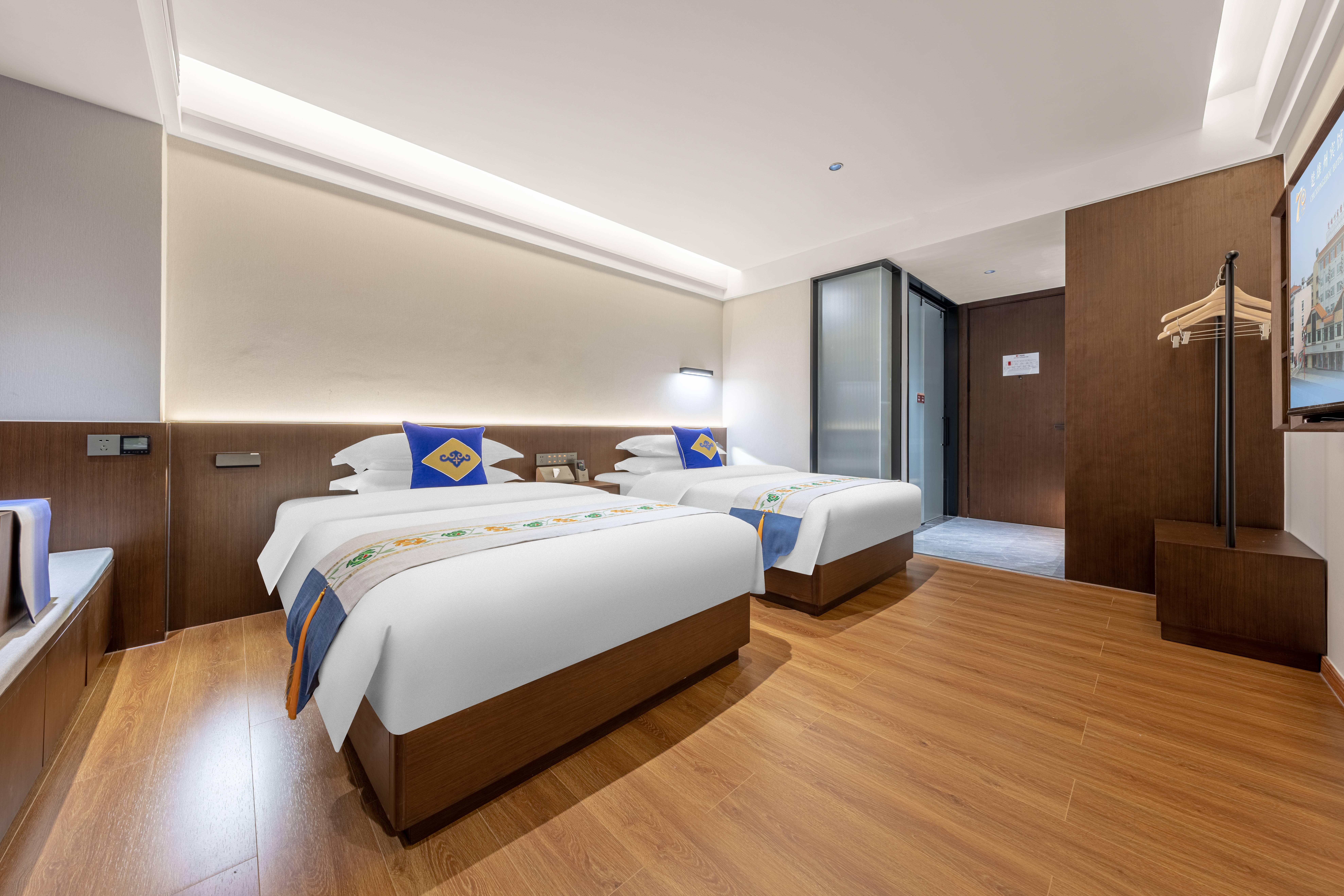 小度AI丨静逸双床房(双层隔音玻璃+智能马桶+中式茶台
