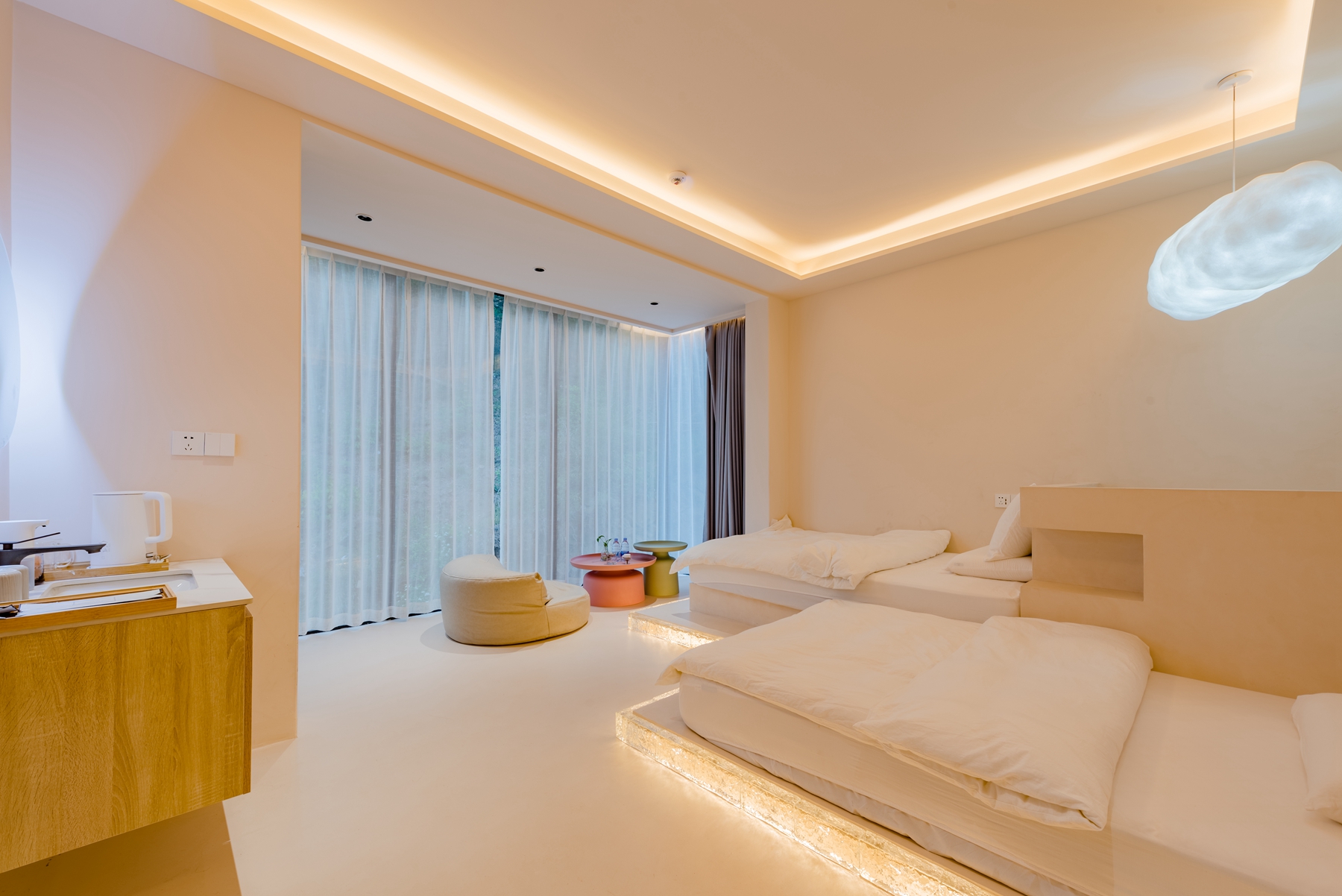 林景标准间·双床榻榻米·沙发·微水泥风·环山大视野·投影仪·智能家俱