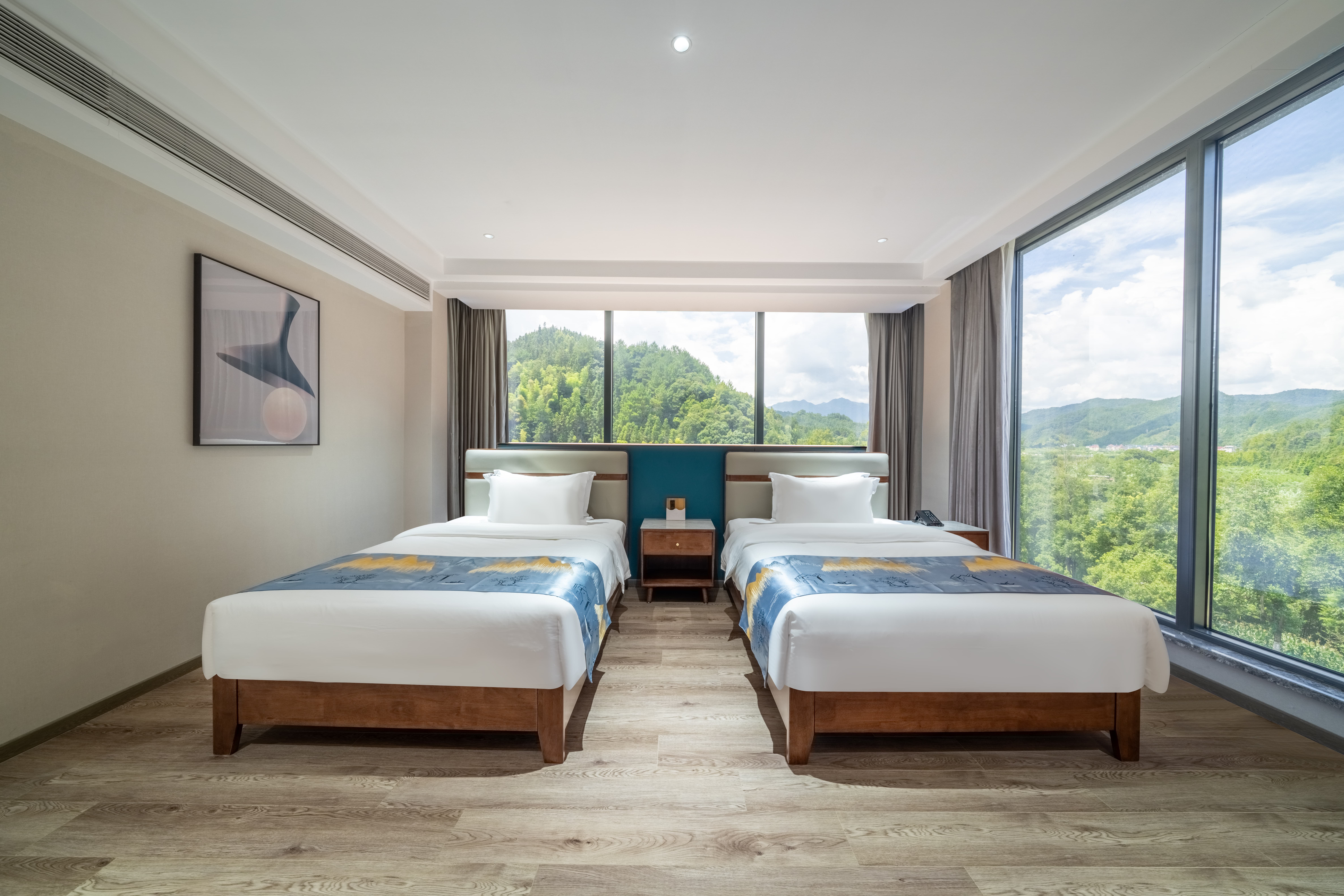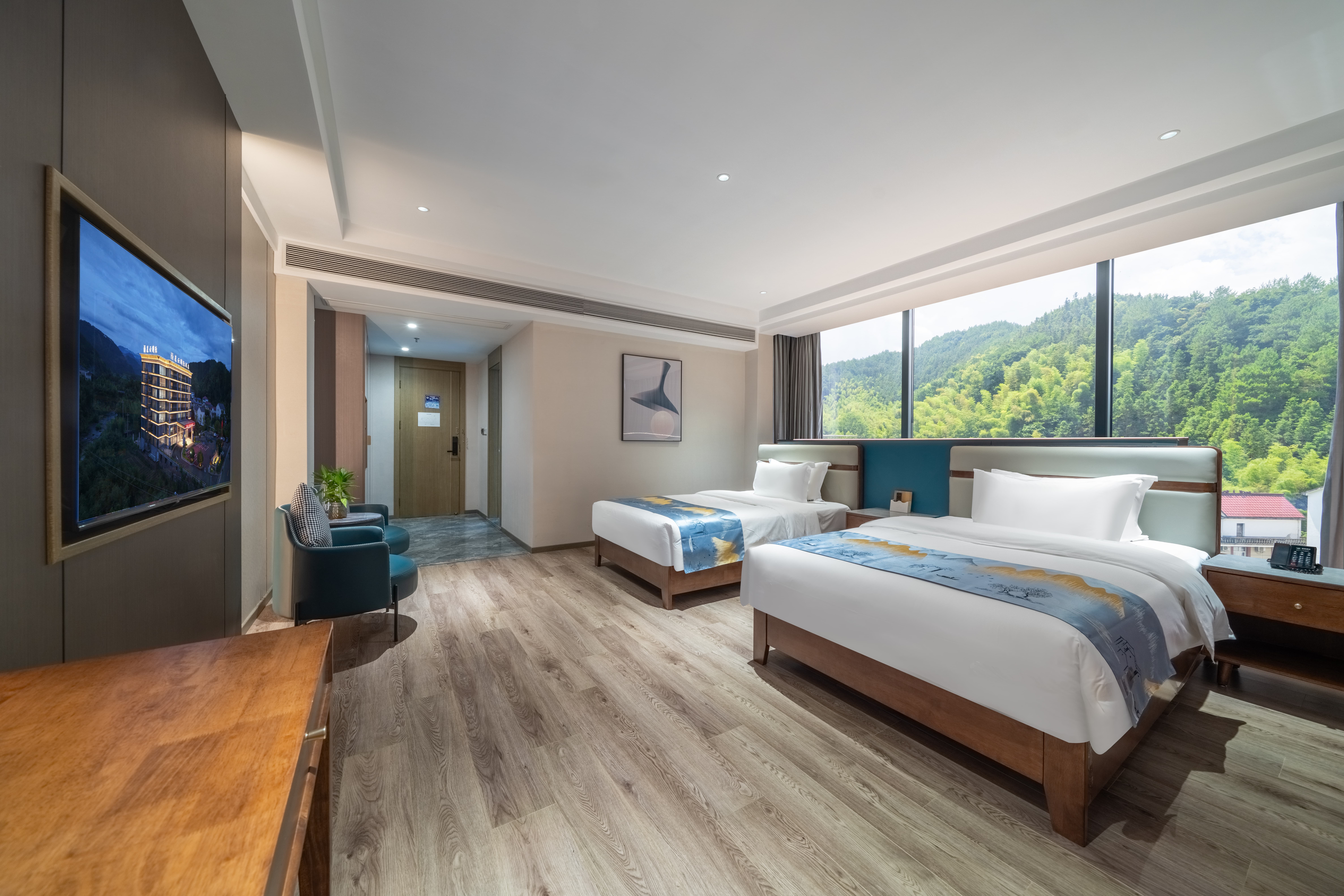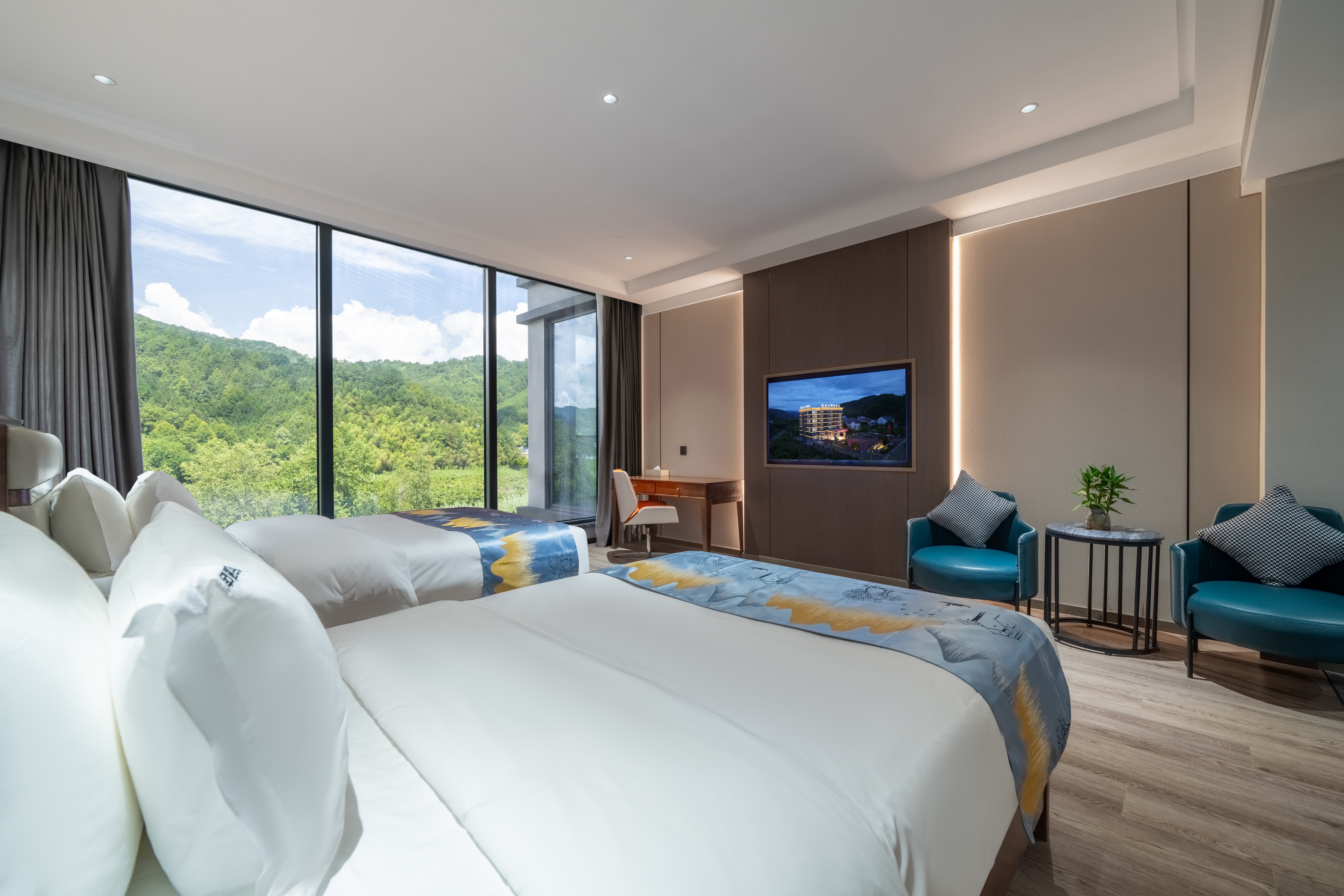豪华双床房(180°无遮挡山景·落地窗·双人椅)