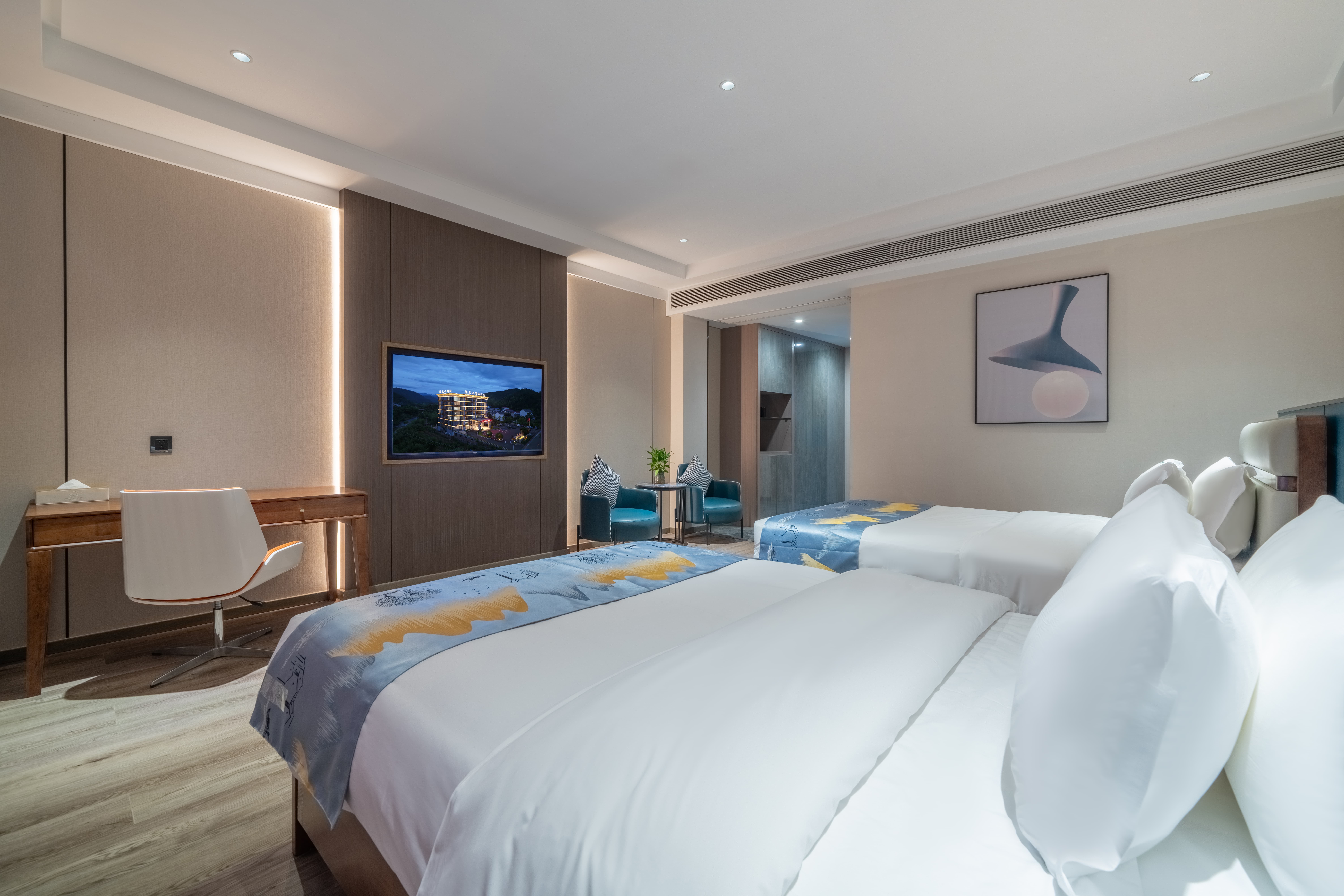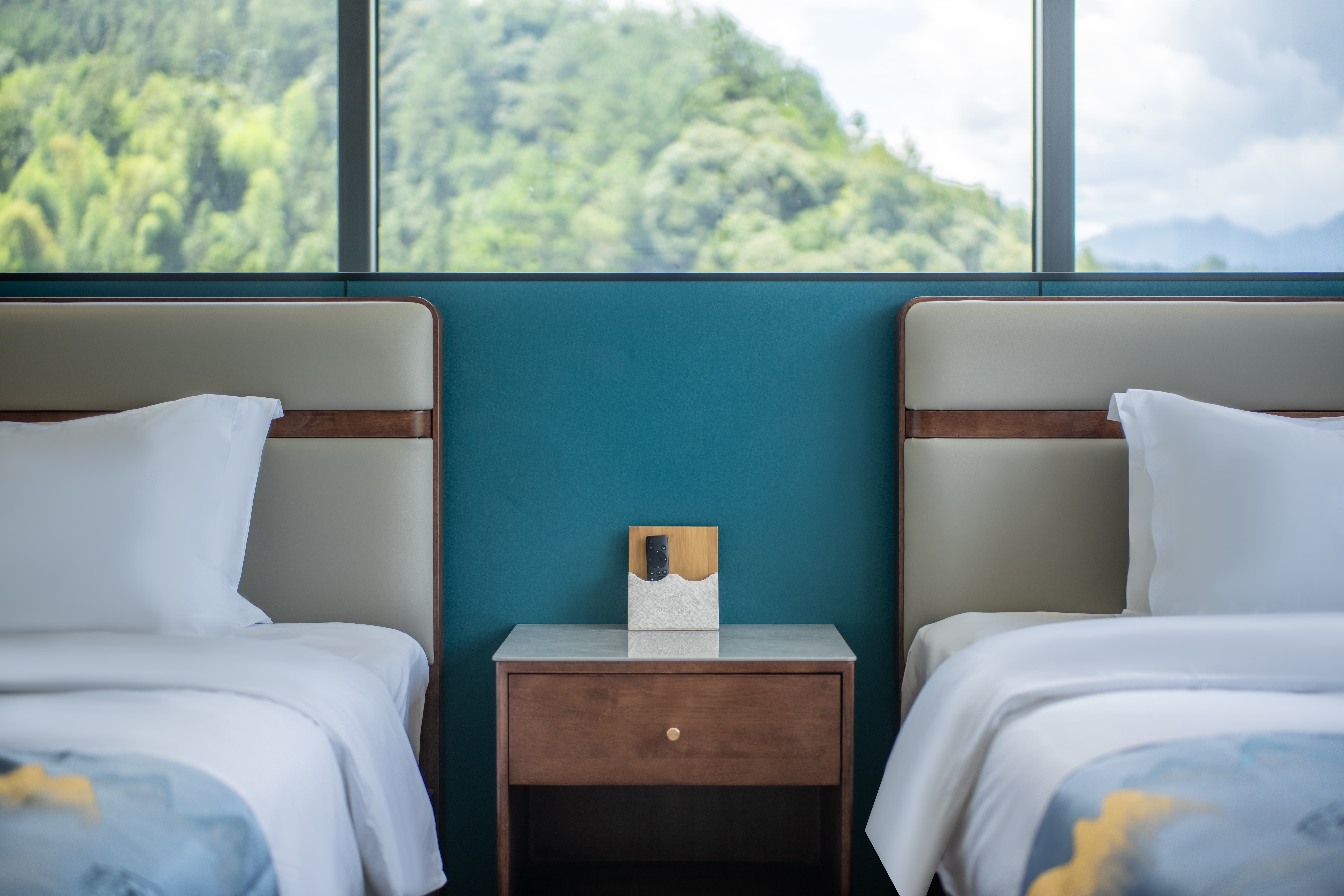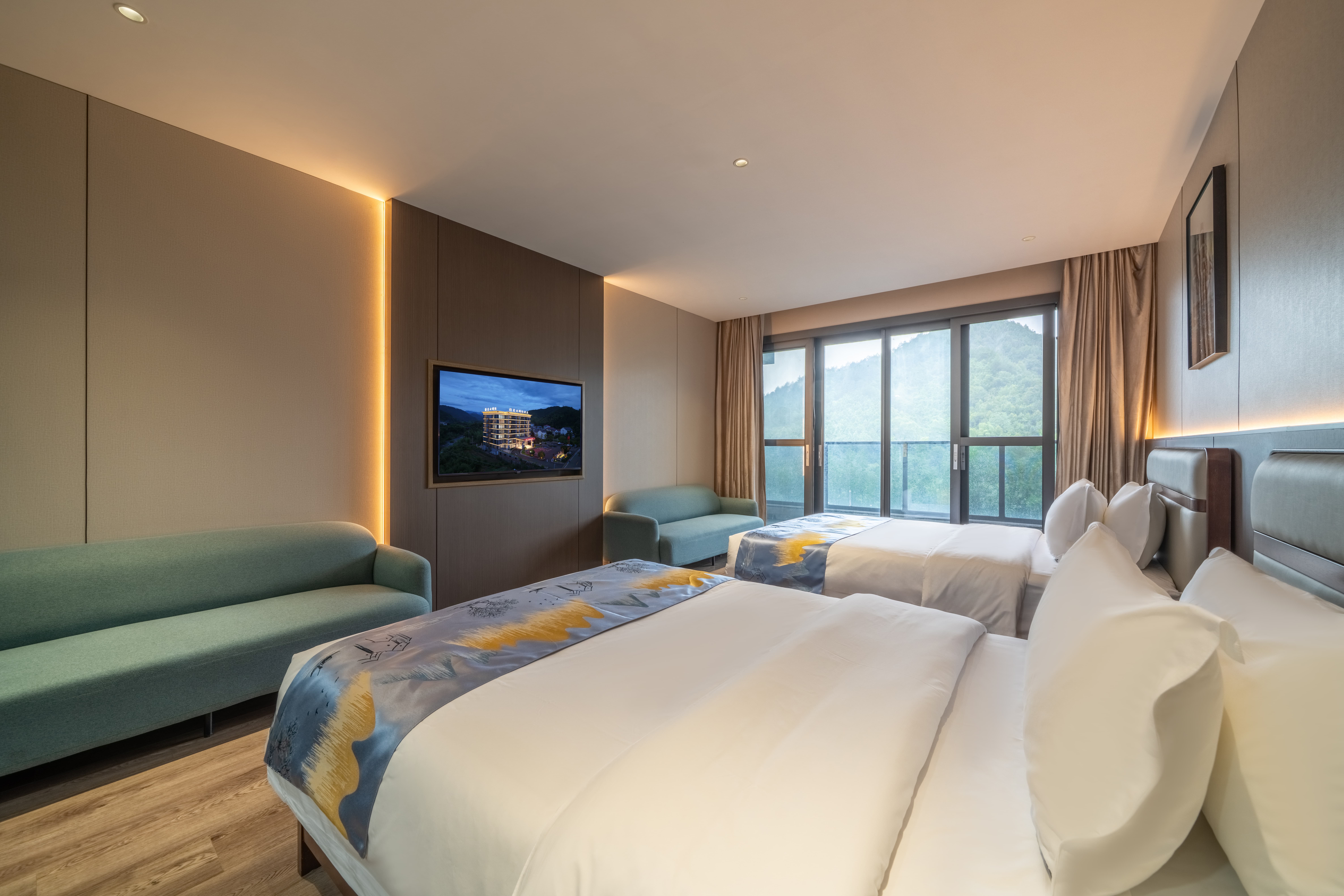 豪华双床房(180°无遮挡山景·落地窗·双人椅)