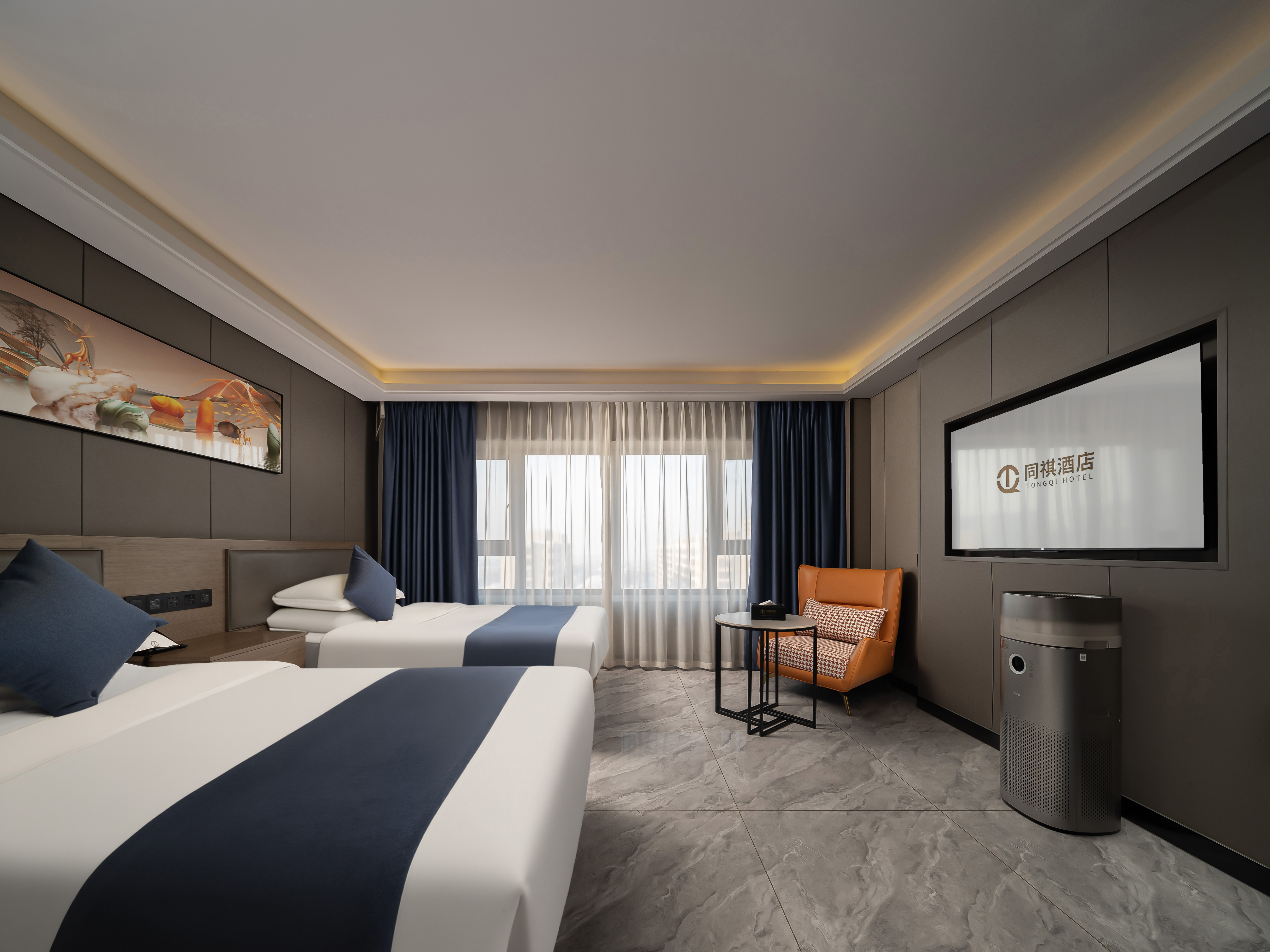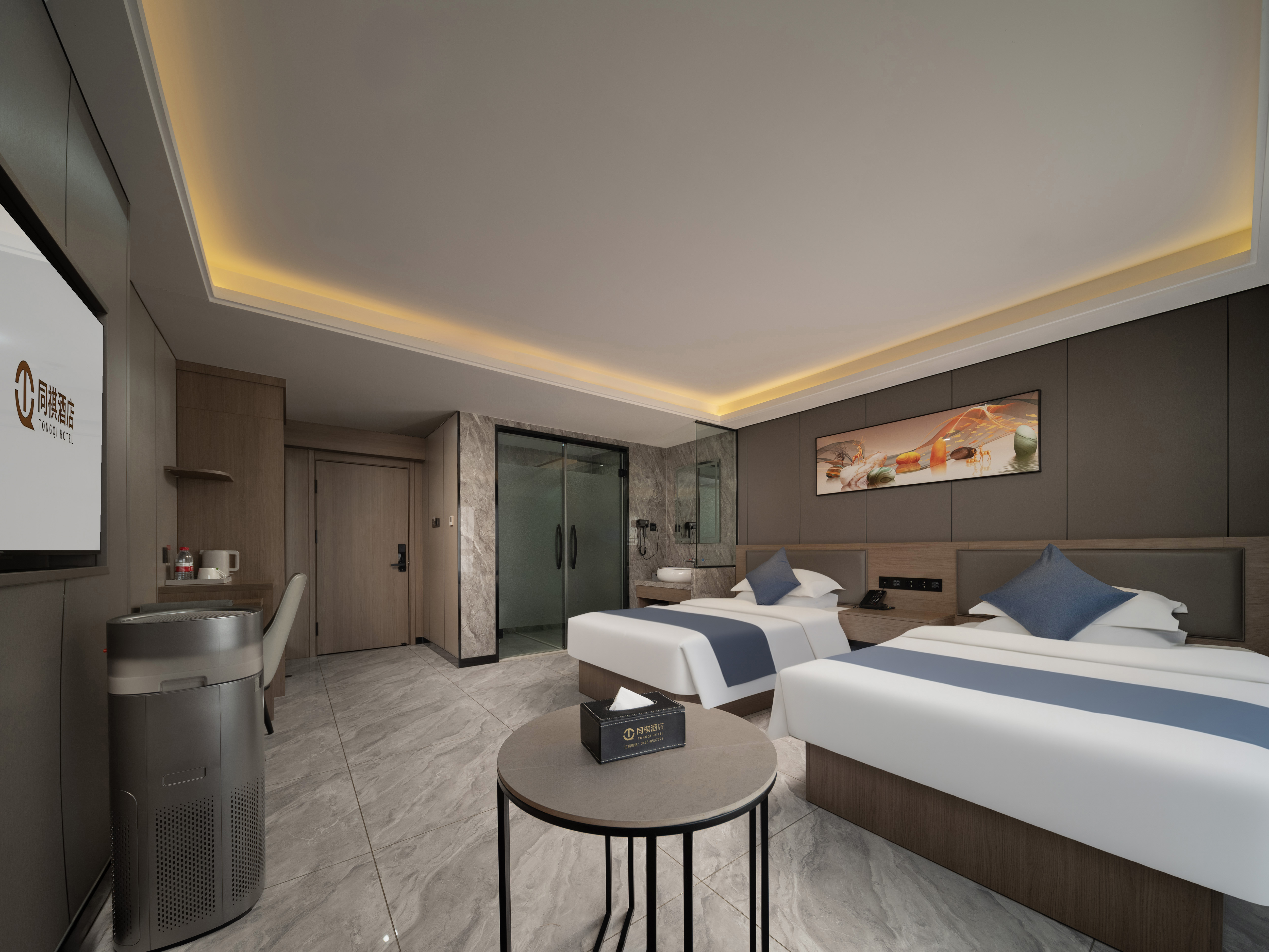 祺享·高级双床房「办公桌椅+空气净化器」