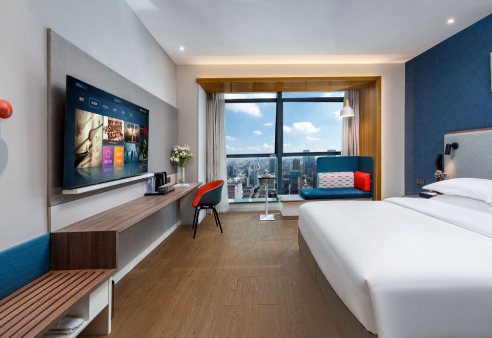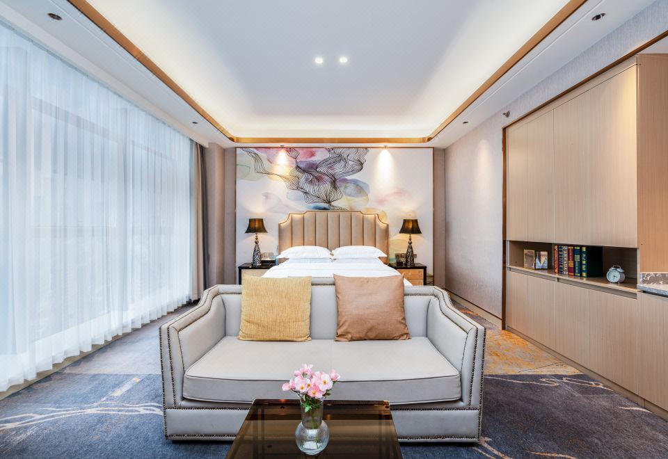 高空景观浪漫大床房(阿克苏羊毛地毯+金可儿床垫+东芝冰吧+洗衣机)