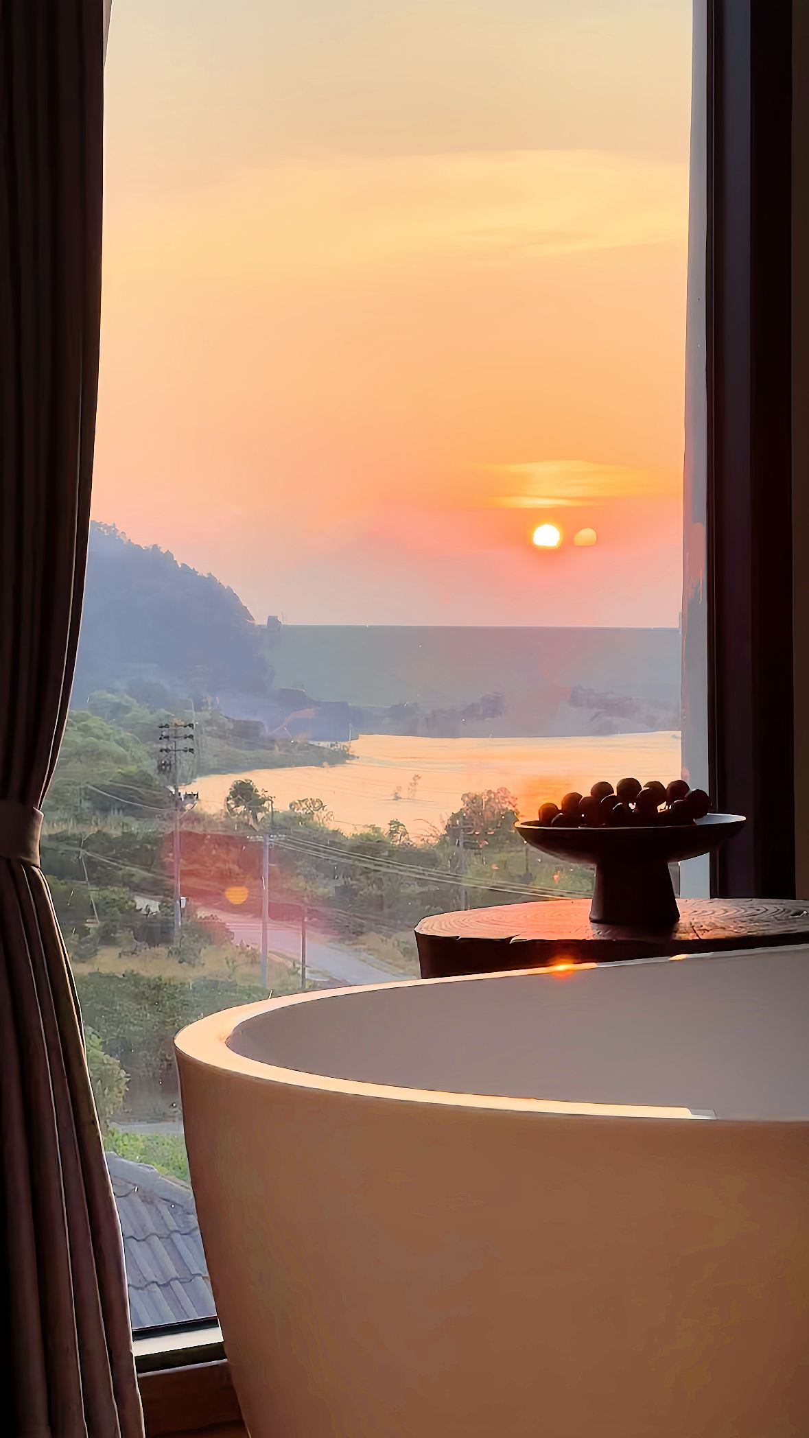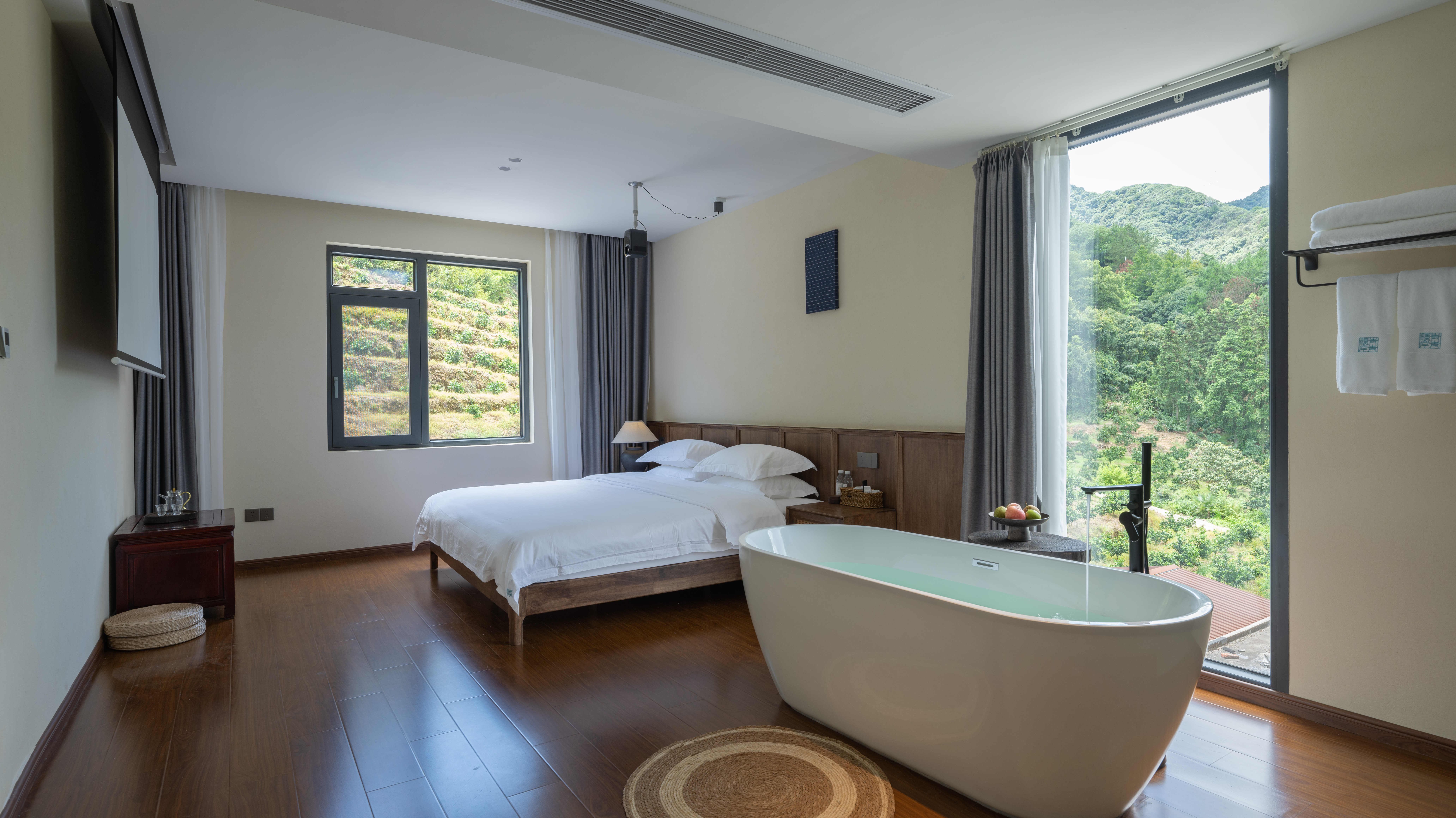 夏竹-大床房「枕山卧江·光影流转」玫瑰浴缸|巨幕投影