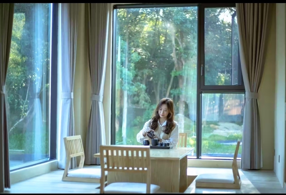 沉思|侘寂下沉日式茶室泡池大床房(带私家温泉泡池)