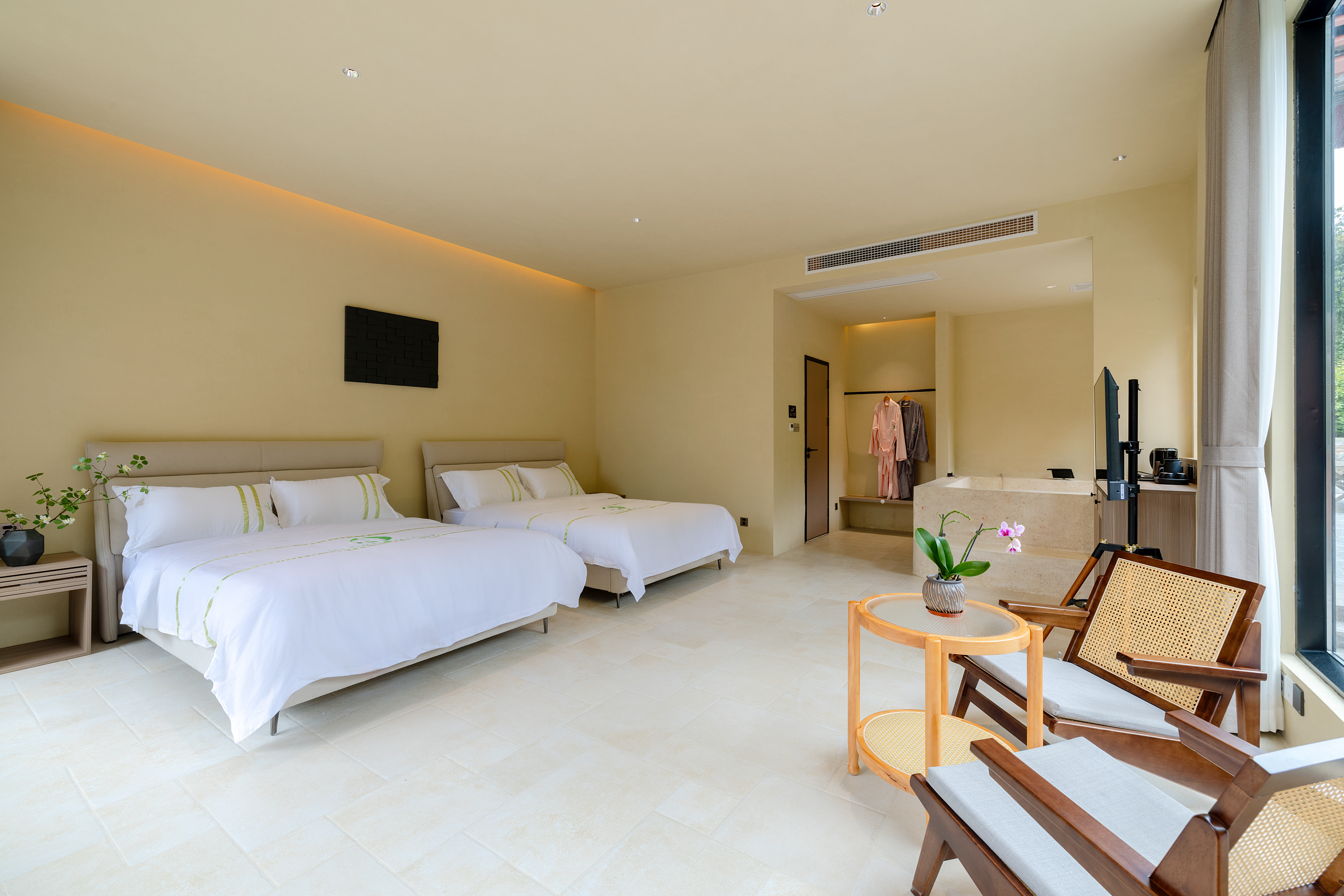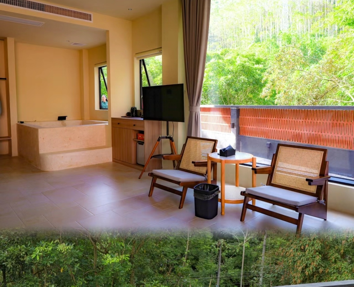 降龙·竹景庭院双床房-超大落地窗(带私家温泉泡池)