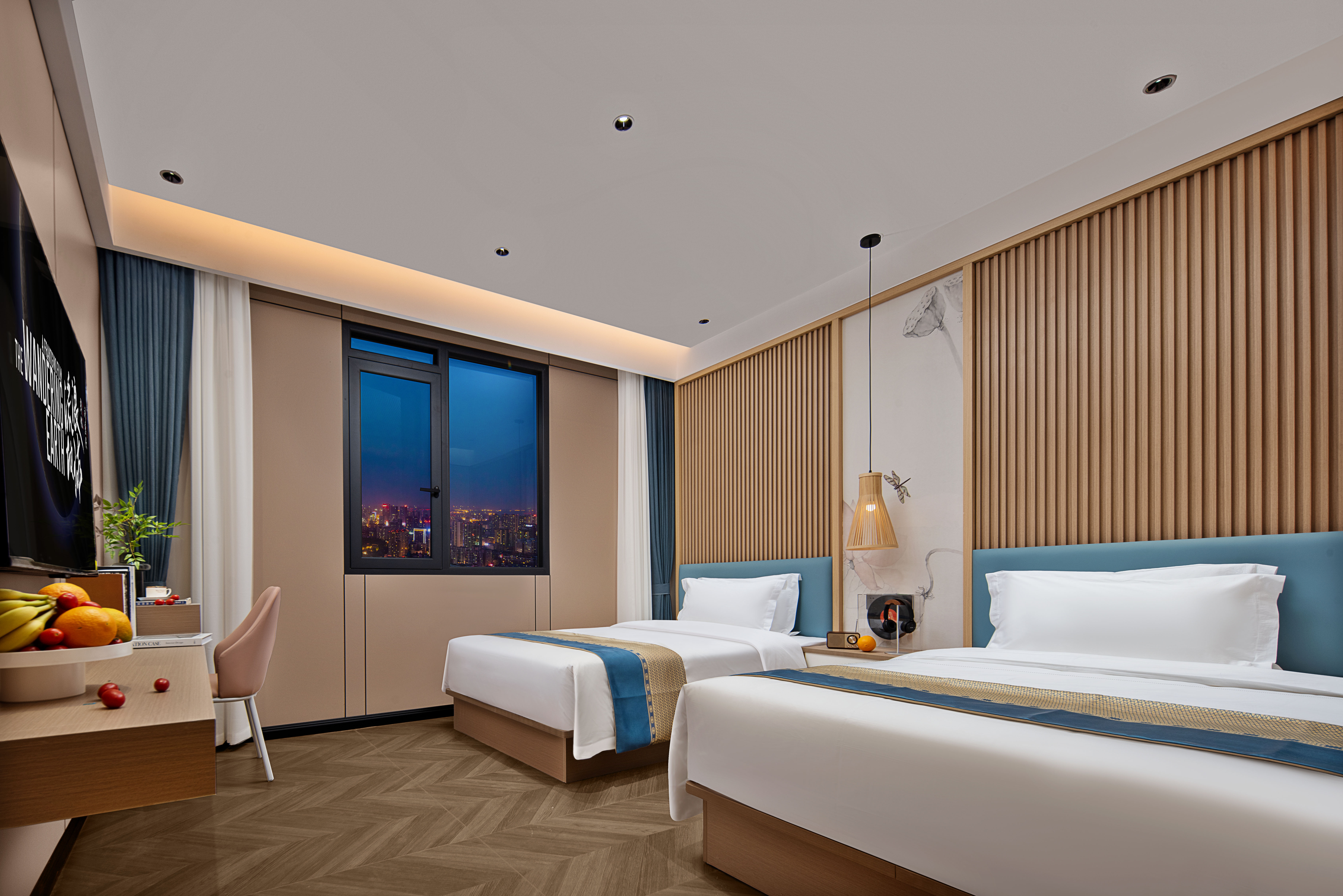 暮雪·揽月65寸投屏双床房「院线大片随心看|深度睡眠乳胶床垫|可支持手机投屏」