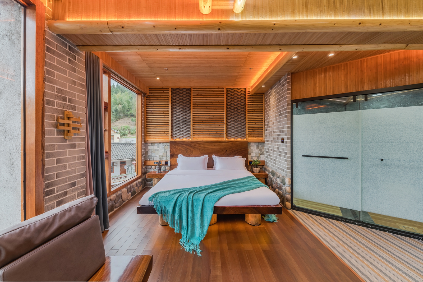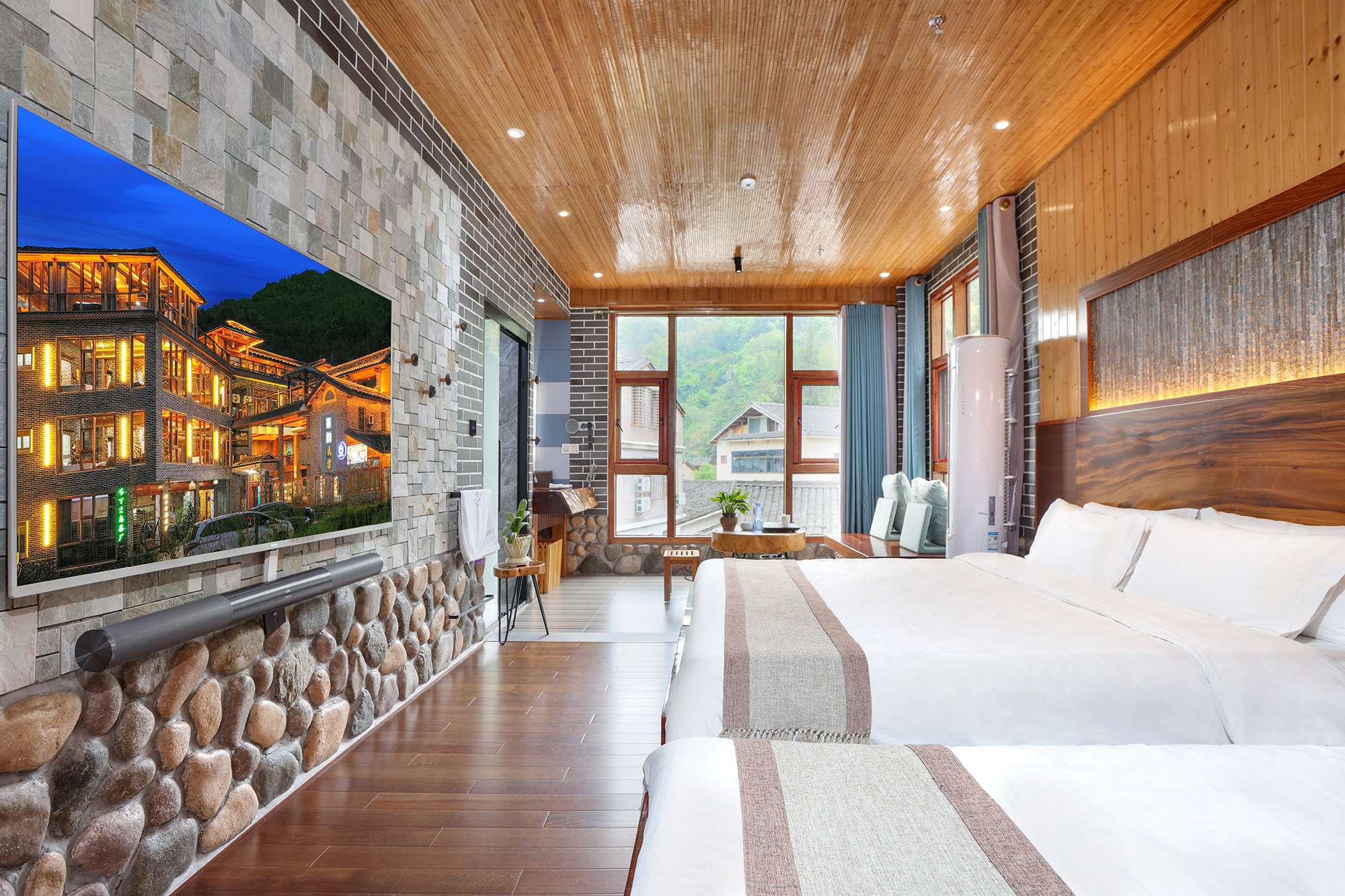 毛蟹·大床房(红木大板床·超爽淋浴·清新茶香·70寸4k超级电视·土楼屋顶风景)