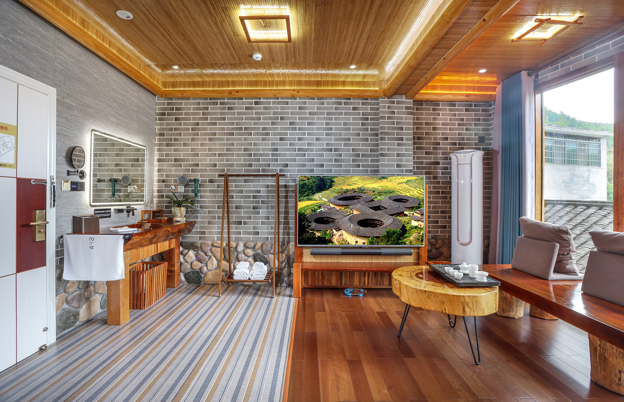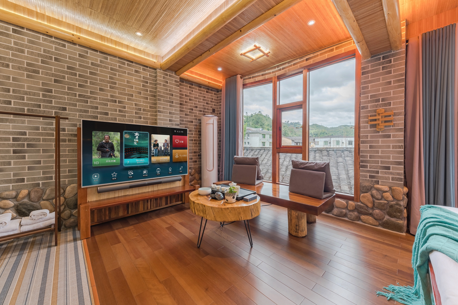 毛蟹·大床房(红木大板床·超爽淋浴·清新茶香·70寸4k超级电视·土楼屋顶风景)
