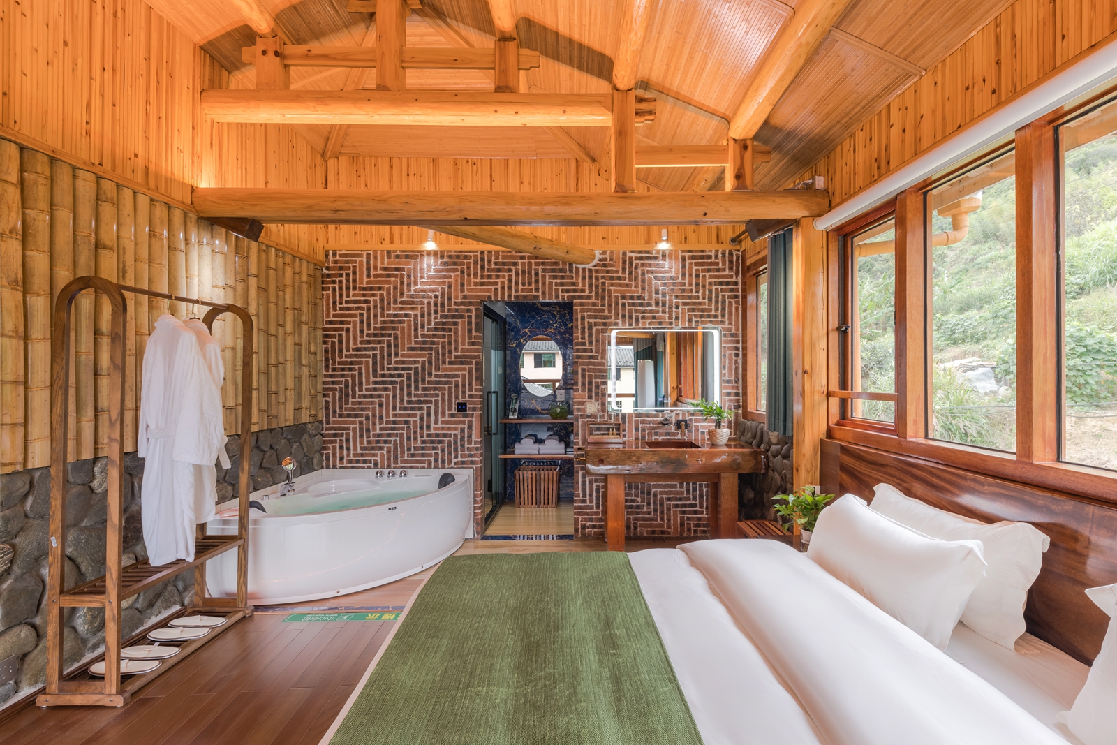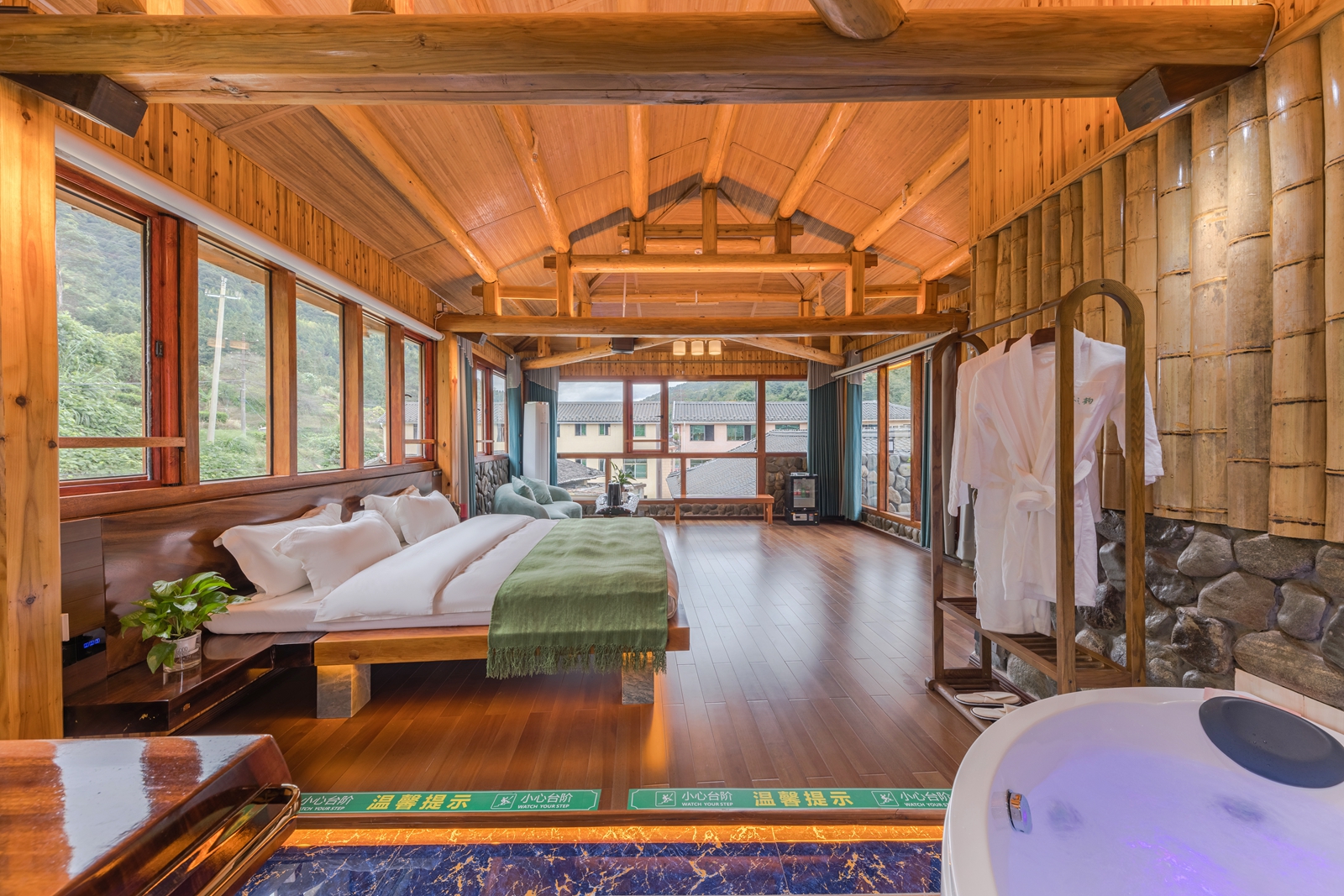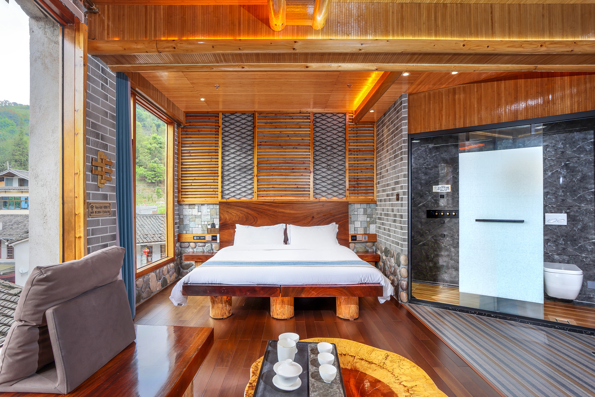 毛蟹·大床房(红木大板床·超爽淋浴·清新茶香·70寸4k超级电视·土楼屋顶风景)