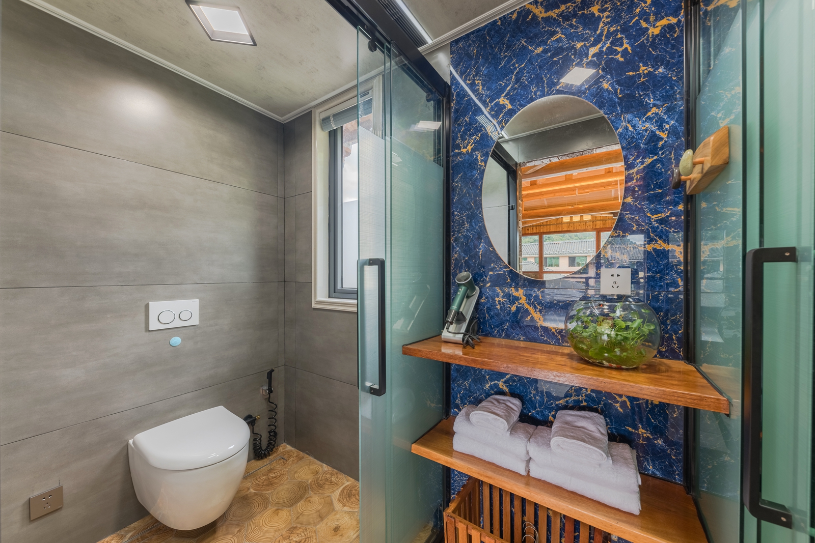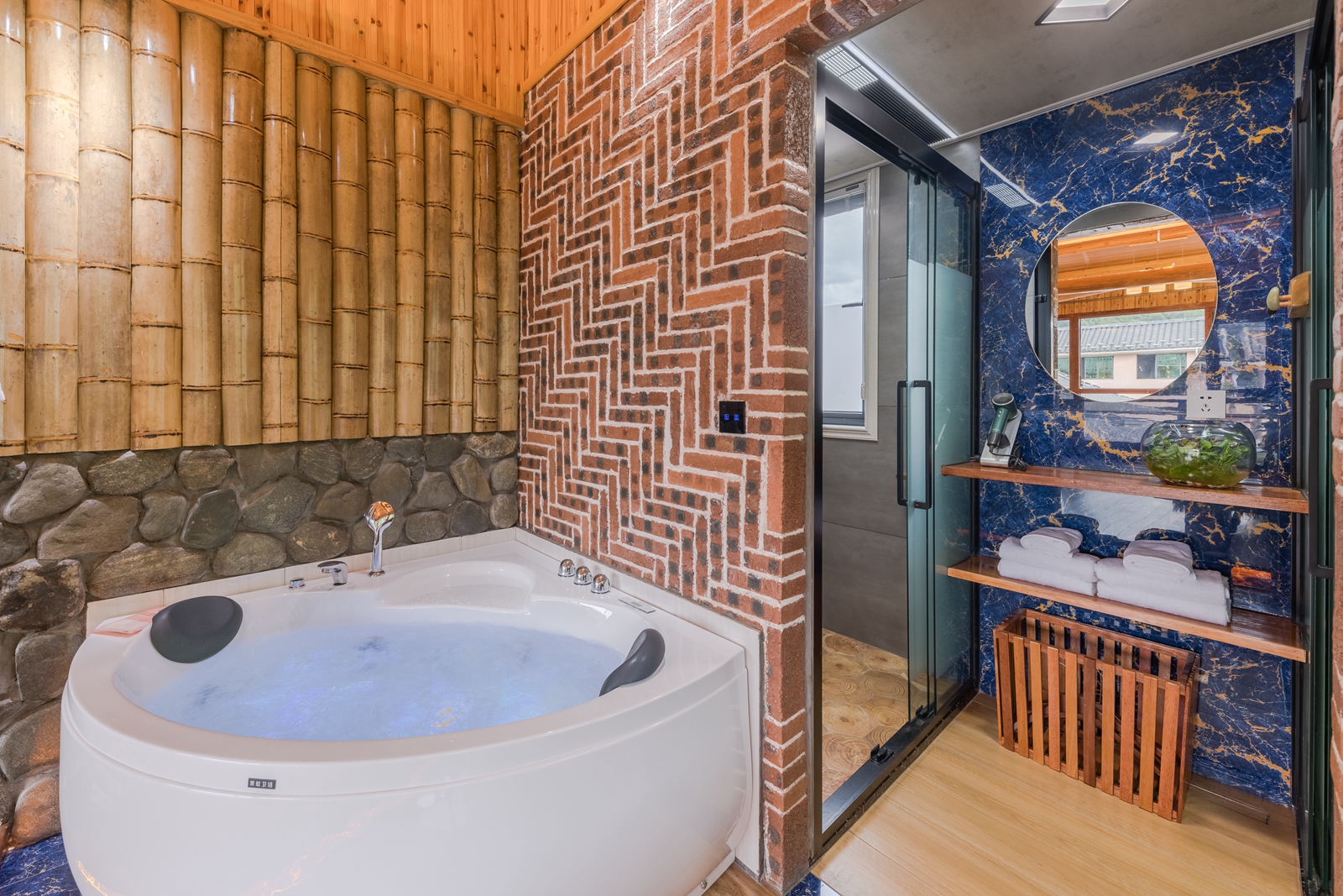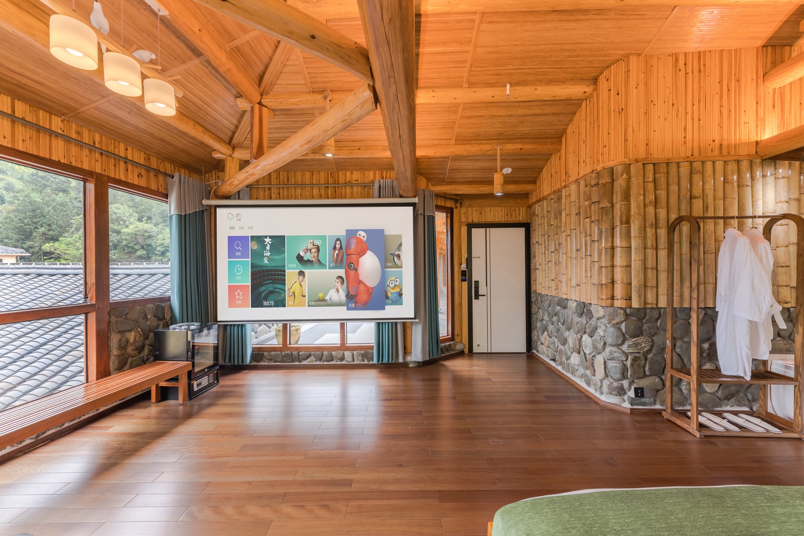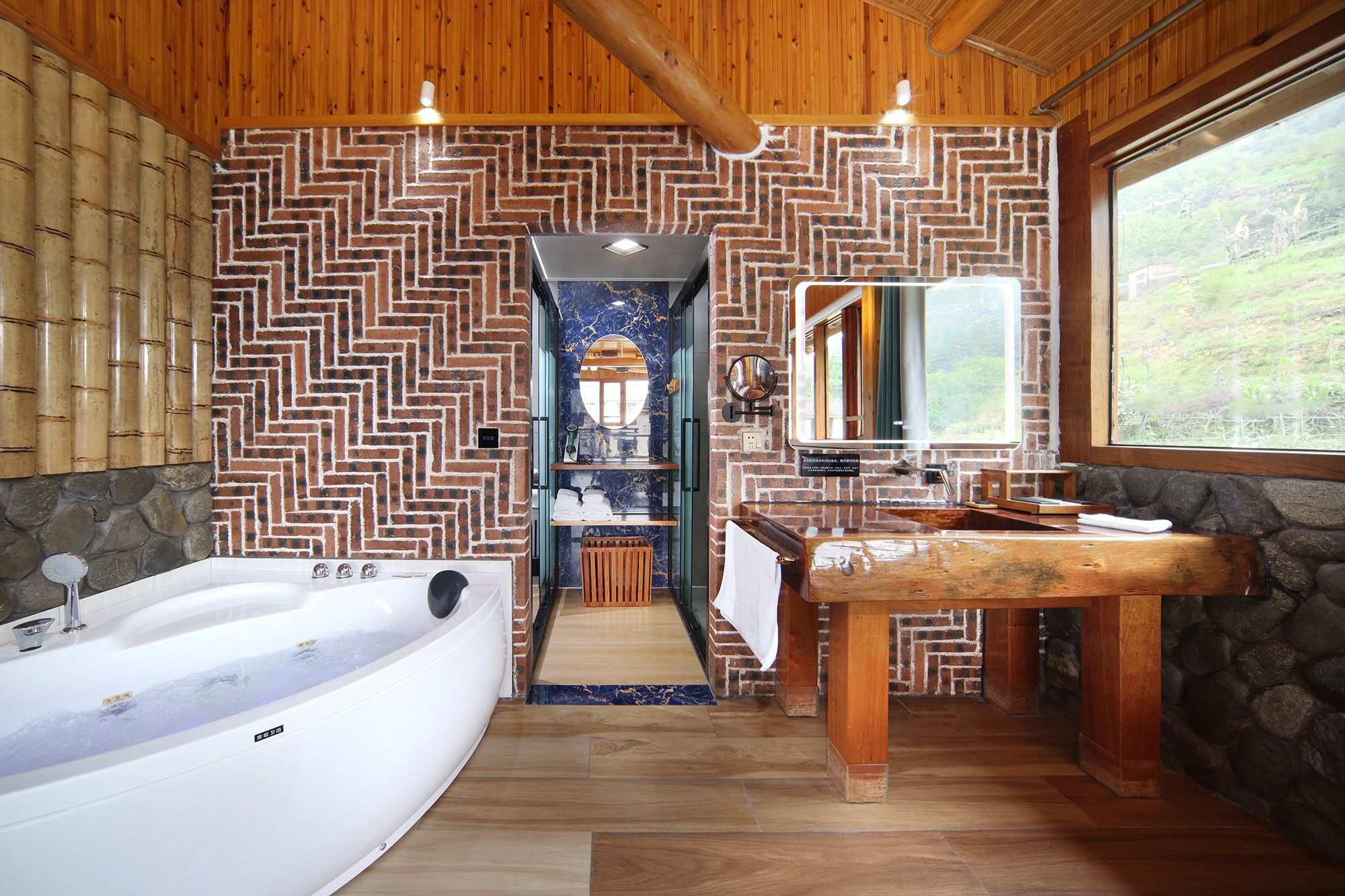 毛蟹·大床房(红木大板床·超爽淋浴·清新茶香·70寸4k超级电视·土楼屋顶风景)