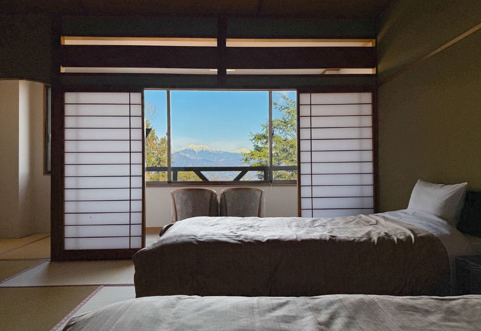 日式艺术中央房,带浴室和山脉景观