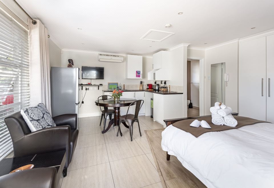 行政开间, 1 张大床, 简易厨房, 庭院