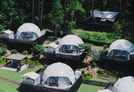 在5个配有空调的圆顶房间之一入住,您将感到宾至如归。床铺配有羽绒被和高档床上用品。您可以在私人露台上准备餐点。免费的无线网络保持您与外界的连接,智能投影仪为您的娱乐提供服务。浴室有独立的浴缸和淋浴设施,私人浴室配有按摩浴缸,淋浴间则配有雨淋式花洒。提供免费的接驳车服务(需要提前预约)。