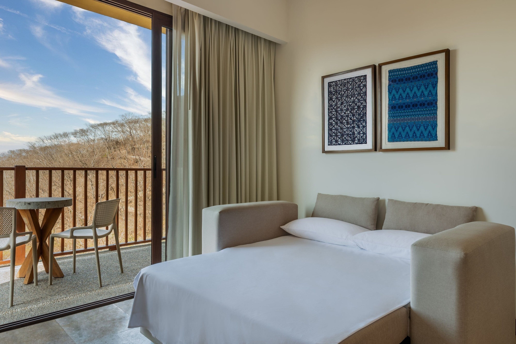 全包房,含一张特大床和一张梳化床,享山脉景观
