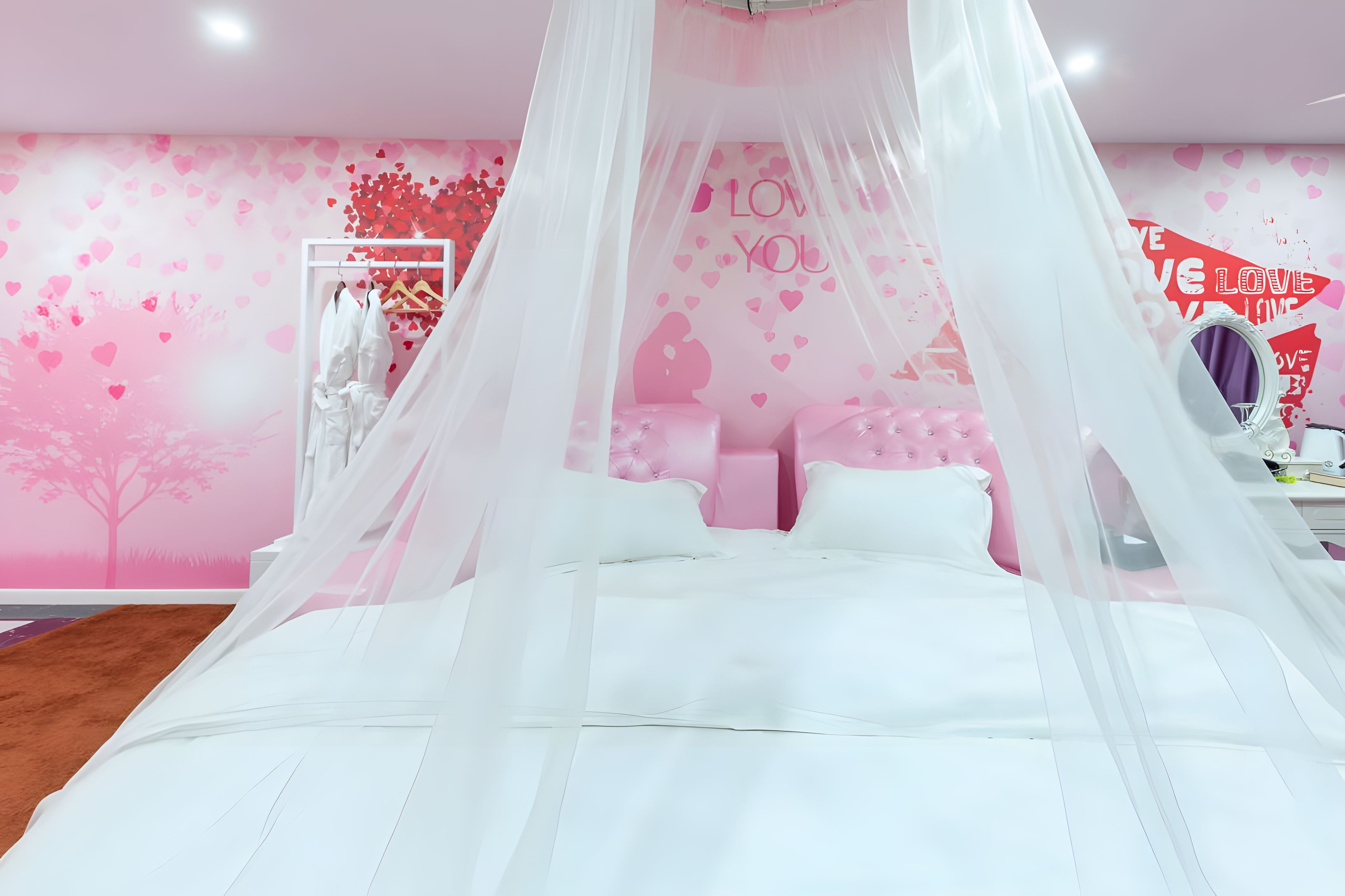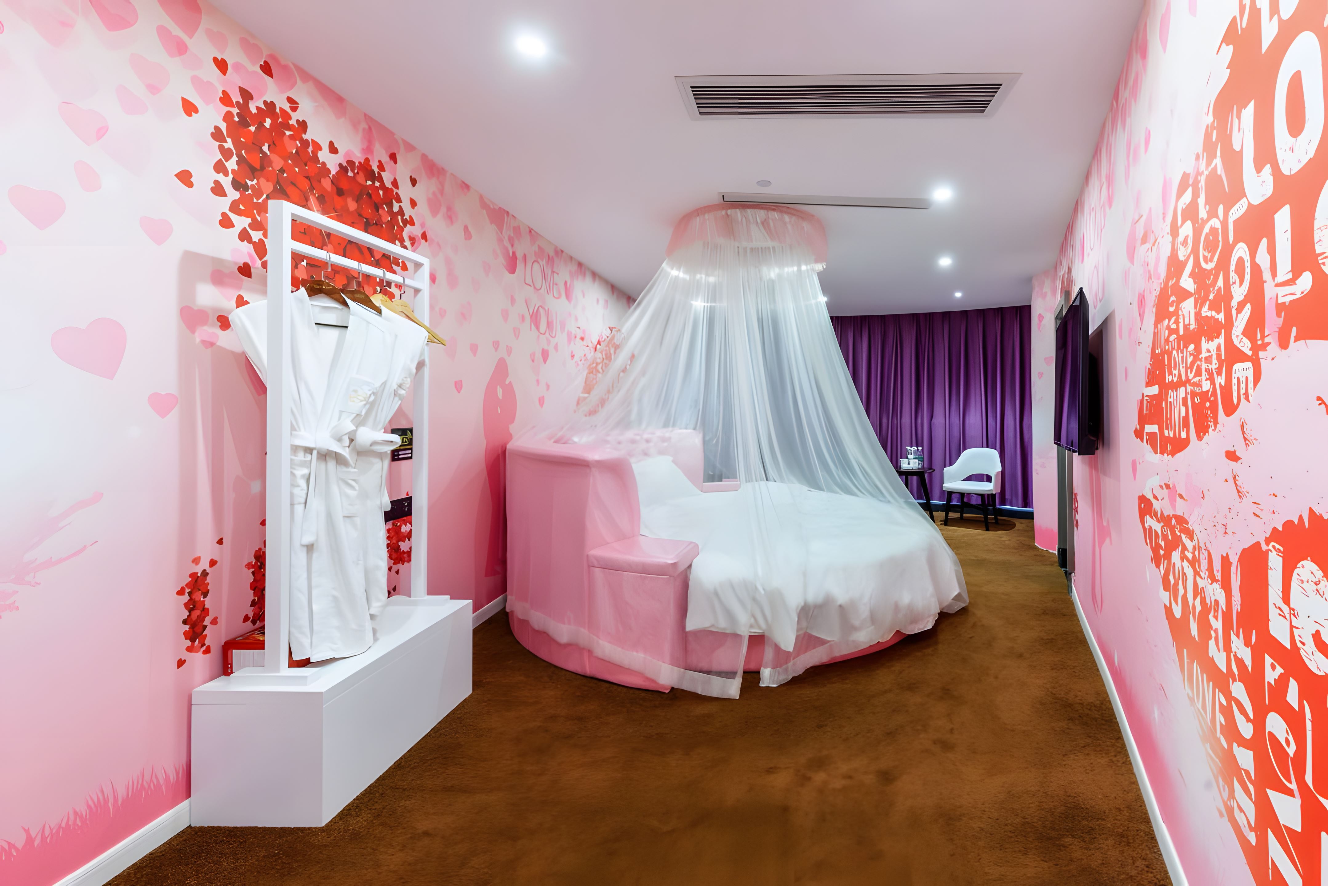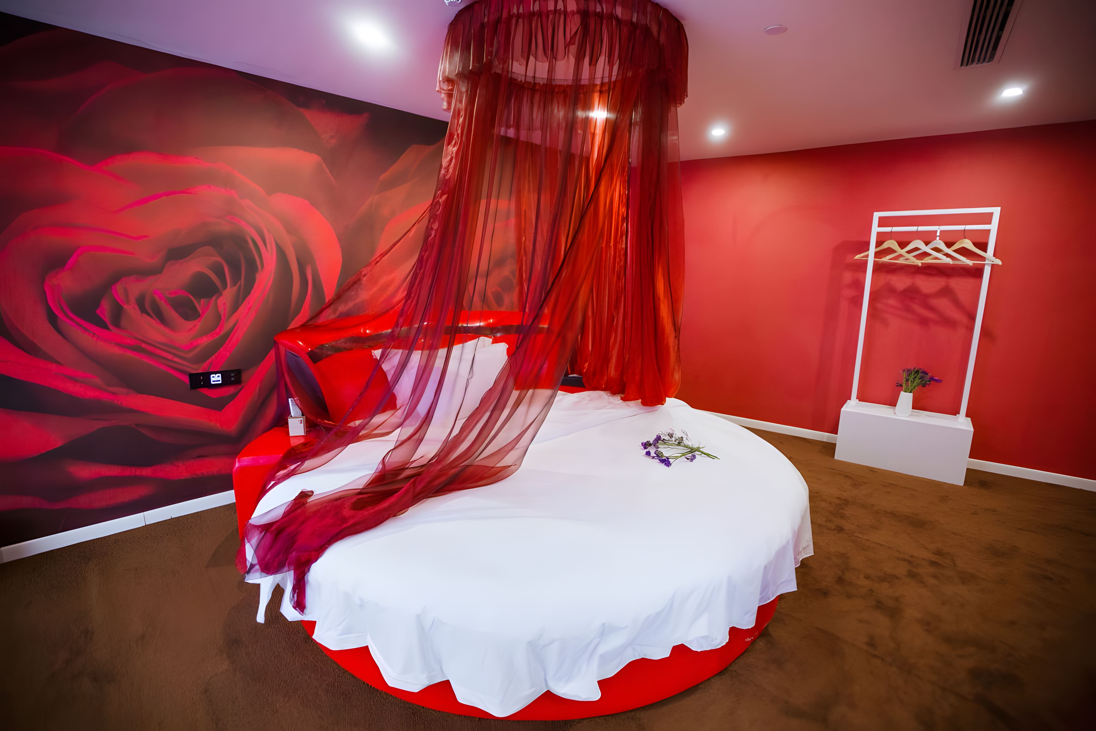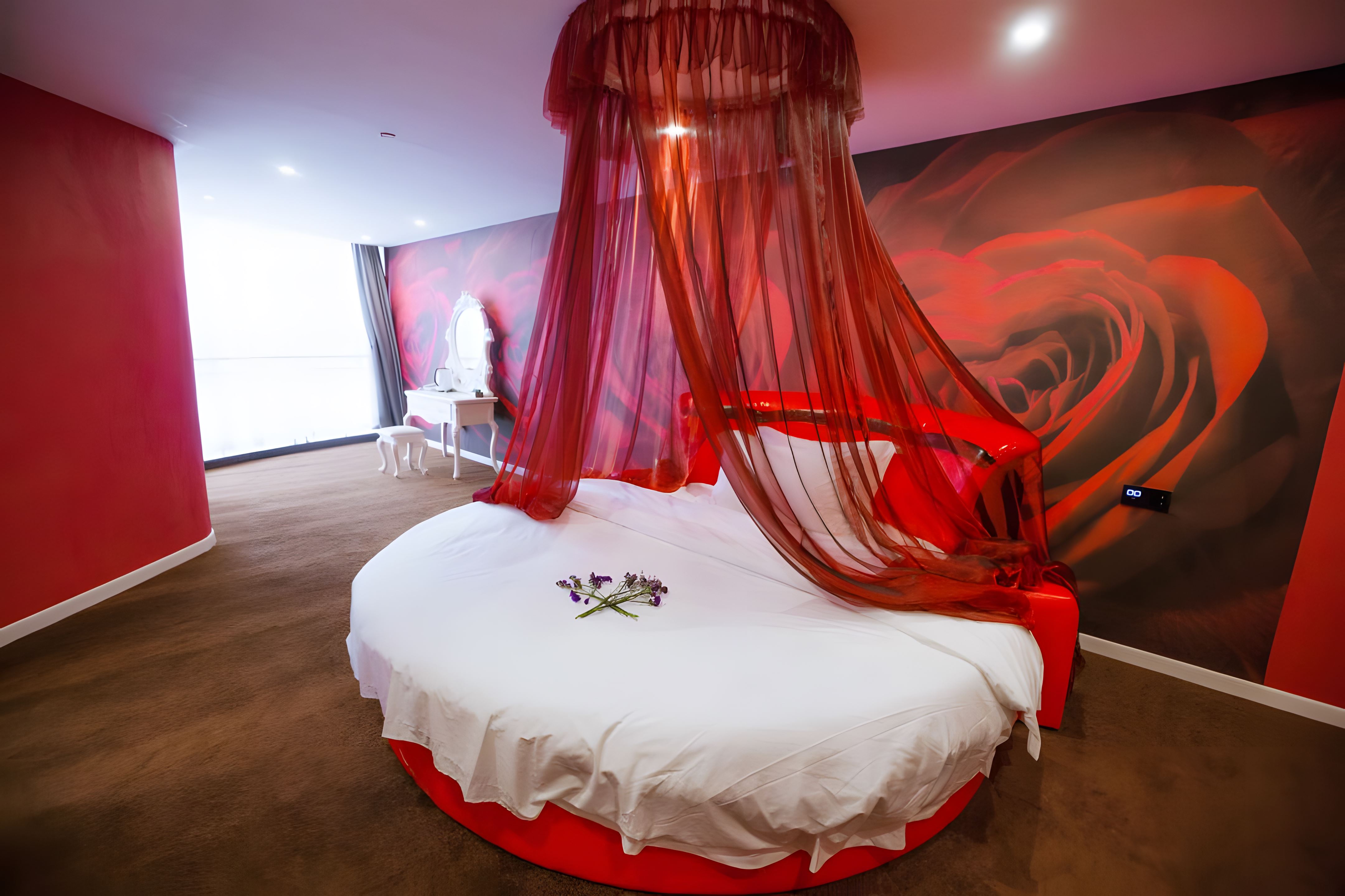 Romantic Nest Round Bed Room (for Couples, Custom Mattress, Tub)