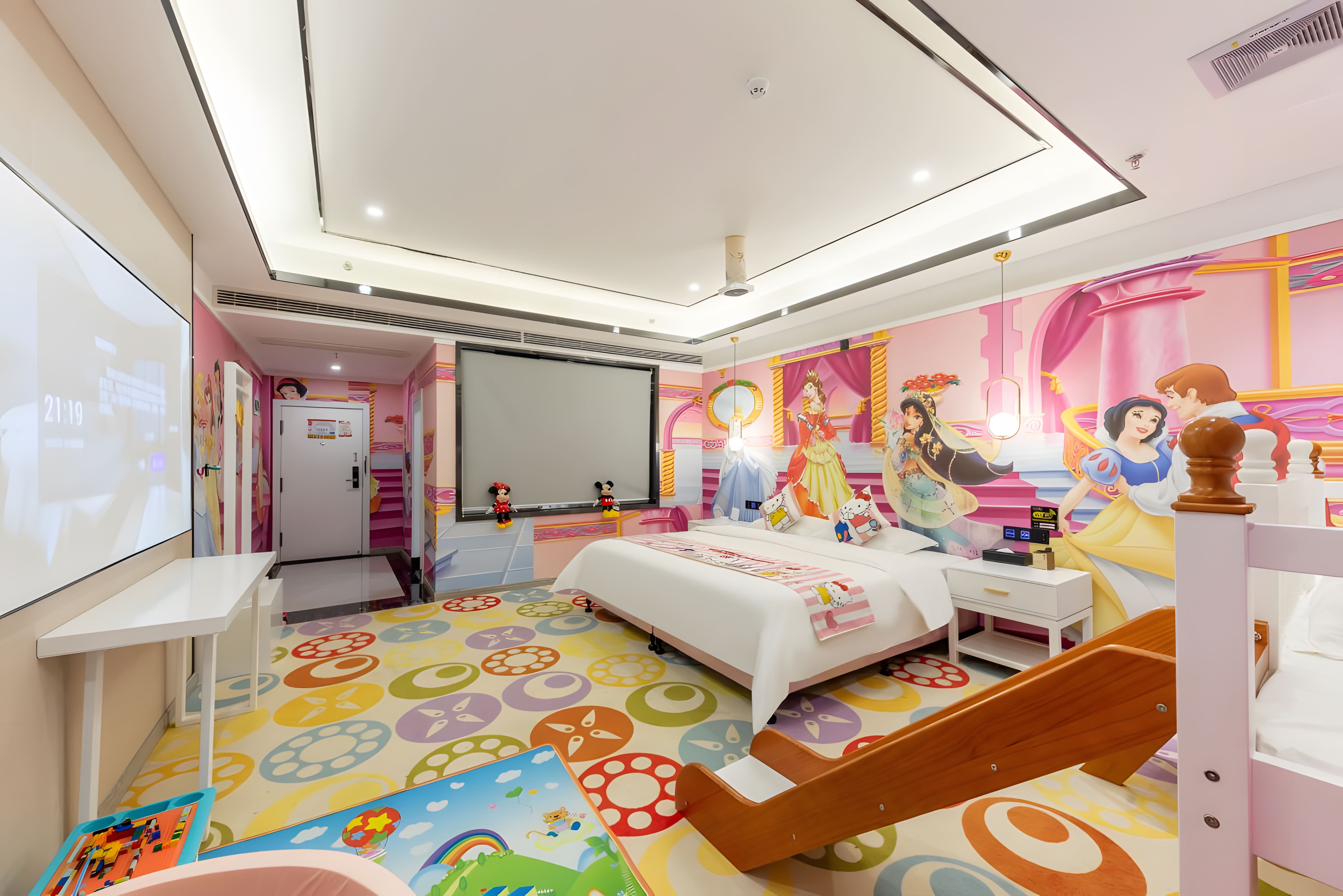 Dreamy Winter Fantasy Family Slide Room (Claw Machine, Bunk Beds With Slide, Play Tent, Kids'Bath, Custom Kids'Bedding)