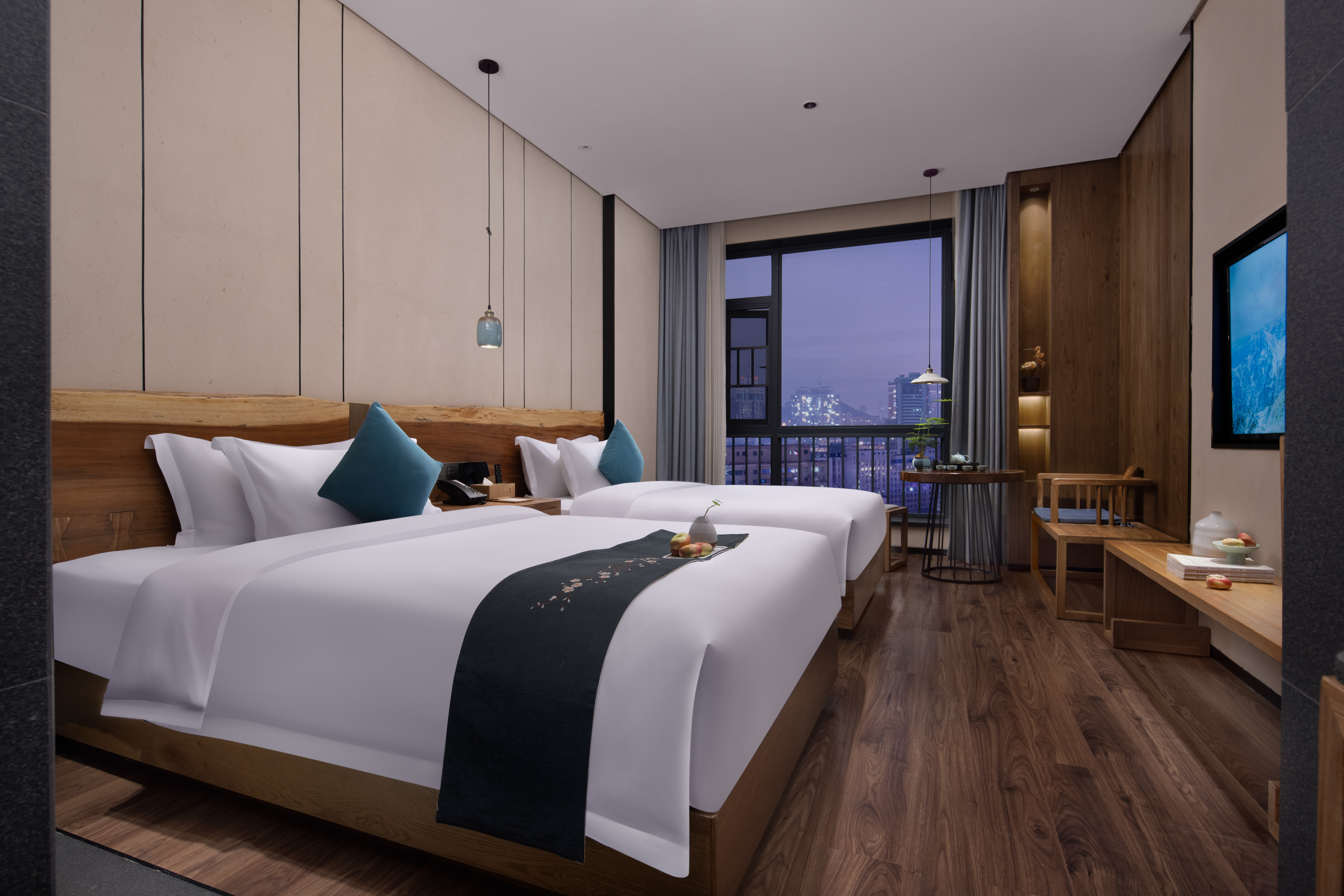 缦静·双床房|双层隔音|双人茶台|全景落地窗