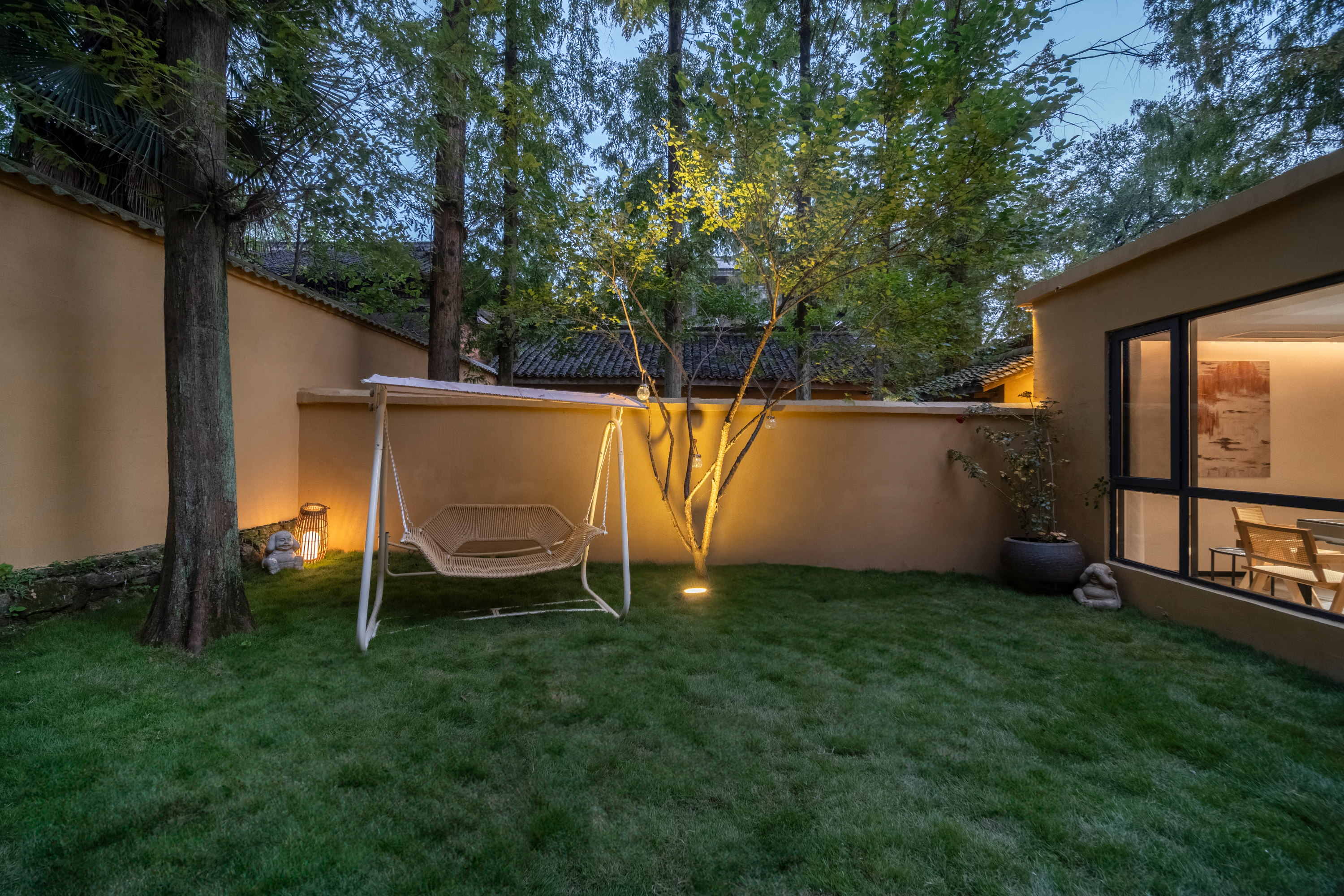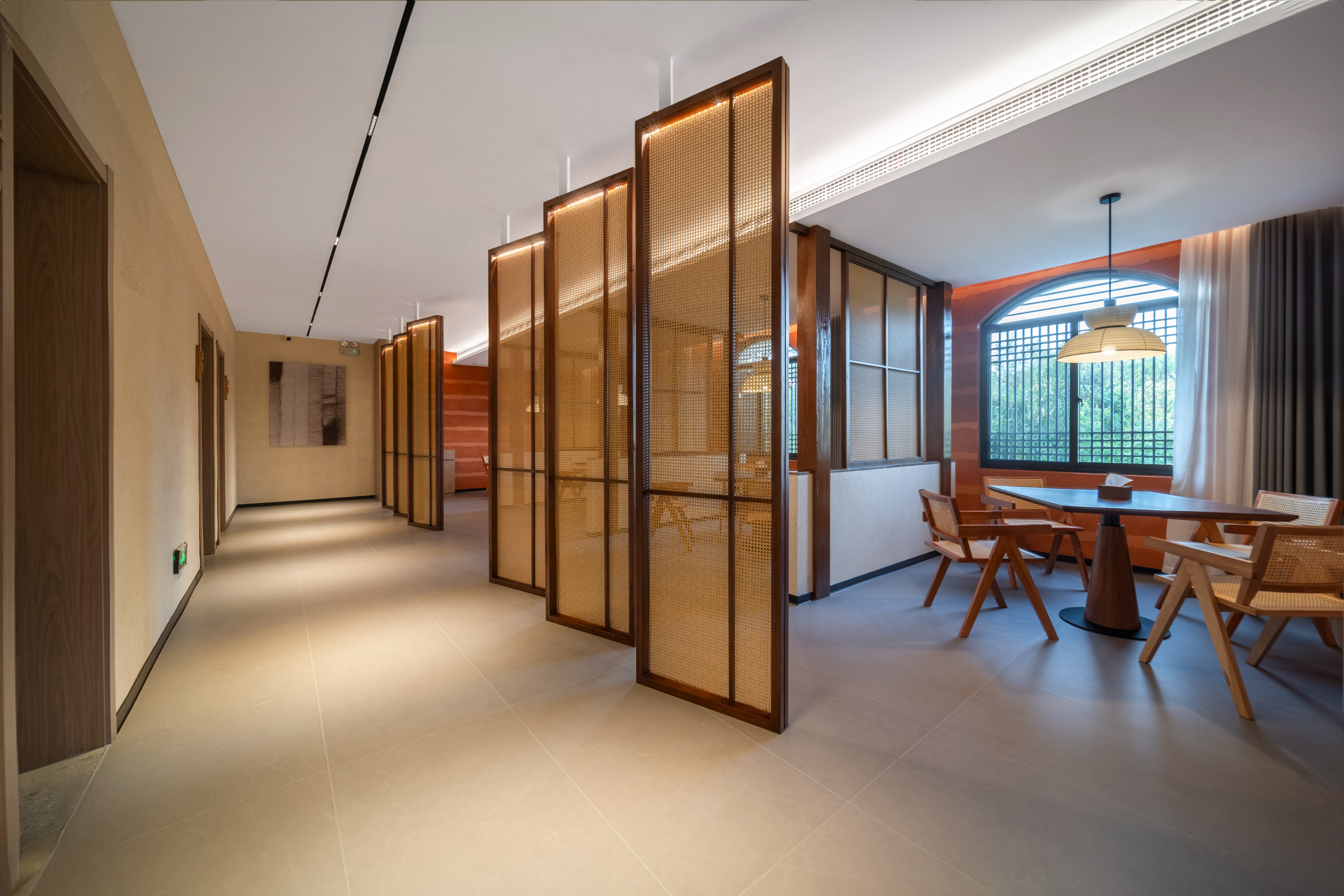 【杉居】坐落於信阳市郝堂村。院子四周荷田环绕,青山绿水间,简约复古的民国风建筑若隐若现,杉树羣、银杏果、石板路、青苔痕,每一帧都像是从画中走来... 房间每一处角落都是一个文艺的故事,每一张床铺都沉淀着浪漫的时光。就算躺一天不出门,也能被日升月落的风景充实。一房一风景,一窗一世界。在淅淅沥沥的雨声、洋洋盈耳的鸟鸣声中起床。散步、骑行、咖啡或者野餐,享受大自然的馈赠。融入山水中里,宿在山水中,听风寻静,感受细水长流的慢生活。 夜幕降临,在杉居品嚐特色信阳菜,新鲜的食材,地道的风味,让您感受每一口的鲜美。 远离喧嚣,融入自然,隐於镇,与初心久别重逢:归於院,让生活宁静自在...