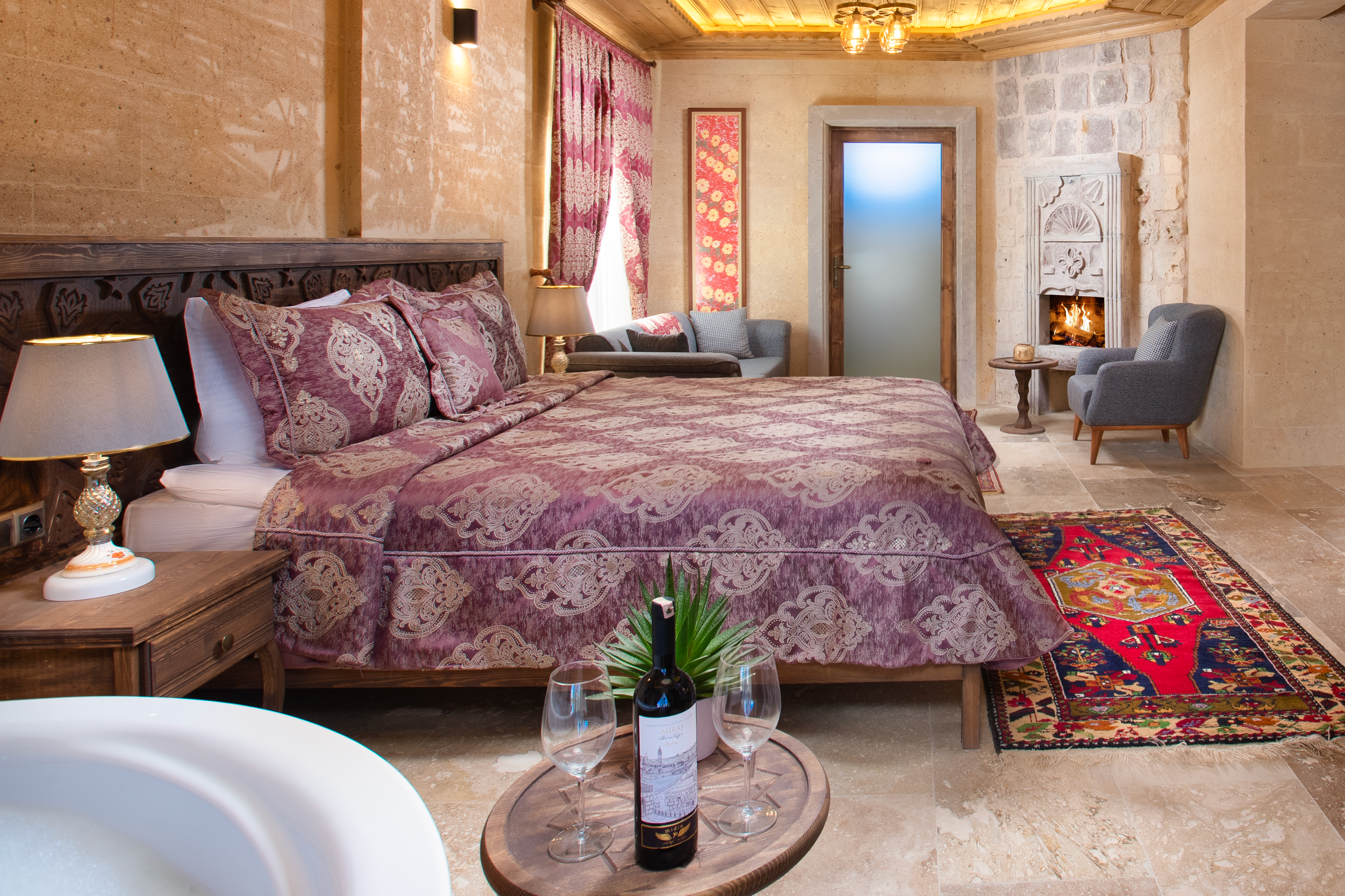 特大号床间 - 带热水浴缸和壁炉