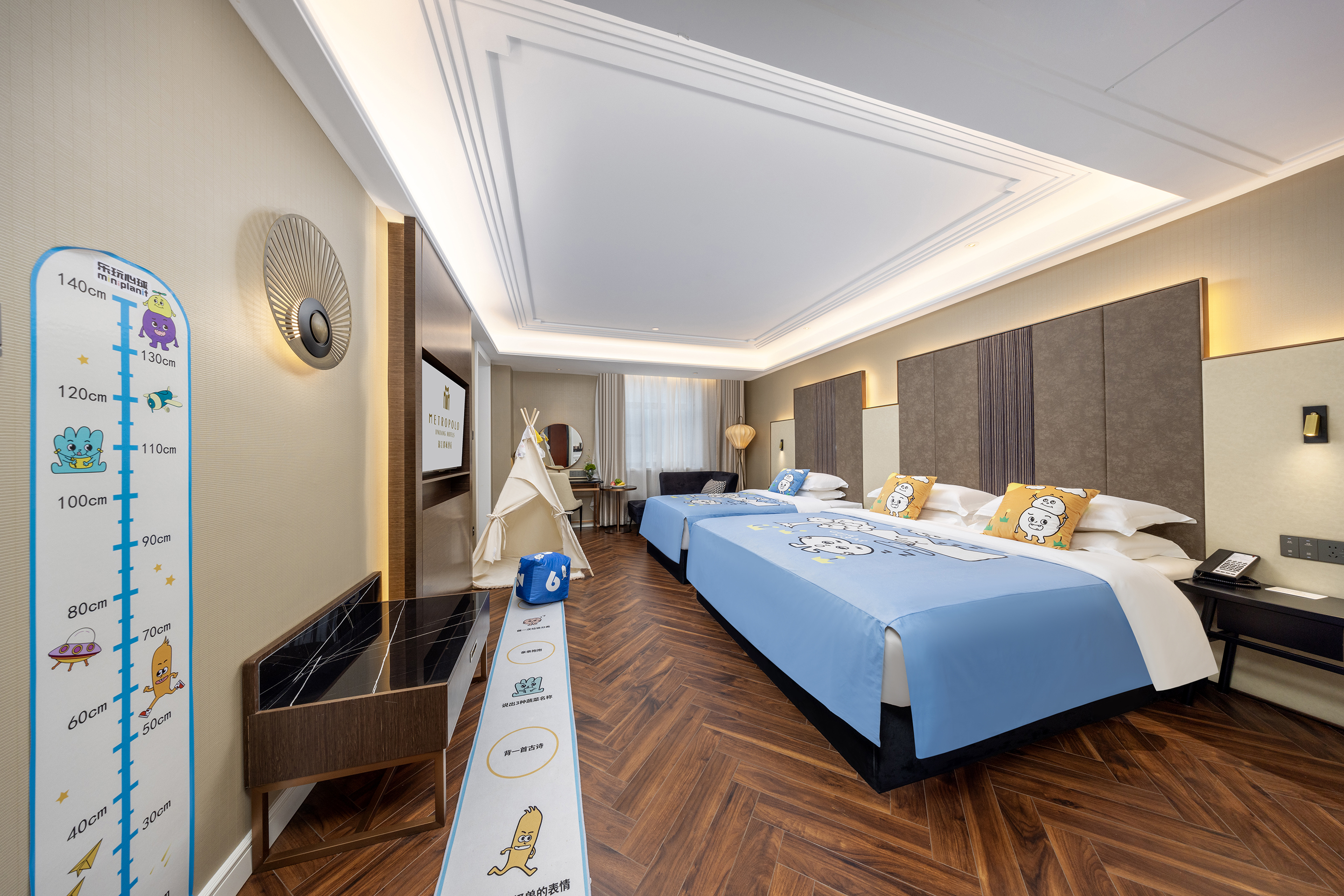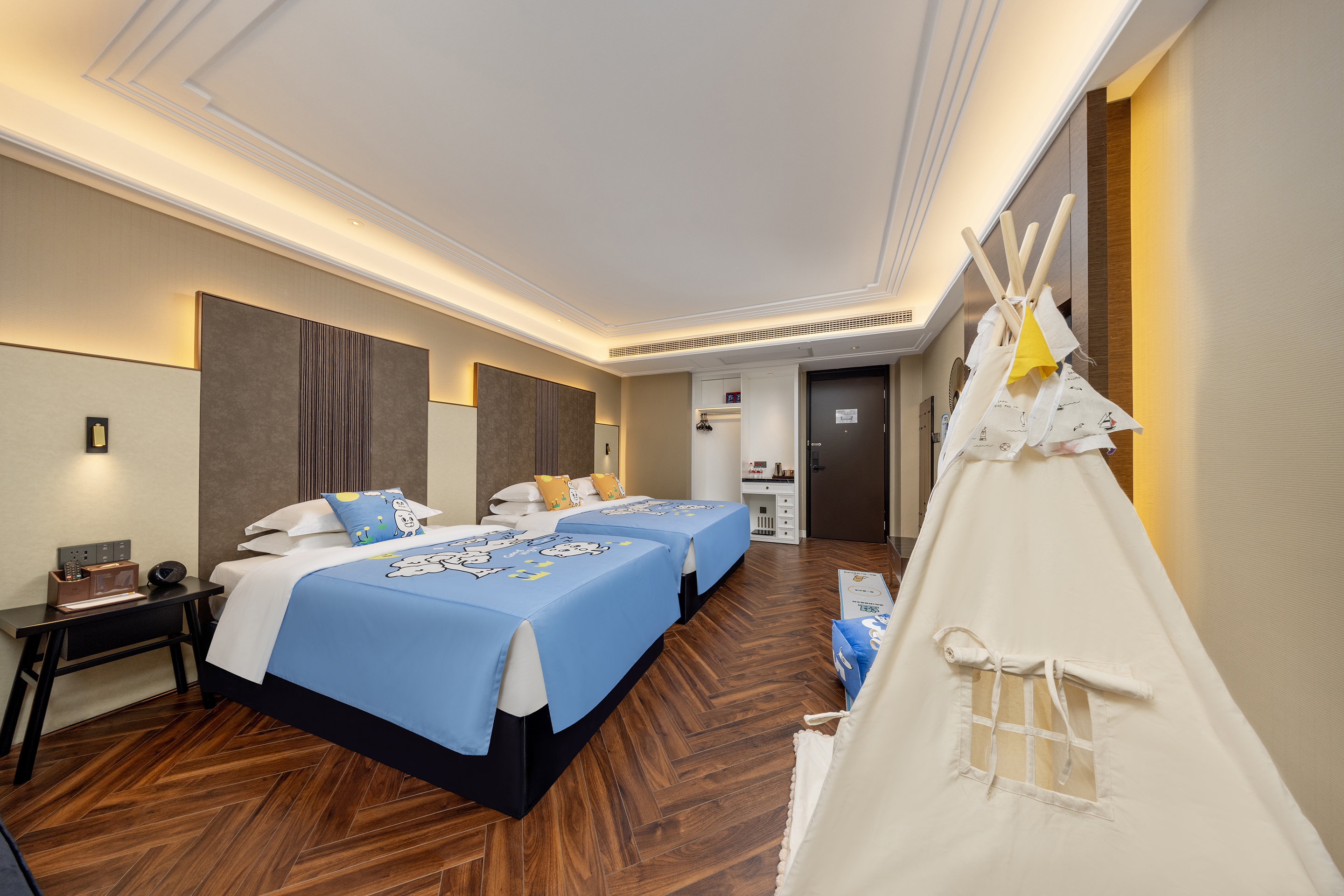 温馨智能家庭房(游玩帐篷+小童元素床盖+亲子双床)