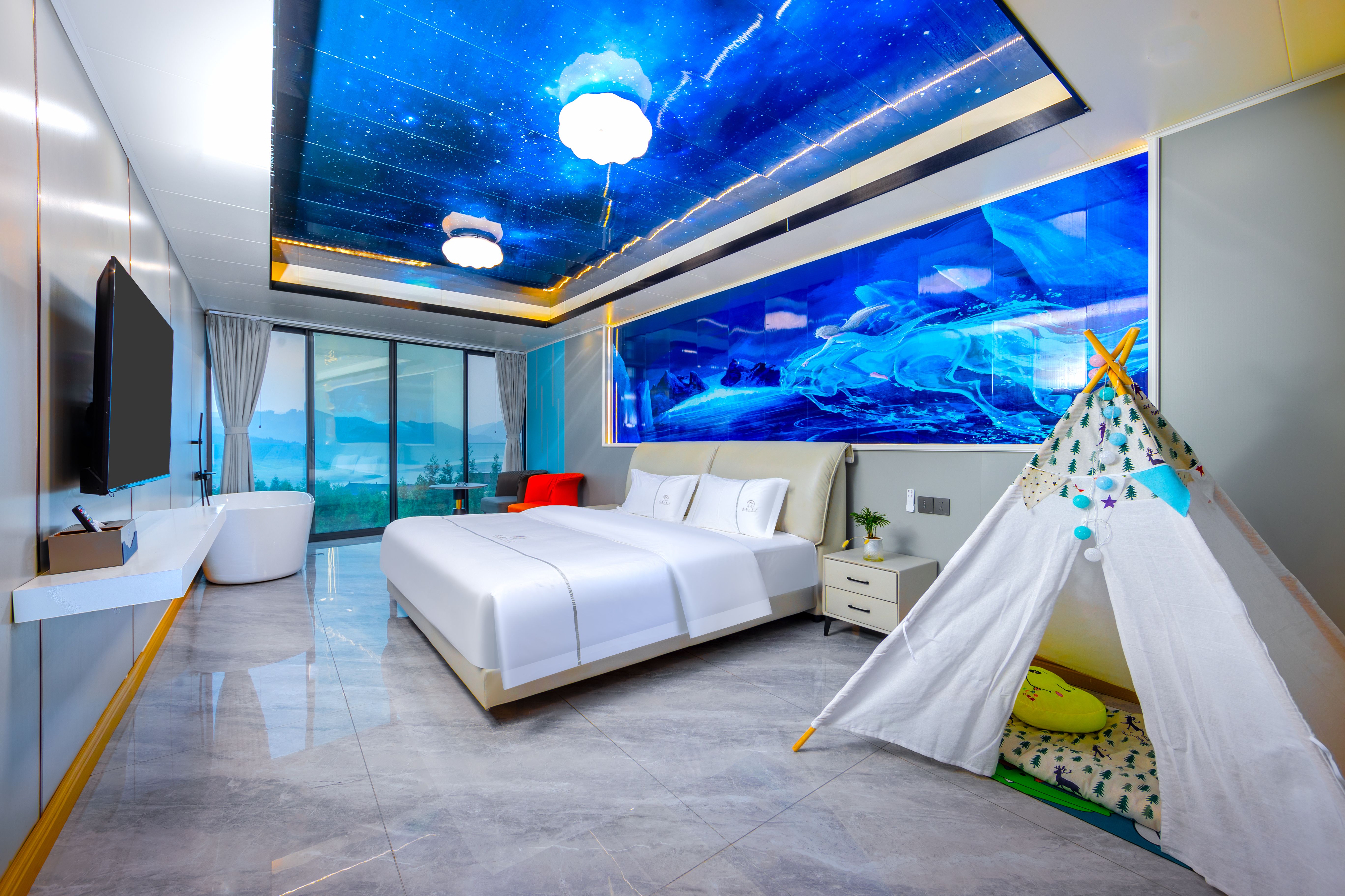 邂逅·湖景投影秋千床房(空调+地暖)
