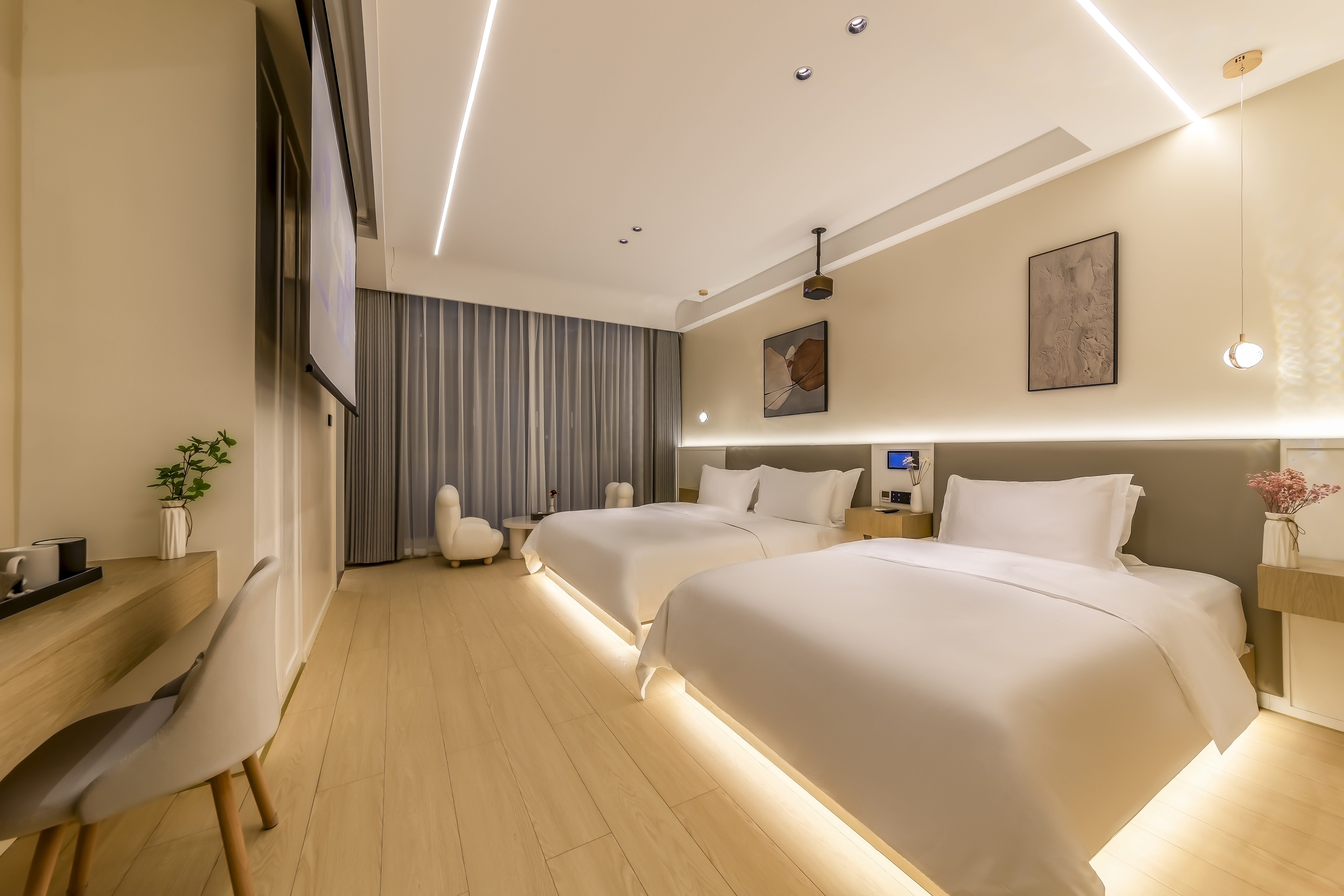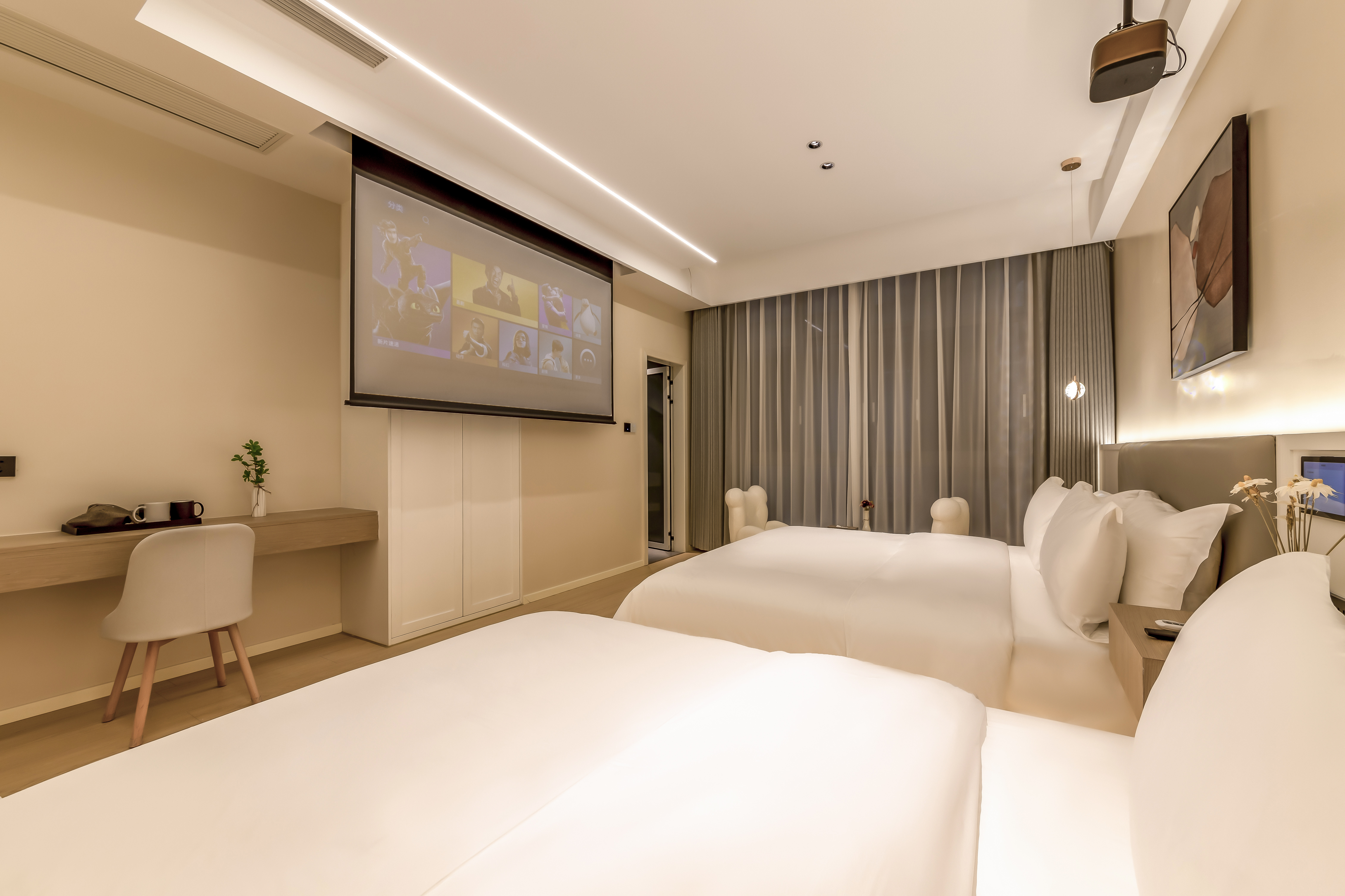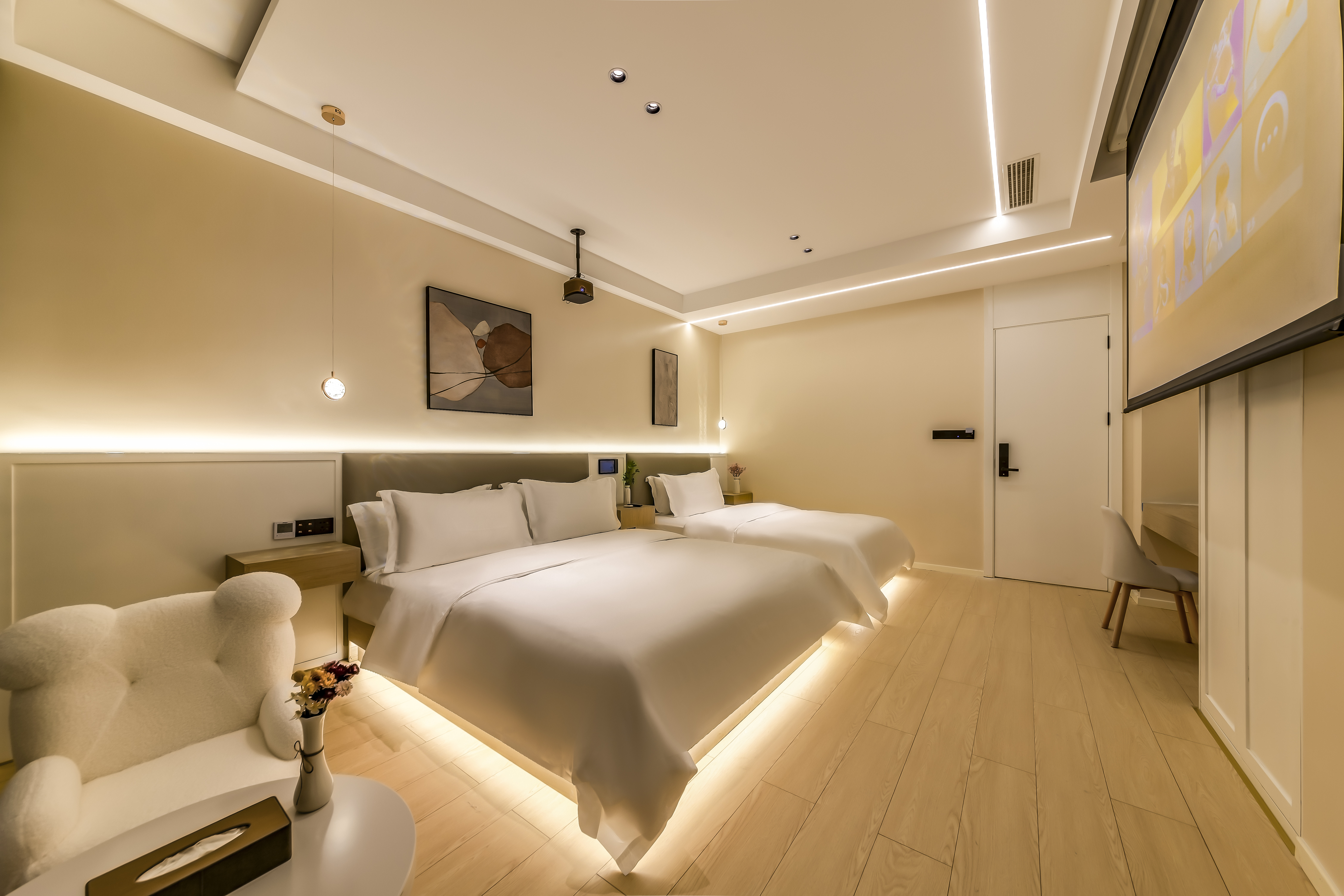 逸然·智能投影湖景亲子双床房(中央空调+水暖+语音客控+慕思乳胶床垫)