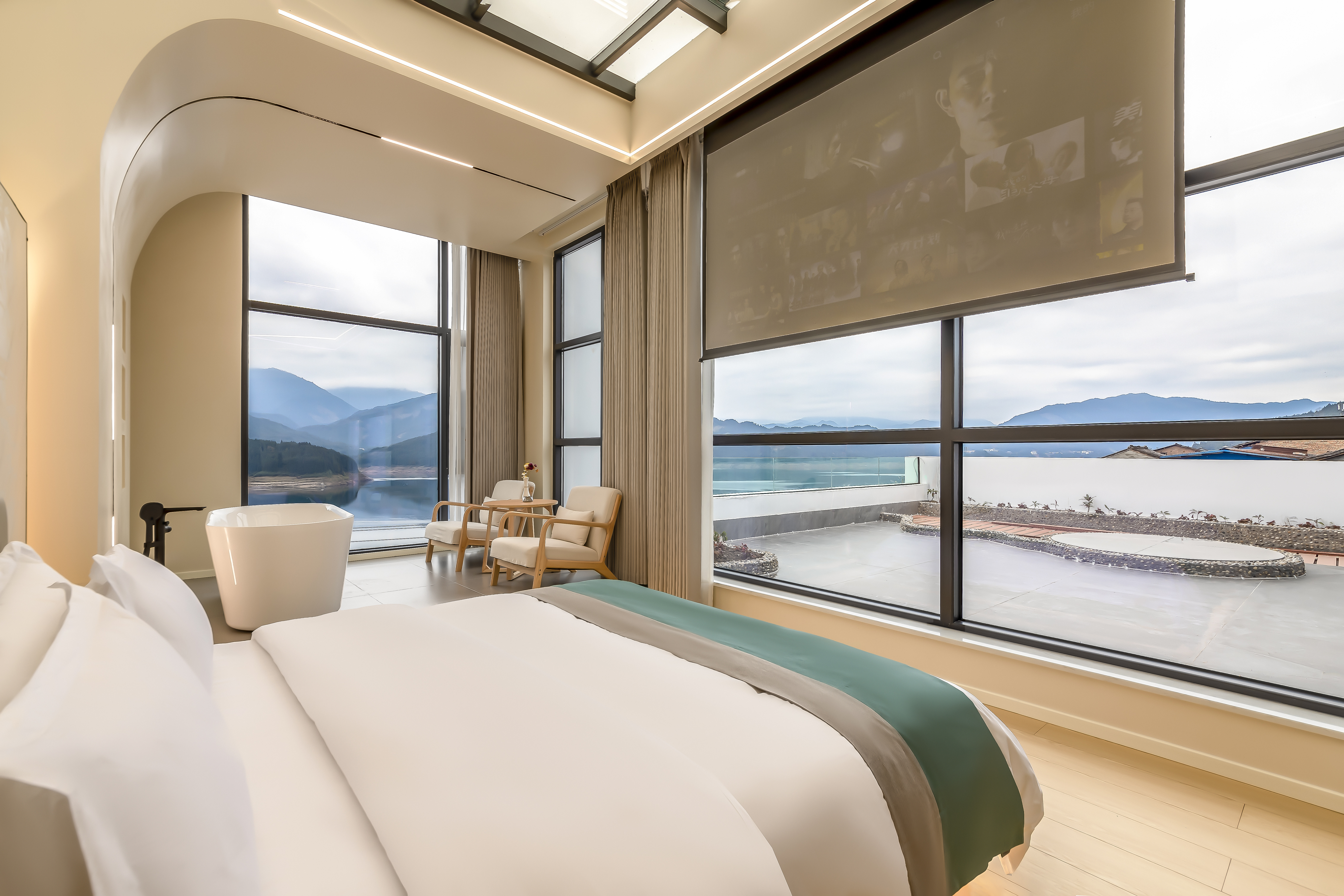 捧星·智能投影豪华湖景星空大床房(中央空调+水暖+语音客控+慕思乳胶床垫+浴缸)