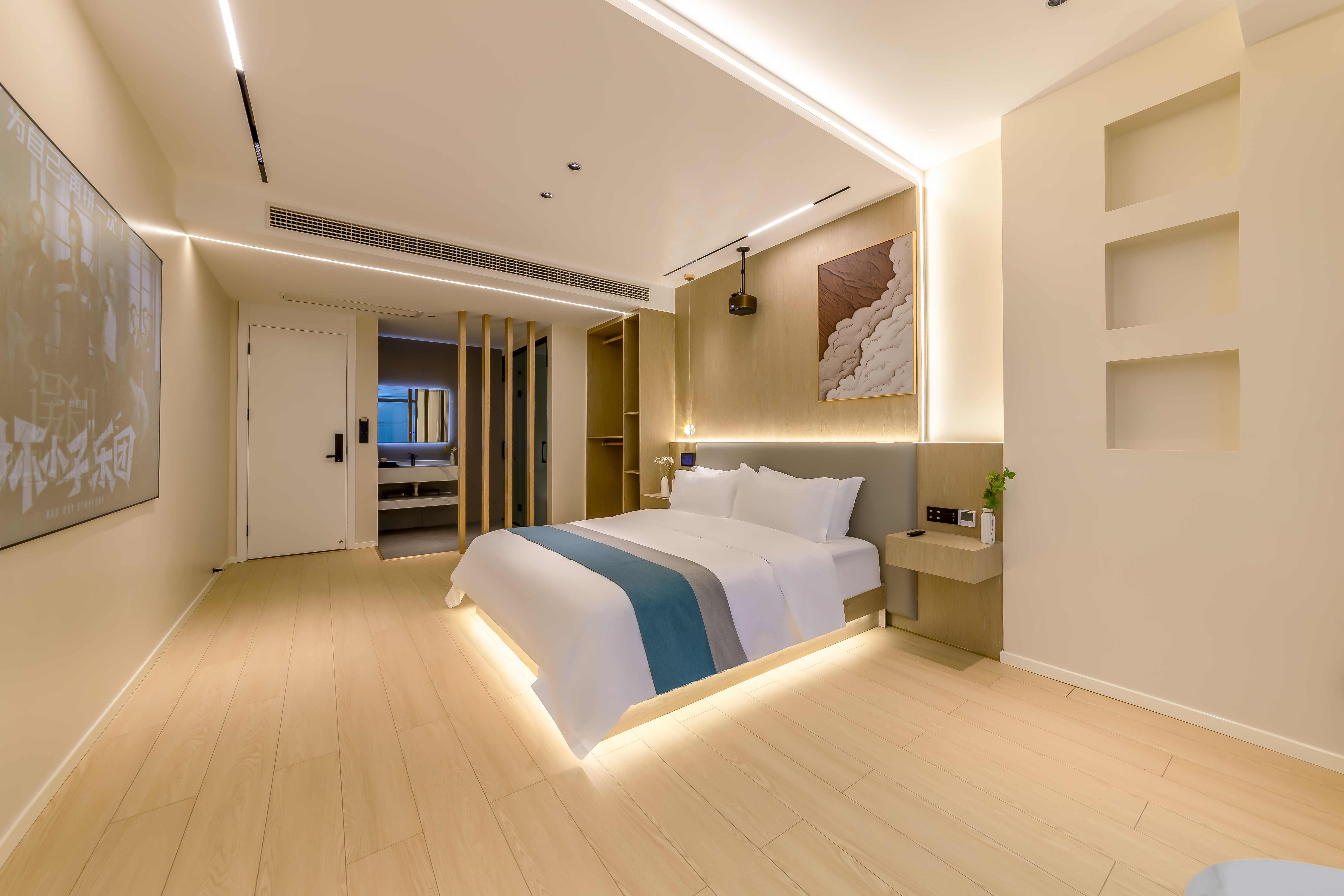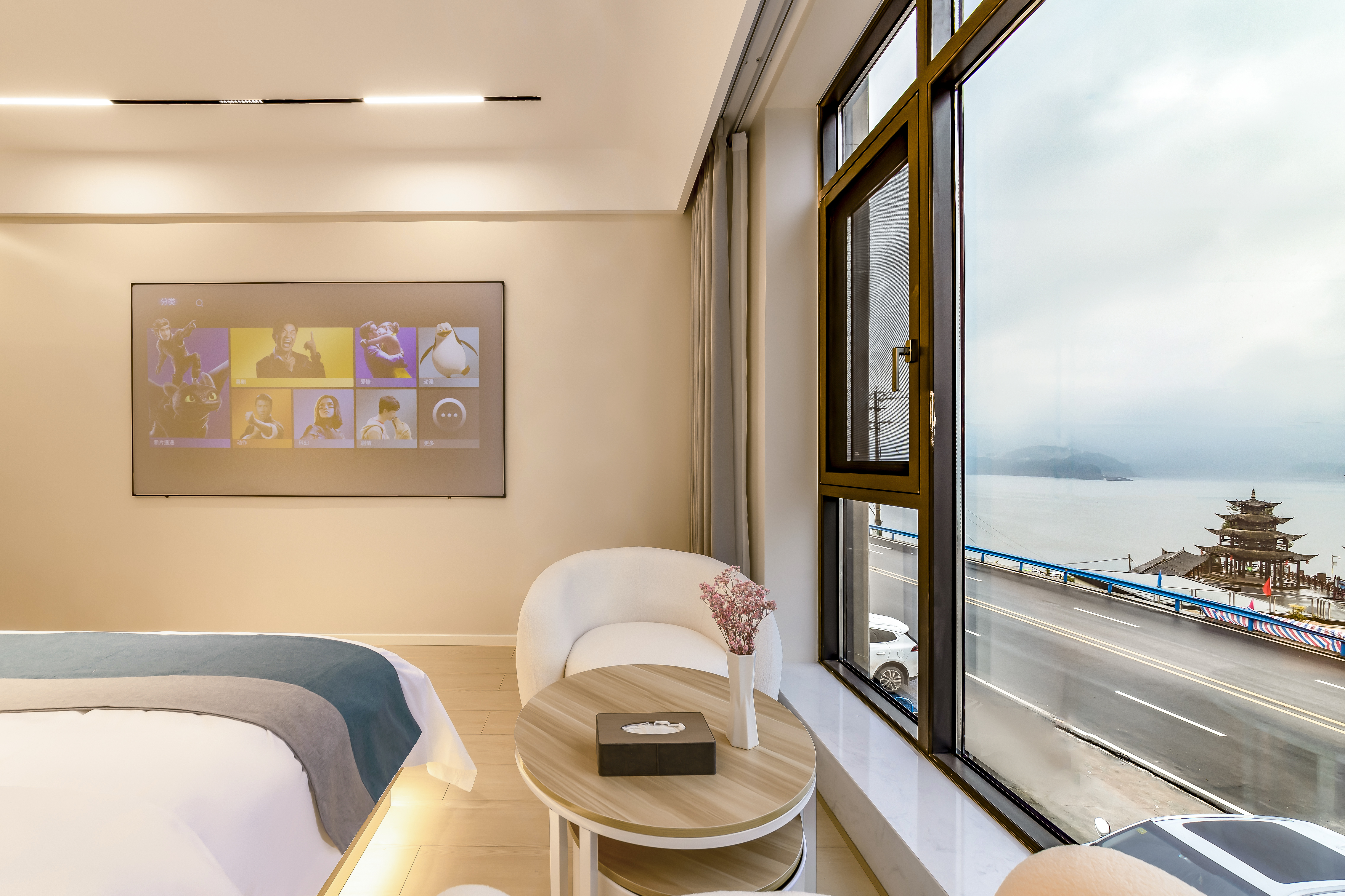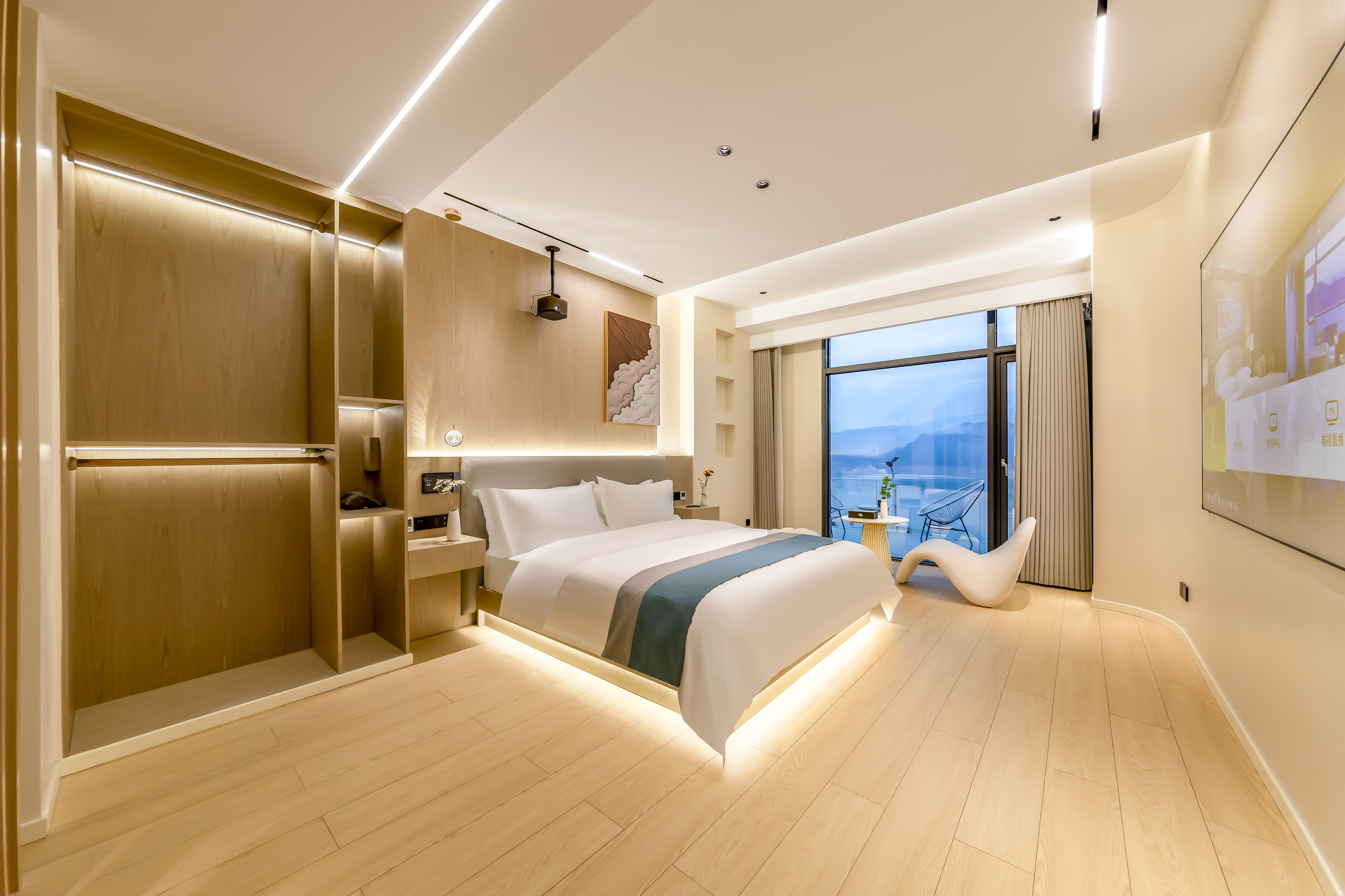 悦里·智能投影湖景大床房(中央空调+水暖+慕思乳胶床垫+语音客控)