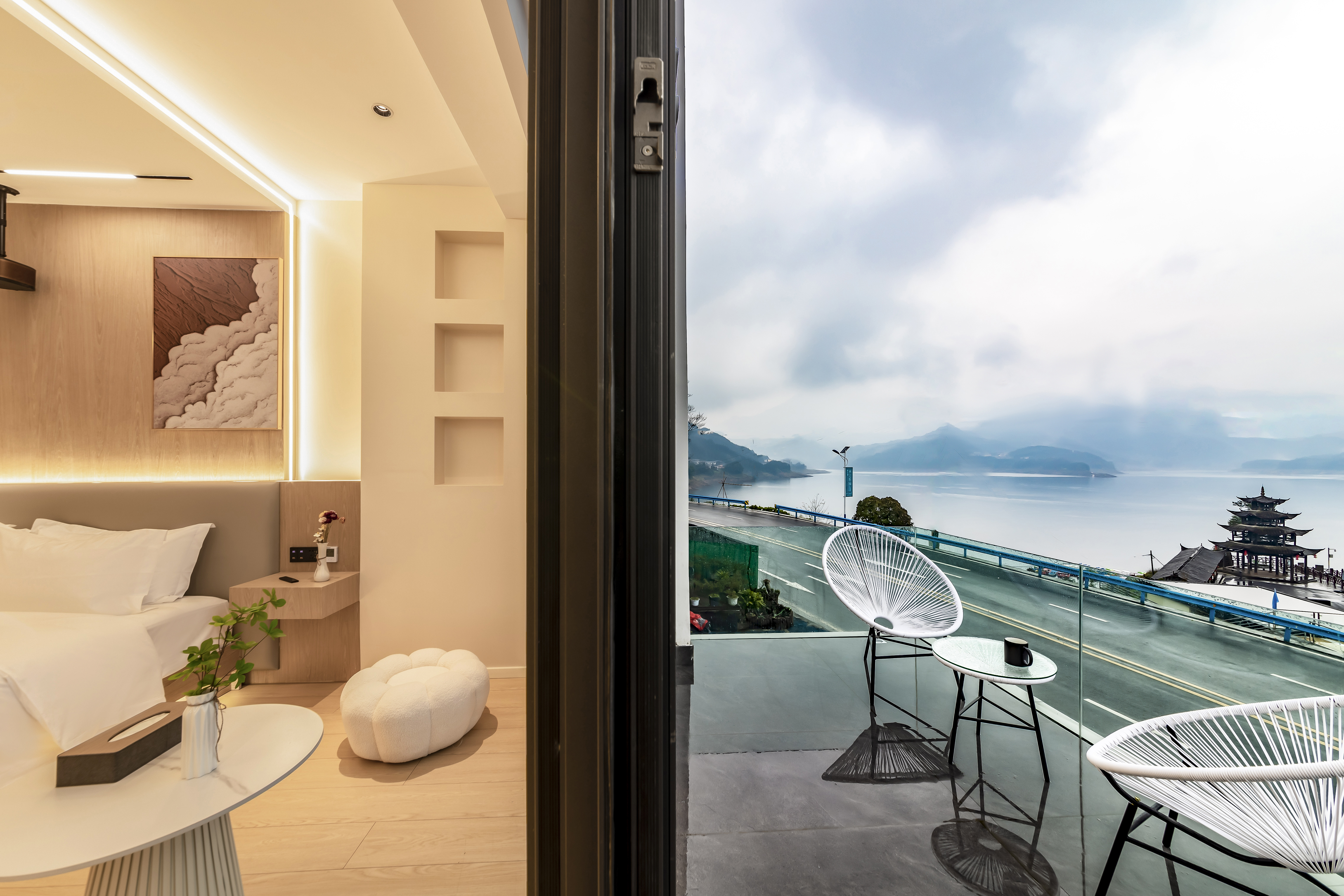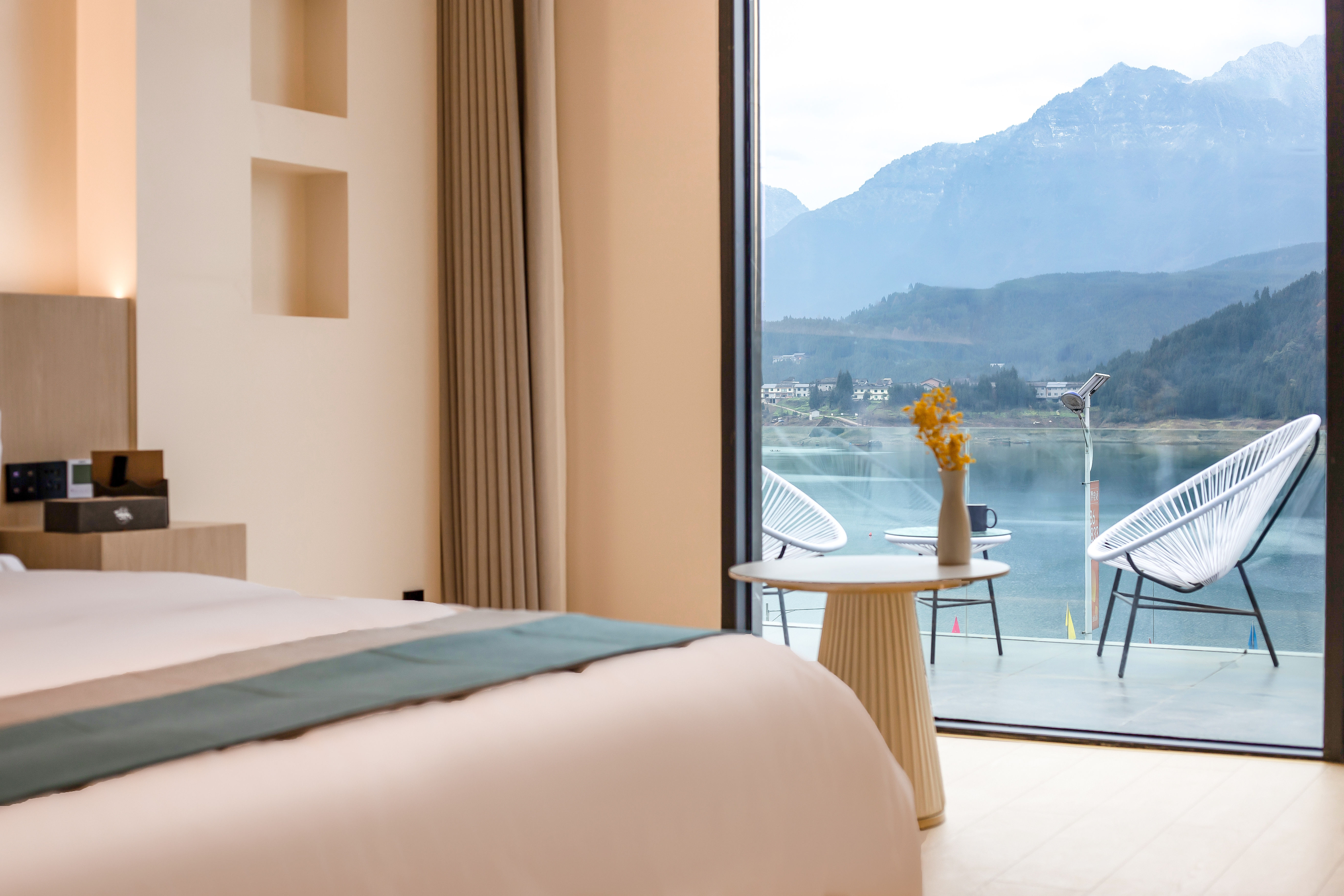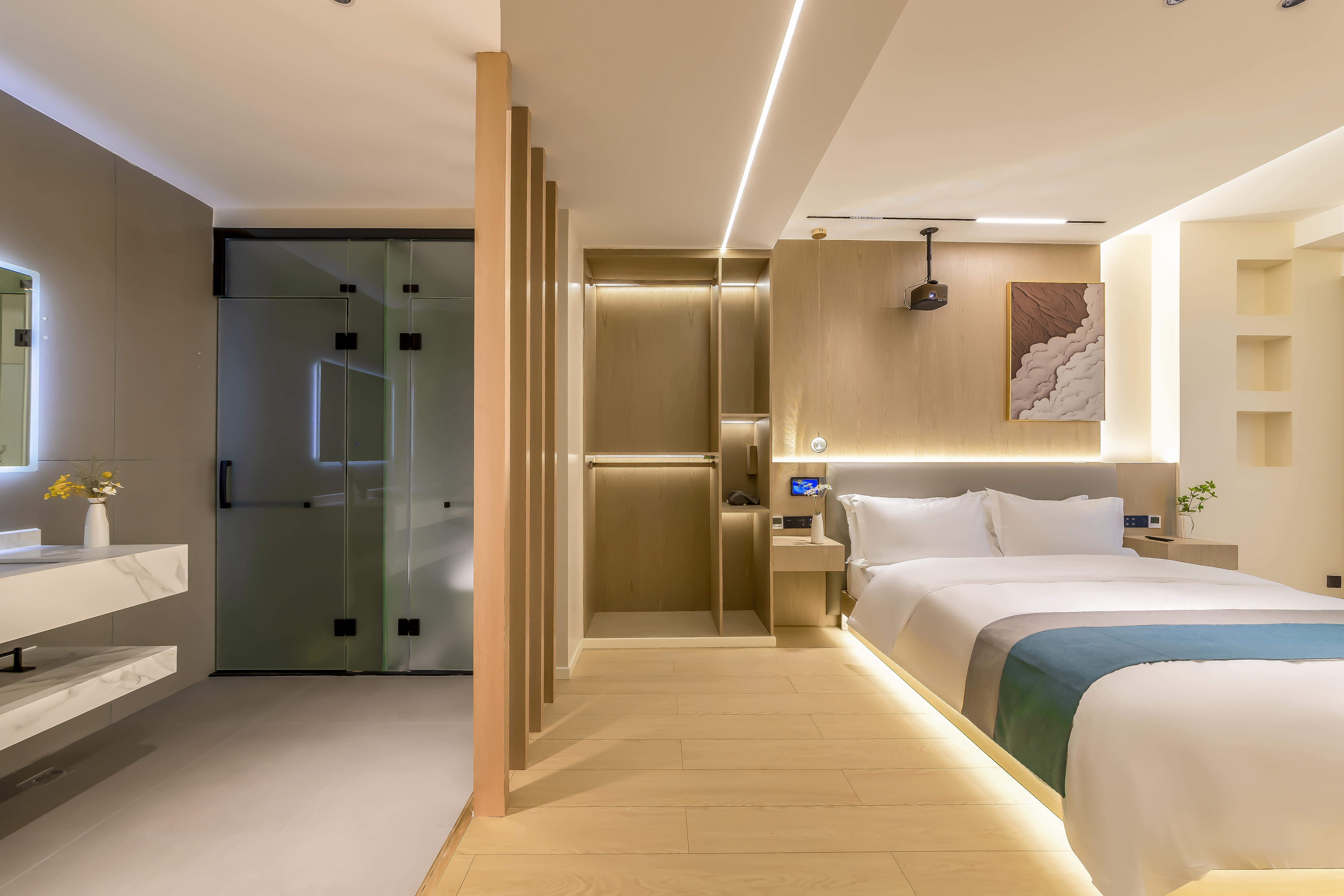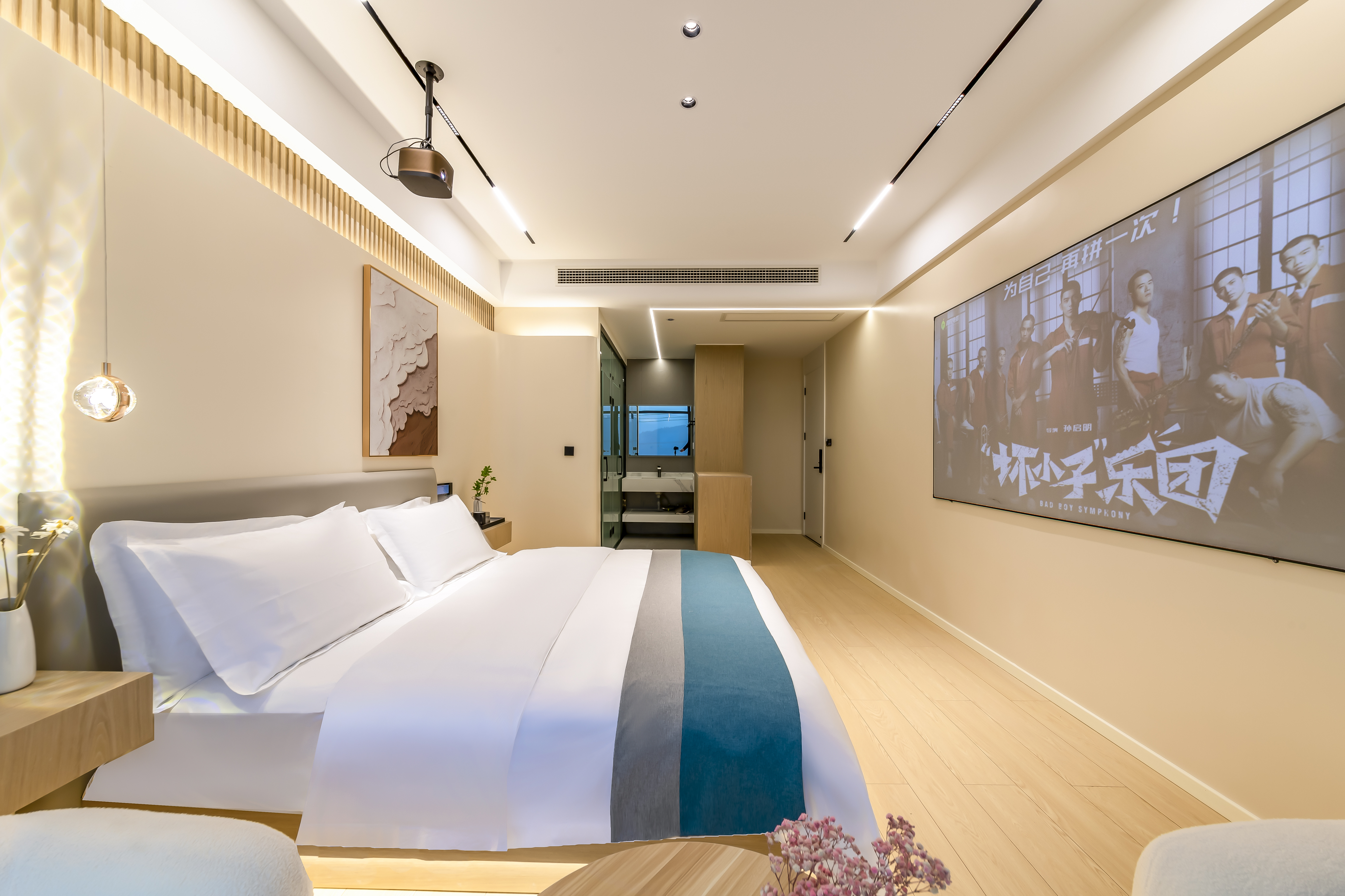 悦里·智能投影湖景大床房(中央空调+水暖+慕思乳胶床垫+语音客控)