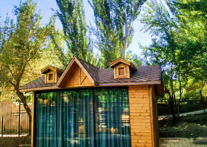 民宿位於吐鲁番葡萄沟景区王洛宾艺术馆园区内,是隐藏在葡萄藤下的秘密花园,房间类型有特色木屋,地球舱。当您踏入这个民宿,映入眼帘的是一片绿意盎然的葡萄藤,它们交织在一起,形成了一个天然的遮阳棚,为您营造了一个阴凉而宁静的休憩之所。葡萄藤下,绿树掩映,庭院深深,流水潺潺。步履间,您能听到葡萄叶沙沙作响,彷佛在为您的到来鼓掌欢迎。每间客房都可能设计得温馨而雅致,内部的装饰和布局也许融合了当地的文化元素,让人在细节中感受到浓郁的地域风情。 在这样的民宿中,时间彷佛变得缓慢,您可以在这里閲读、发呆、与朋友聊天,甚至可以在葡萄藤下举办一个小型的聚会,仰可观星辰,手可摘葡萄,享受自然的包围和生活的宁静。朵雅民宿,不仅仅是一个提供住宿的地方,它更是一种生活方式的选择,一种与自然和谐共处的生活态度。 生活苦,葡萄超甜,在葡萄沟朵雅民宿,做一场葡萄味的美梦~