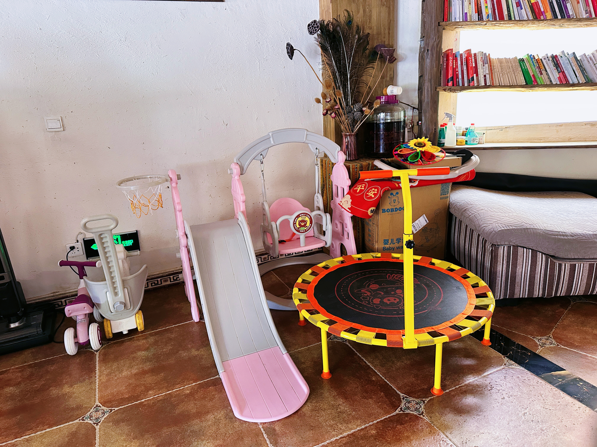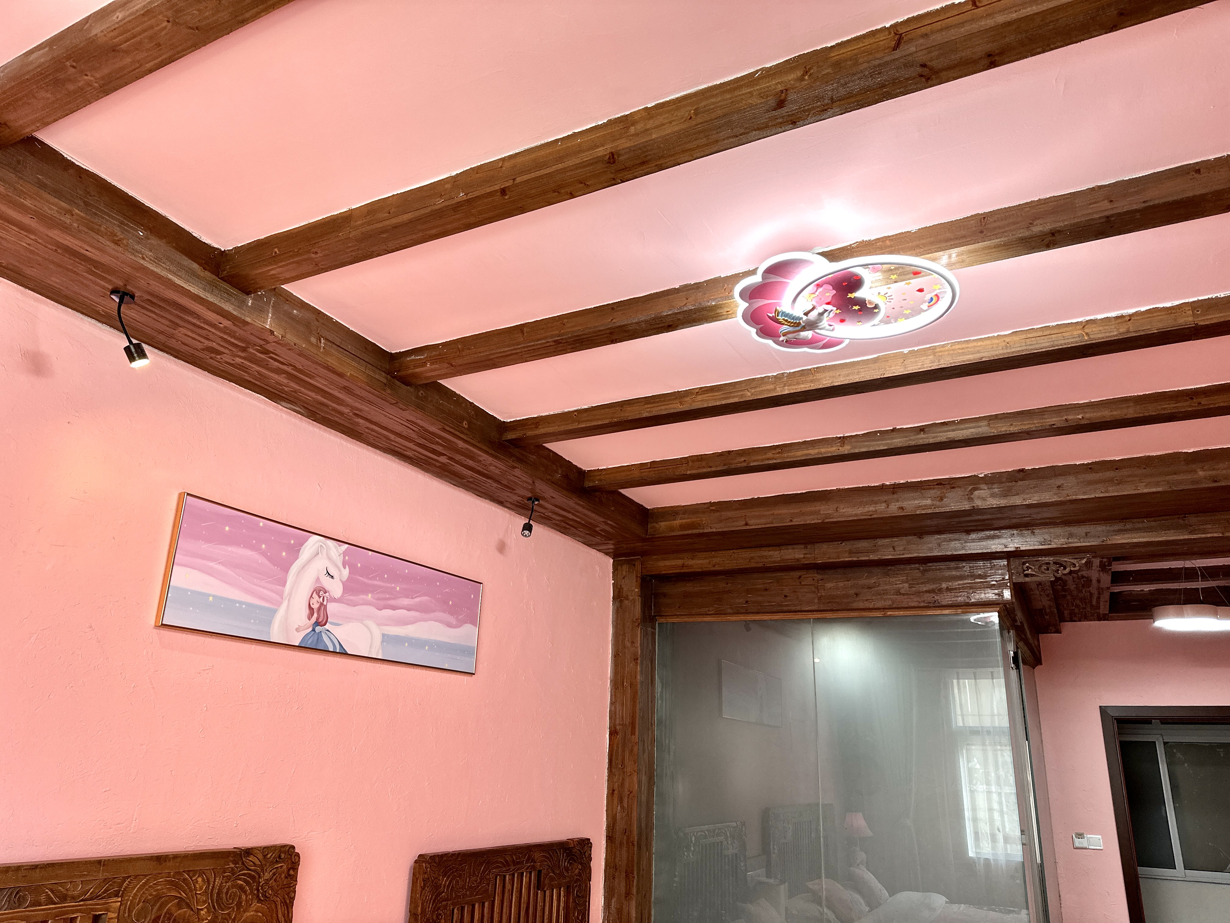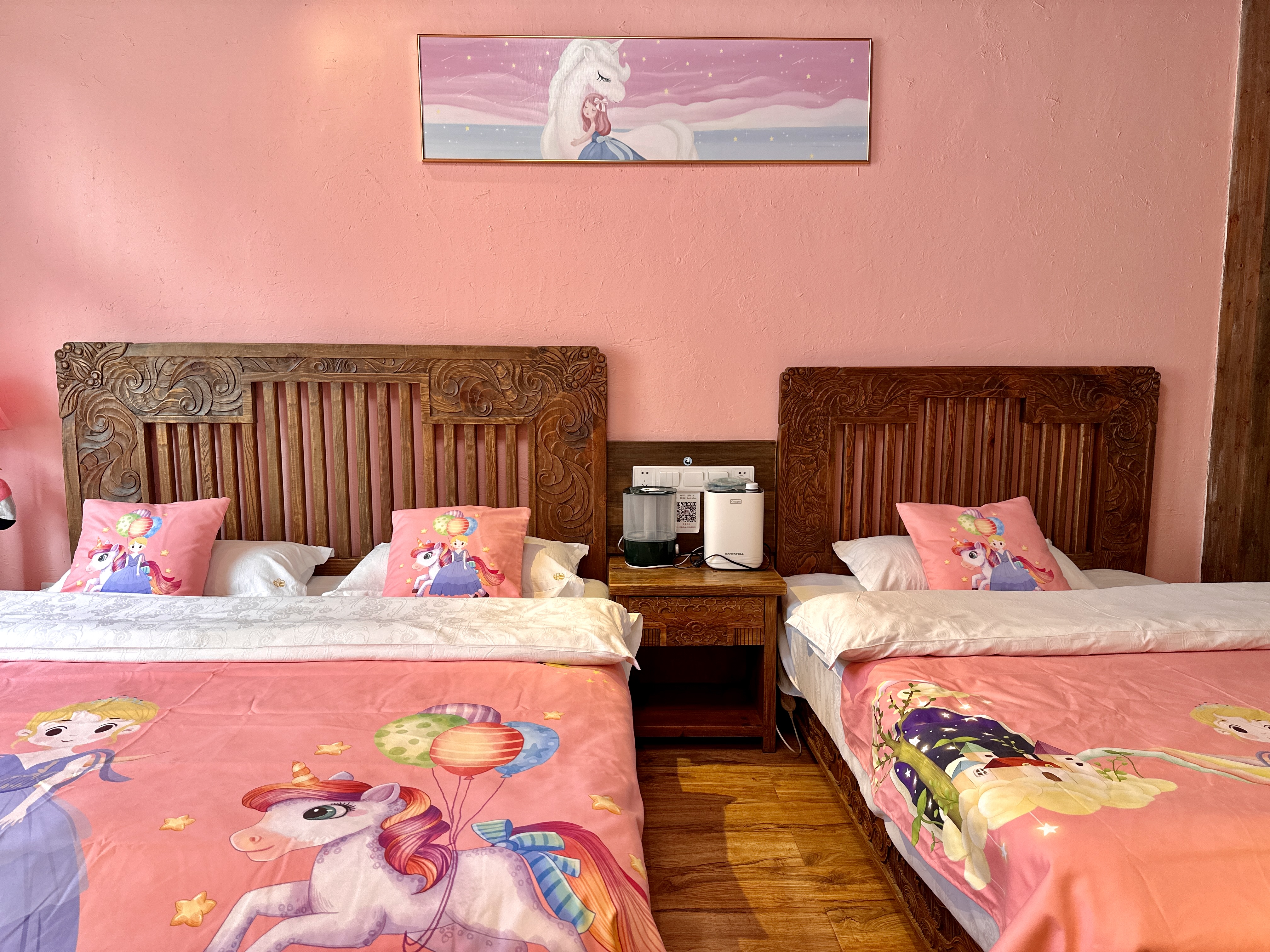 Pink Princess Themed Family Room With Air Conditioning, Oxygen Supply, And Humidifier