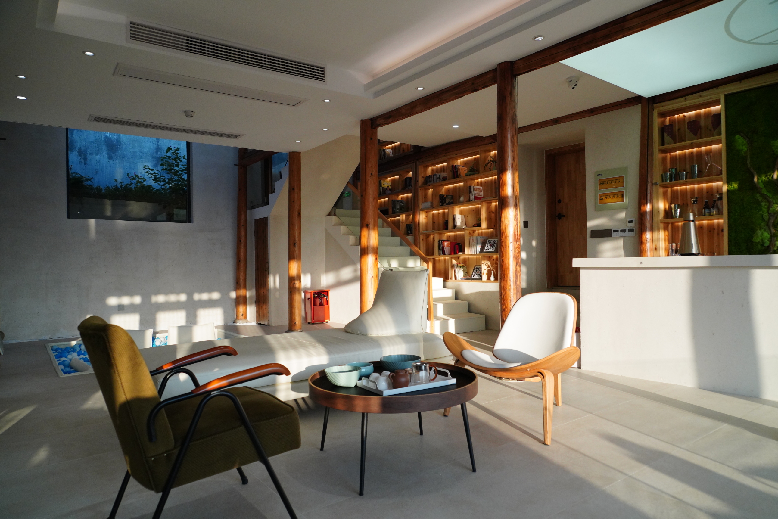这栋整宿有四间房+宽阔的公共空间。民宿水地暖,冬季更舒适。公共空间有适合孩子玩耍的蓝白色海洋球、有适合企事业单位会议的投影仪会议桌、有适合家庭饮茶品酒的大吧枱小茶座、有生活家的独立厨房(每一个餐具都精致可爱,配合菜品水果的每一张照片都秀色可餐)、有洗涤烘乾於一体的新款洗衣机等。总之,她有了家庭应有的一切,足矣成为你“远方的舒适家”。