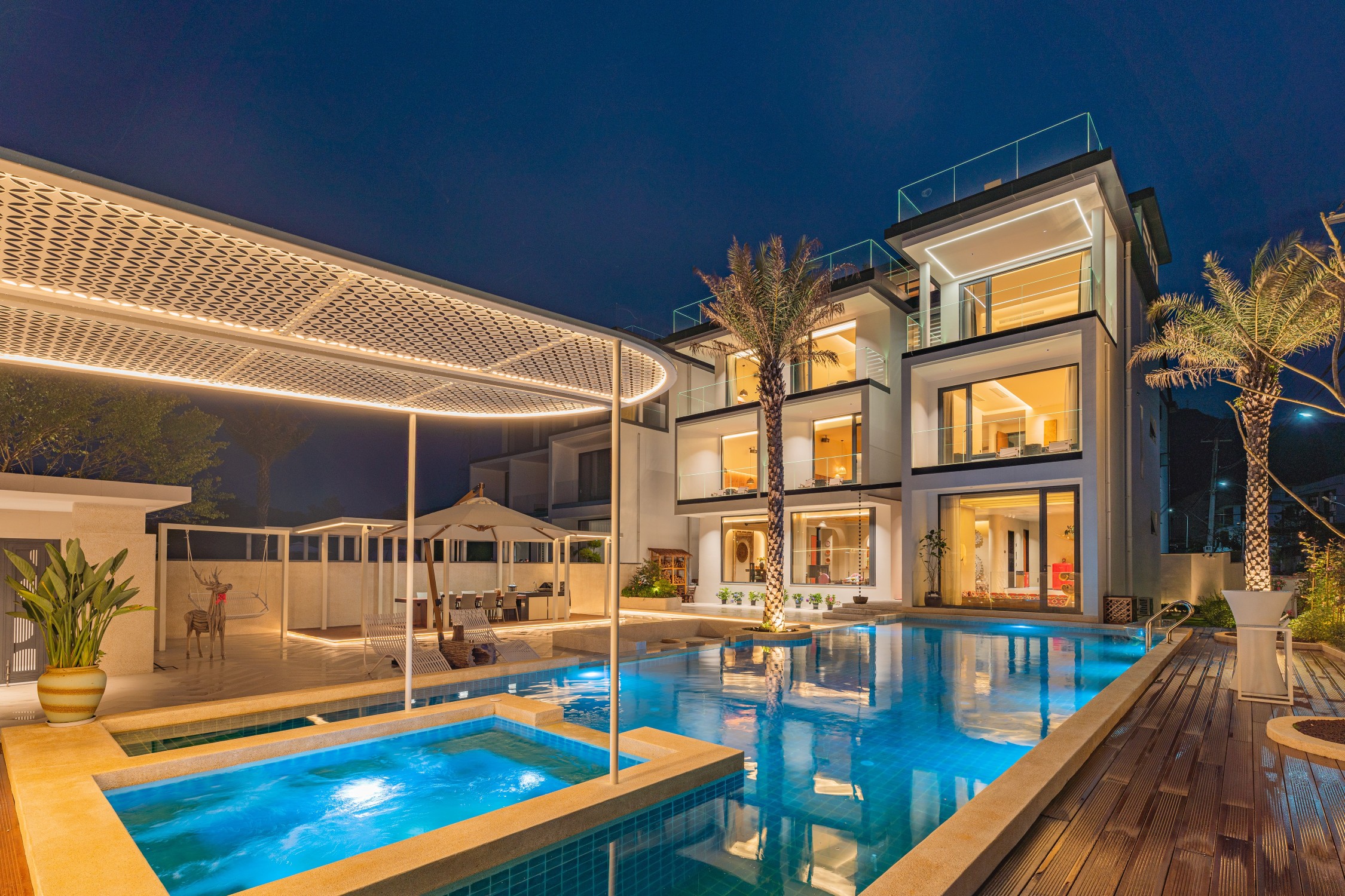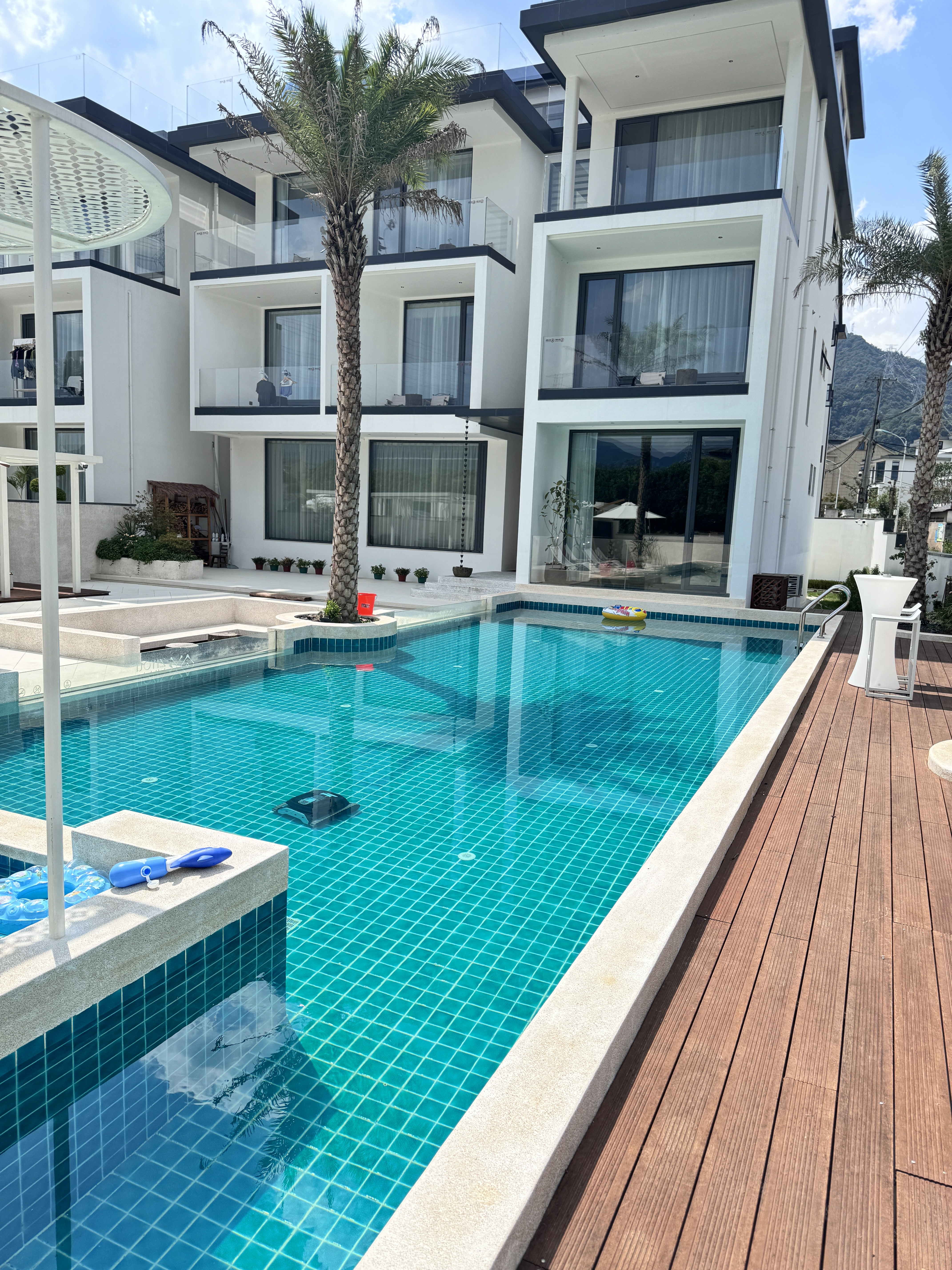 民宿位於风景如画的乡村,环境清幽,同时交通便利,设施完善,服务细致,为宾客提供远离喧嚣的宁静与舒适。设施齐全,建筑外观和内部装饰采用木头等自然材料,以及具有东南亚特色的雕刻和绘画。酒店房间宽敞明亮,配有舒适的床铺和完善的设施,让您体验到家的温馨。此外,酒店还提供免费无线网络连接、泳池、桌球、棋牌室、多功能厅,满足您的商务和娱乐需求。