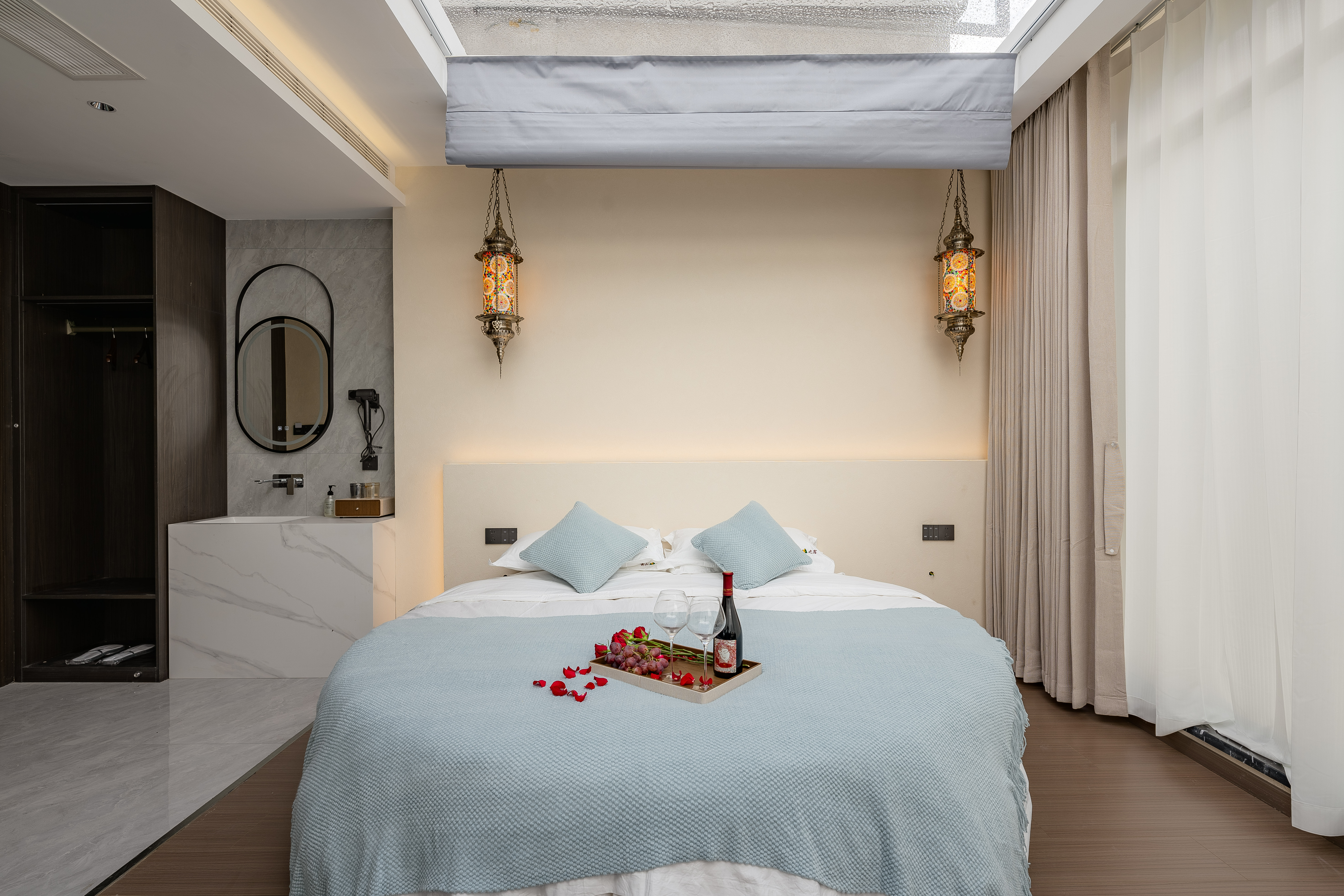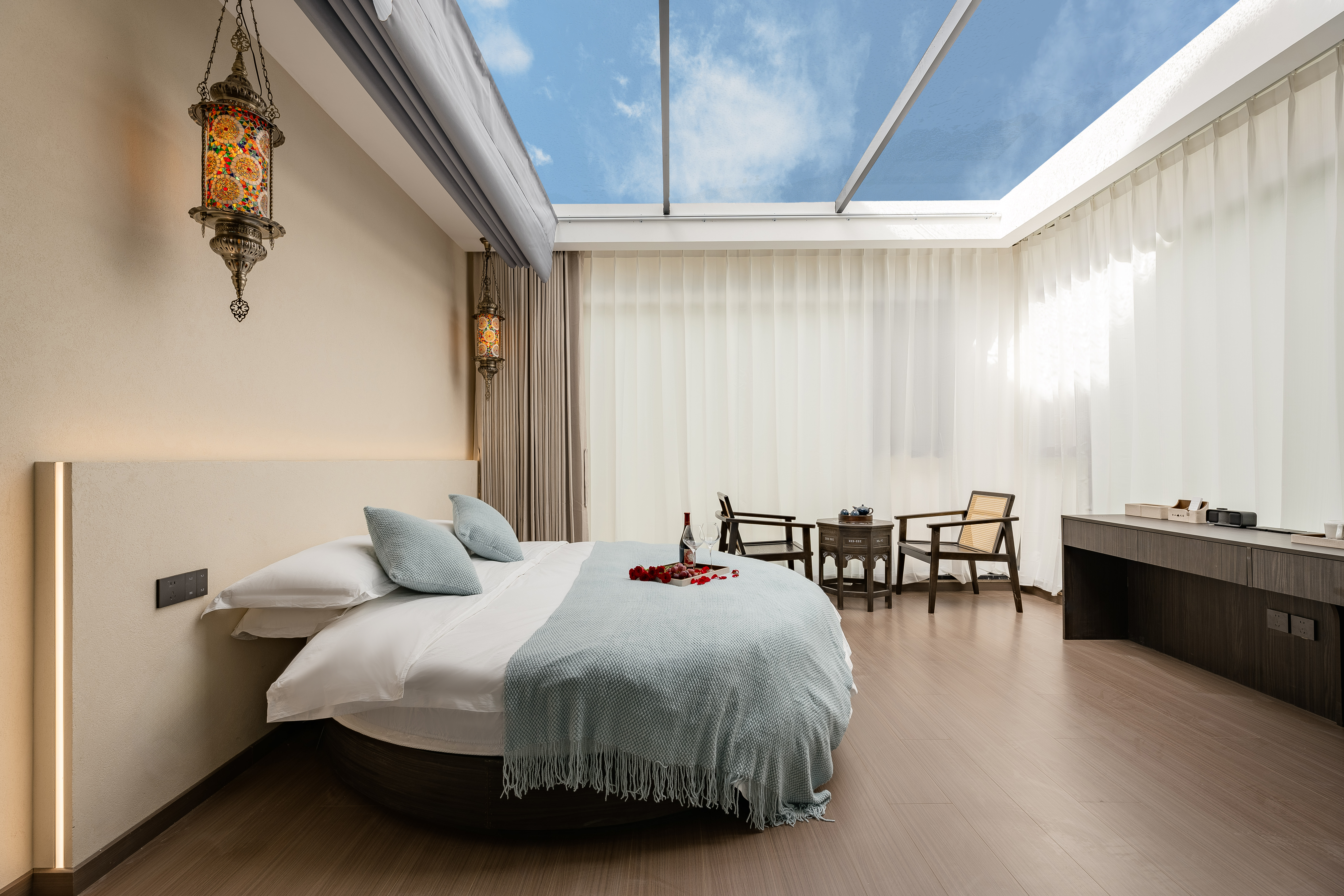 醉紅顏·觀景豪華星空房(白鵝絨被+智能客控+乳膠床墊+乳膠枕頭)