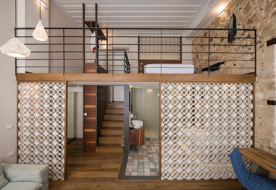 舒适复式套房,1张特大床和梳化床,按摩浴缸