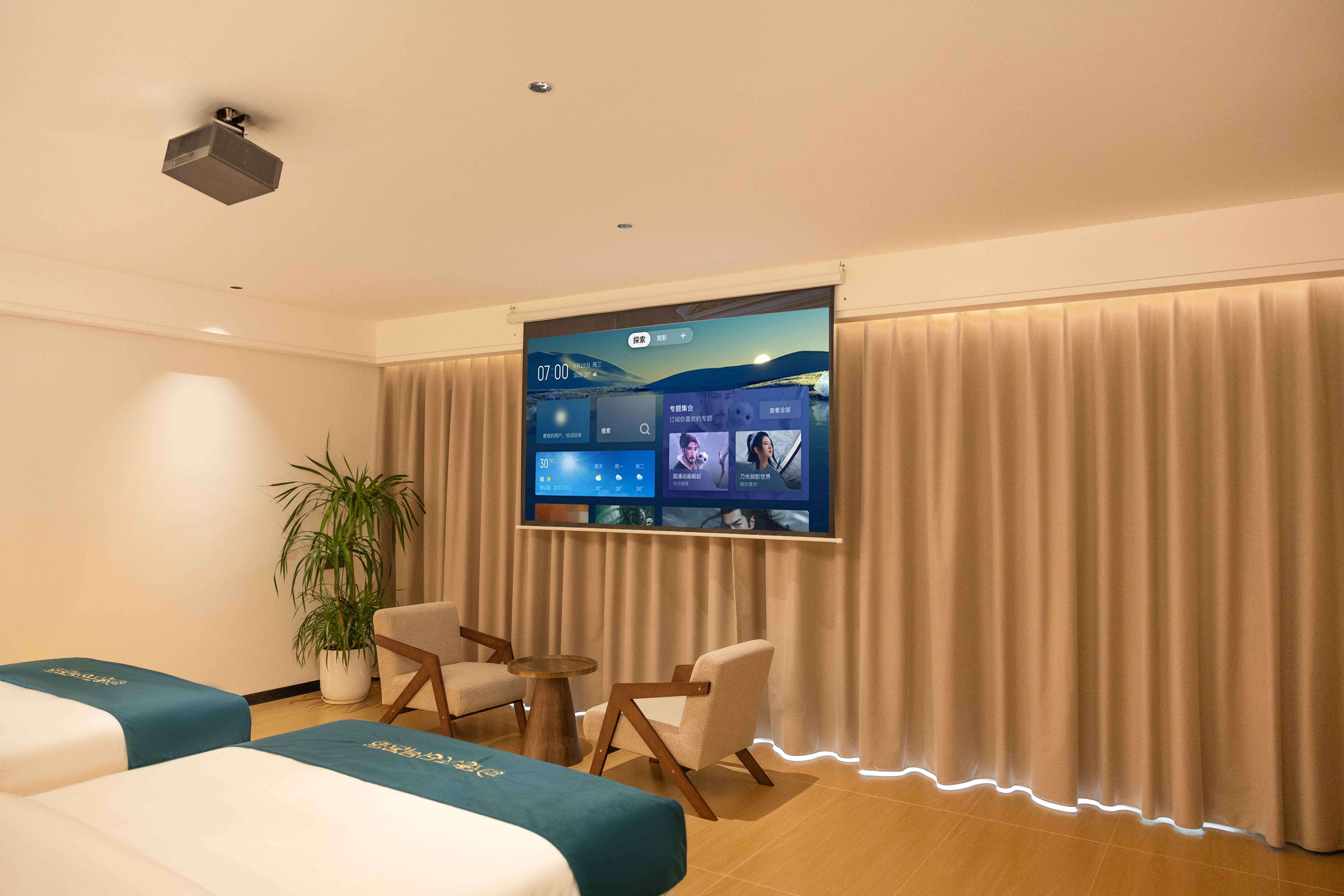 梦澜智能影音家庭双床房[高清影屏+全屋智能+超大浴缸]
