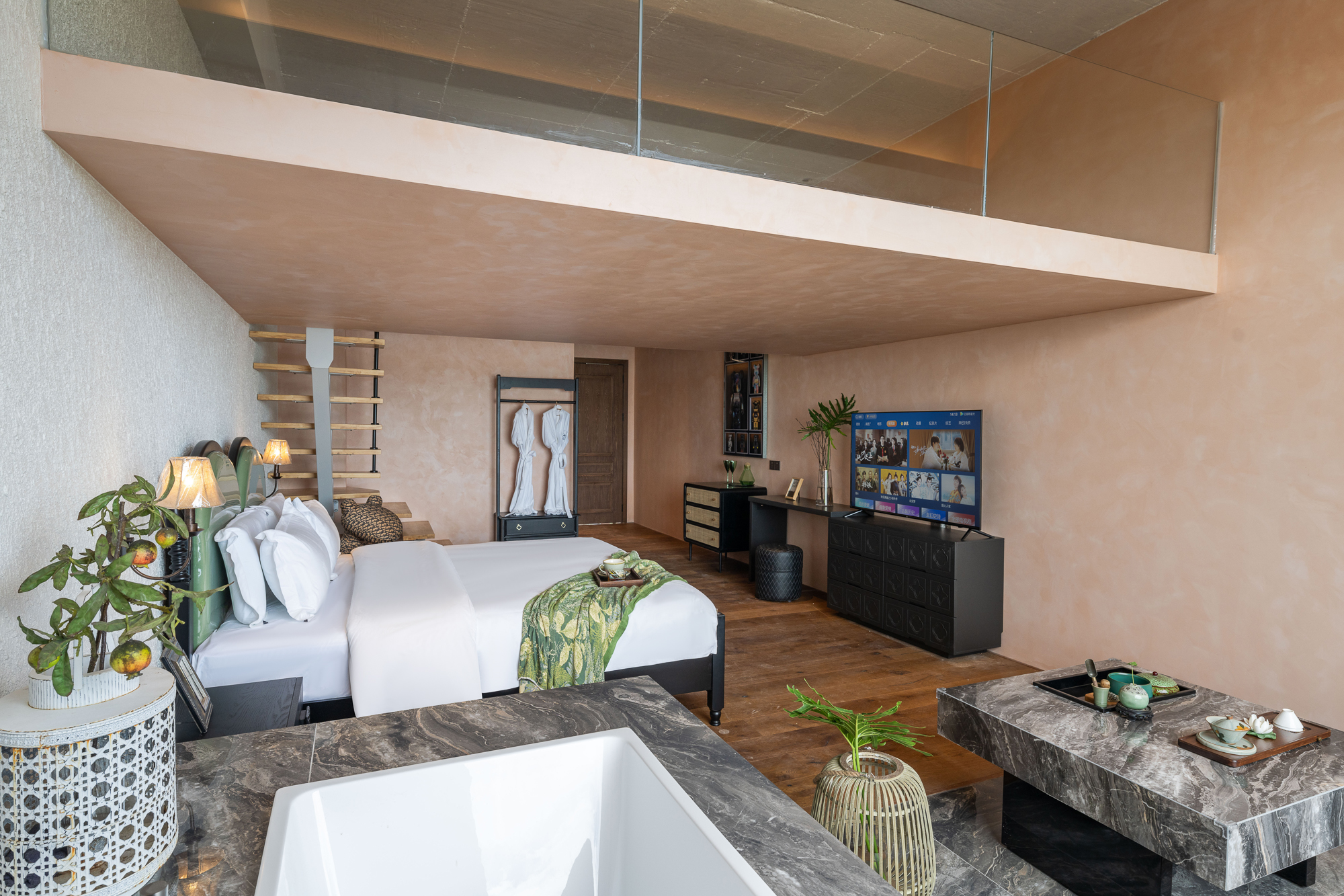 夕岚|日落海景复式浴缸双大床房[沙发+落地窗+冰箱]