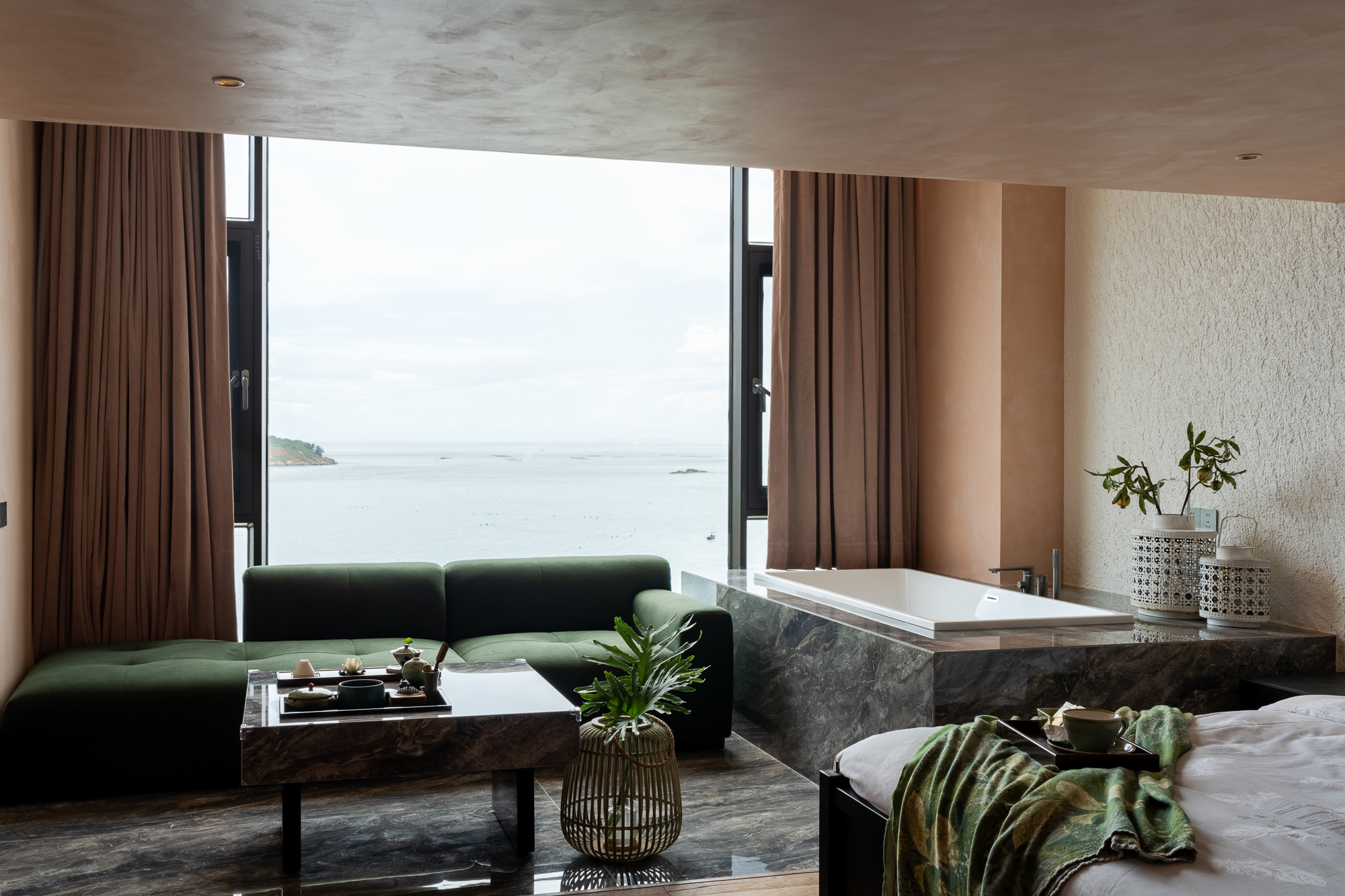 夕岚|日落海景复式浴缸双大床房[沙发+落地窗+冰箱]