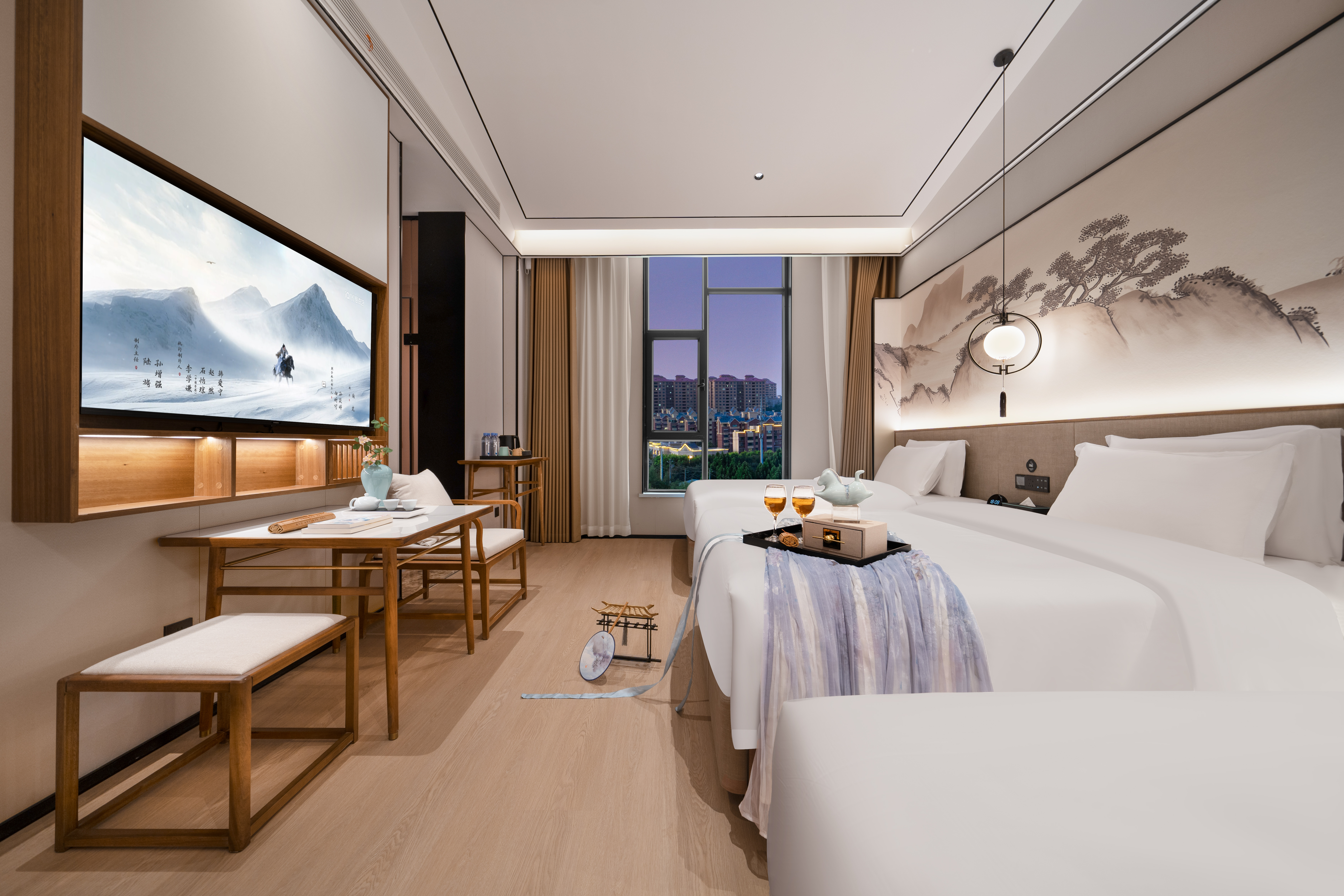 雅致·兰时影音双床房丨270°双落地窗+100寸升降巨幕