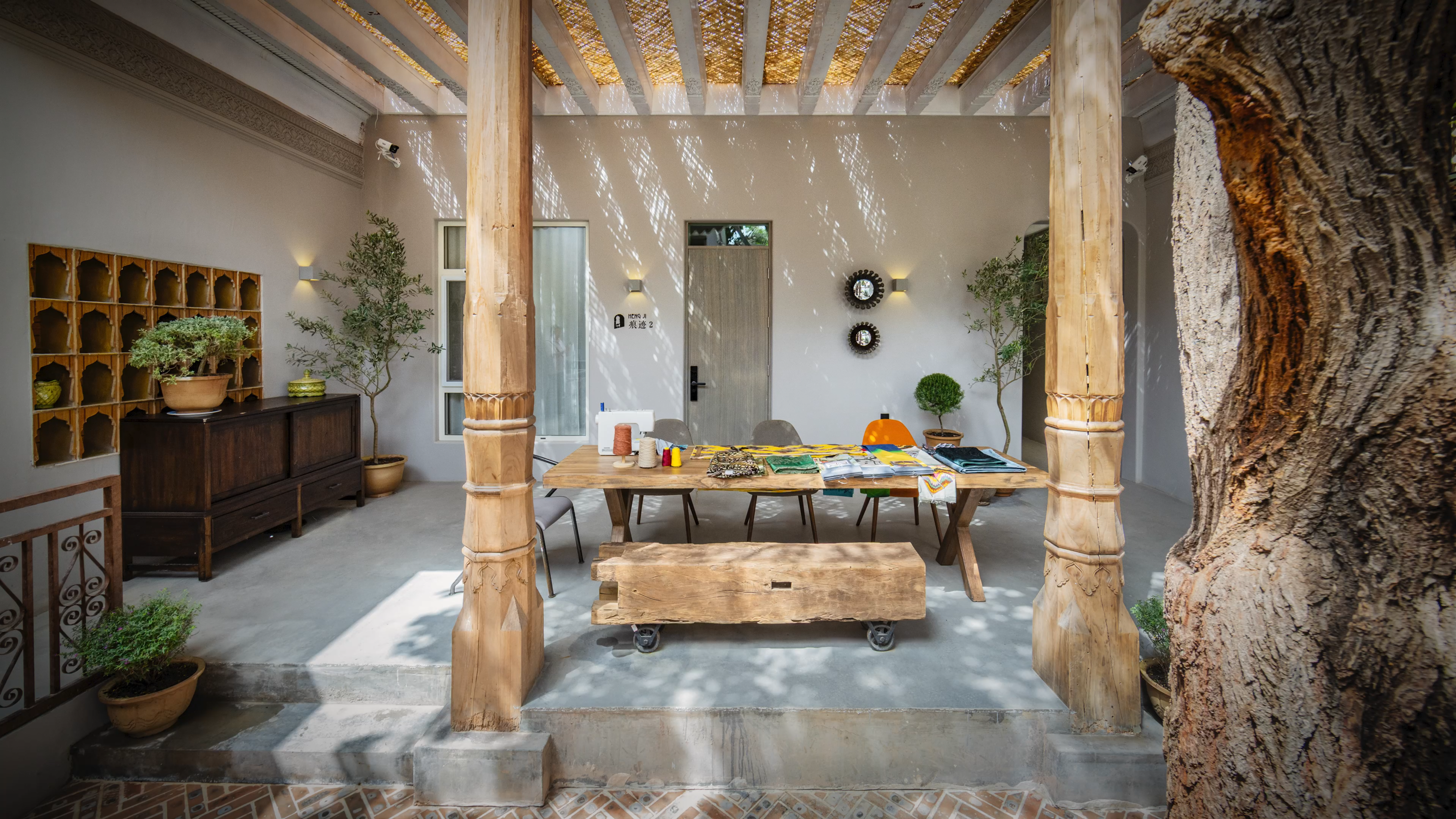 壹号庭院|痕迹「豪华大床复古浴缸套房」古壁龛木雕花柱