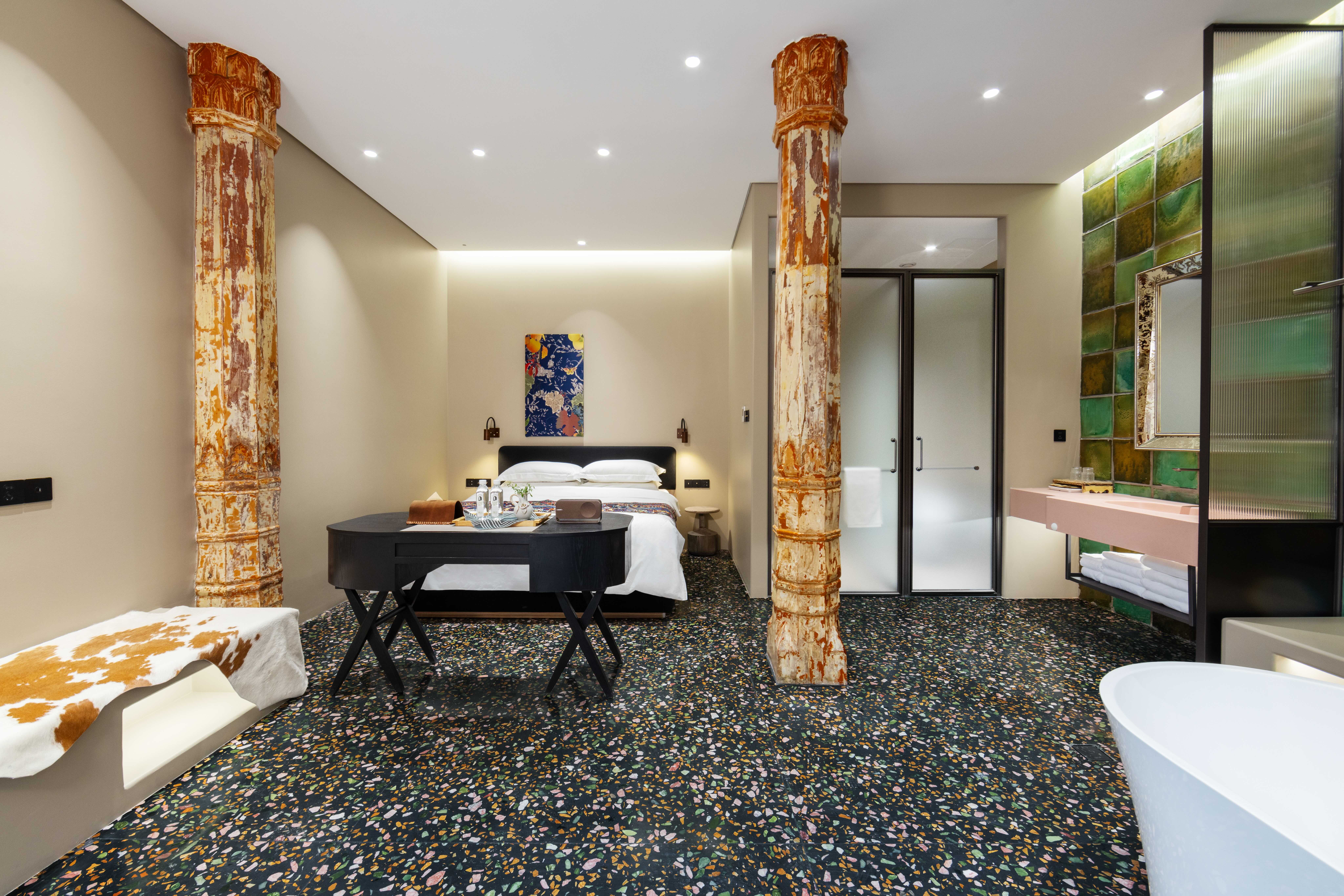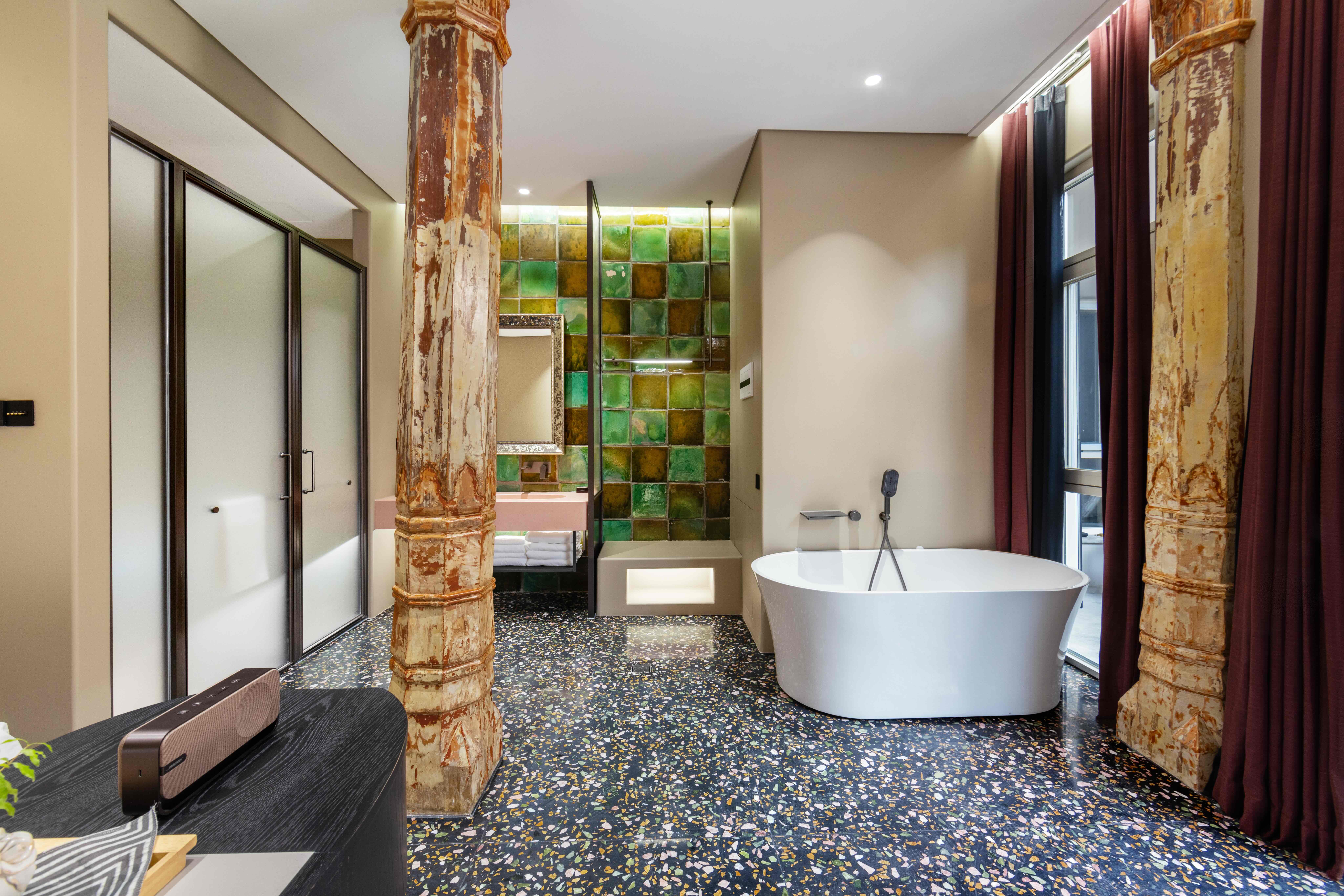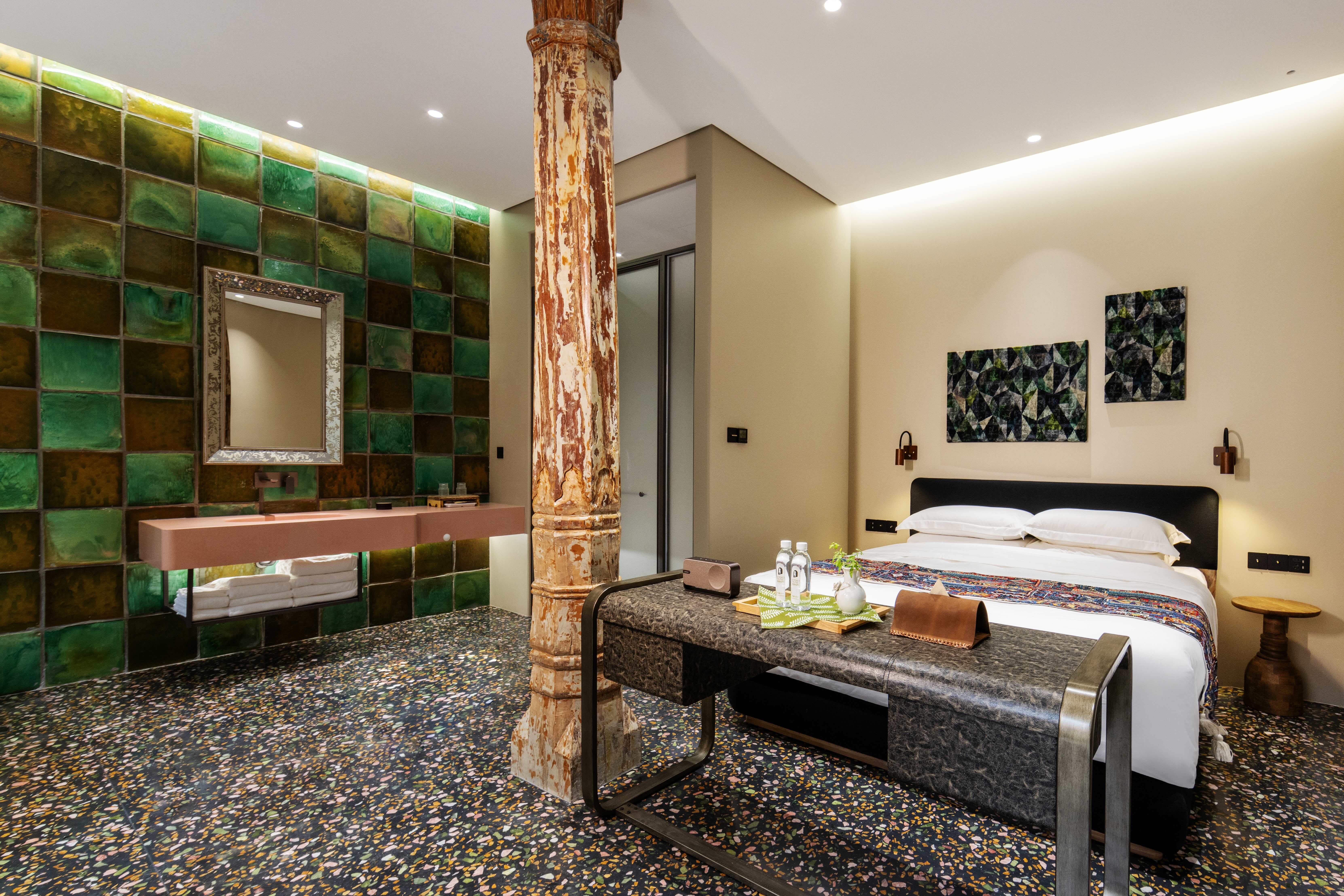 叁号庭院|吾花「花柱浴缸大床房」匠心砖雕露台