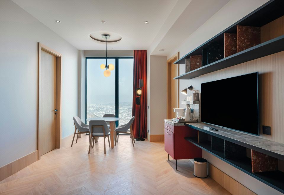 家庭套房,卧室1:1特大床,卧室2:1大床,天际景观,阳台