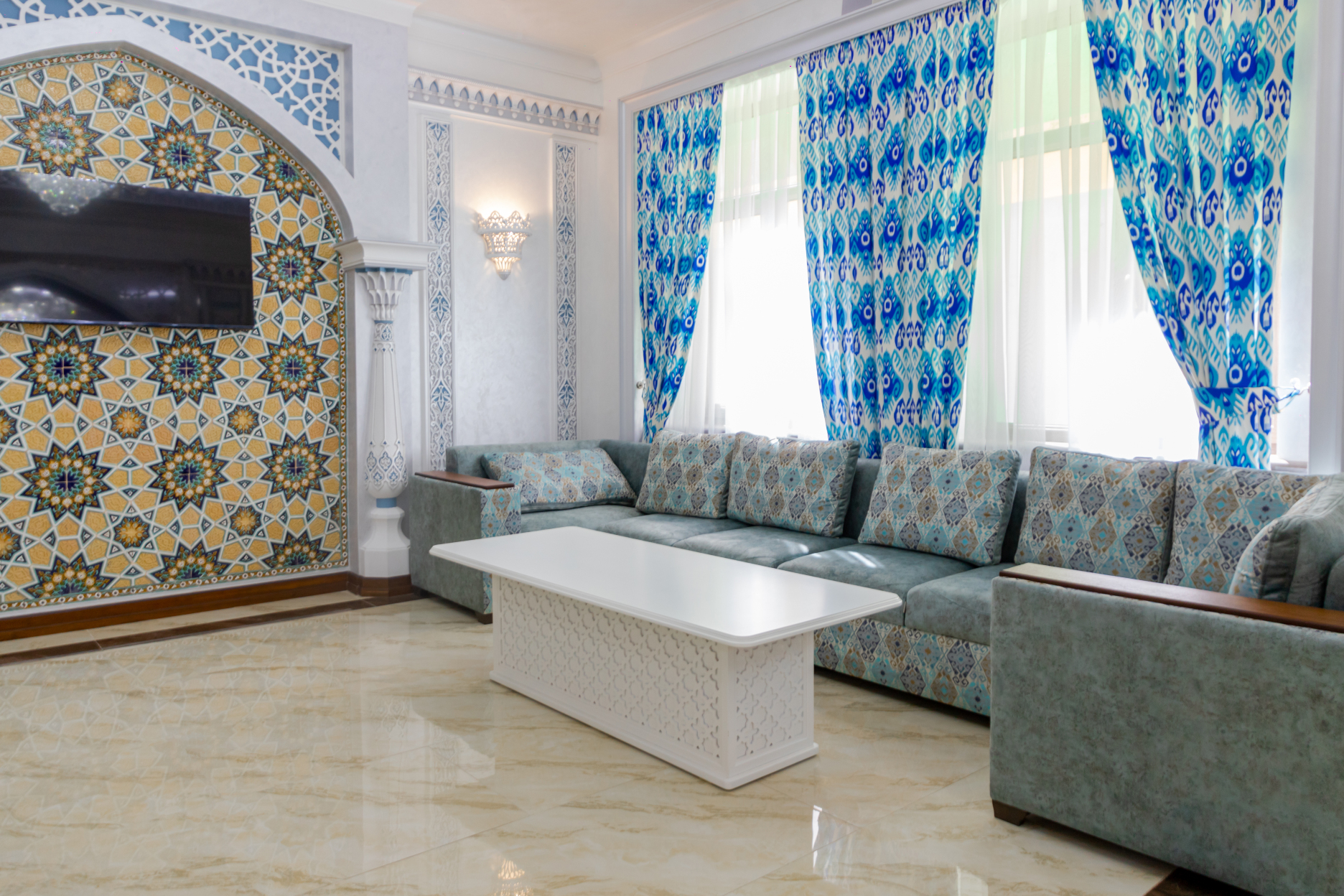卡尔冯广场酒店位於萨玛尔汉,距离Bibi-Khonym 清真寺和提拉高利经书院不到 5 分钟车程。 此SPA酒店距离Registan 广场 1.4 英里(2.2 公里),距离谢尔多尔·马德拉萨 1.4 英里(2.3 公里)。您可到 SPA 慰劳一下自己,这里提供按摩。您可以到餐厅享用一顿美餐;也可去酒店的咖啡馆吃些点心。您可以到酒吧/酒廊,点一杯喜欢的饮品,畅饮一番。每日 07:00 至 10:00 提供免费的自助早餐。特色服务/设施包括乾洗/洗衣服务、24 小时前台服务和行李寄存。酒店提供免费自助停车。酒店的 54 间客房定能让您在旅途中找到家的舒适。客房设有私人阳台。提供免费无线网络,方便您与朋友保持联系。配备浴缸或淋浴的私人浴室提供吹风机和拖鞋。