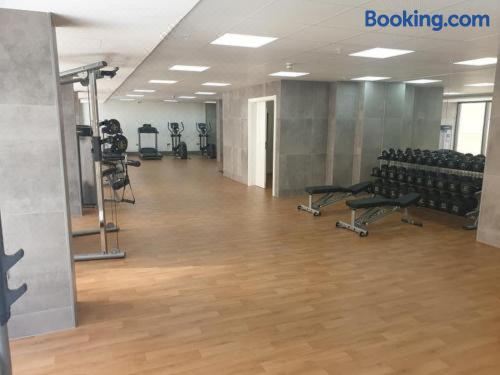 这家空调公寓配有1间独立卧室、1间带免费洗浴用品和吹风机的浴室以及休息区。这家公寓配备露台,也配有平板电视、厨房以及1间带浴缸或淋浴设施的浴室。