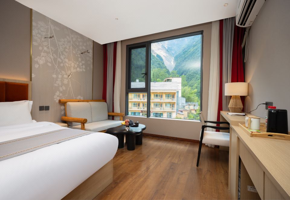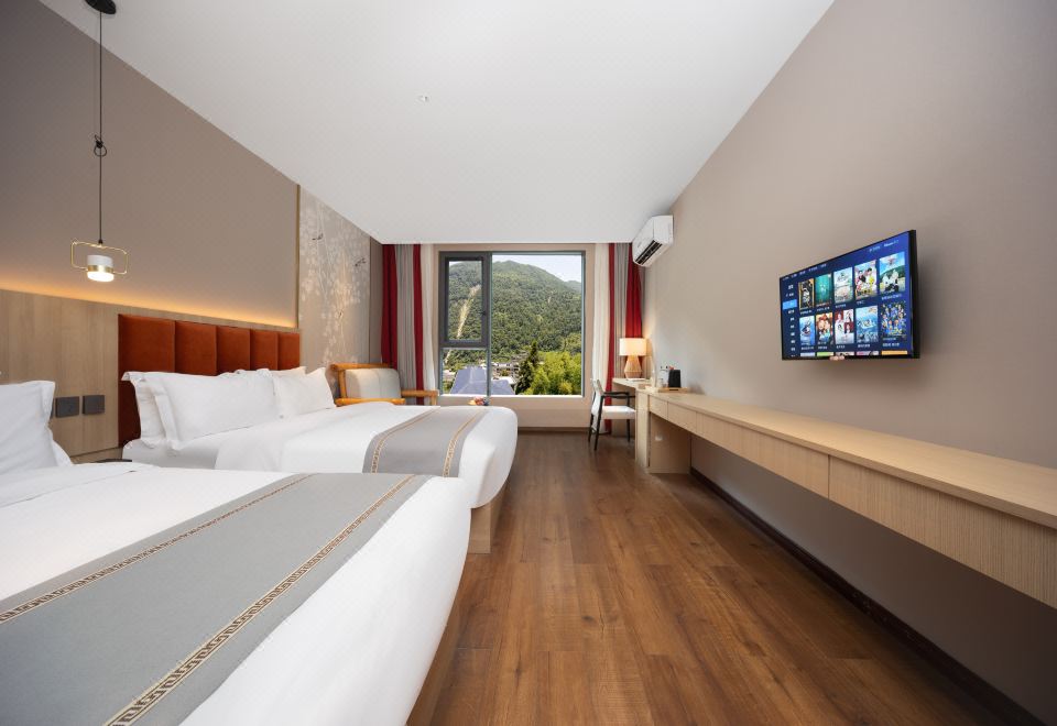 山河遠|中式觀山雙床房+一戶一湯硫磺溫泉池+全屋暖氣